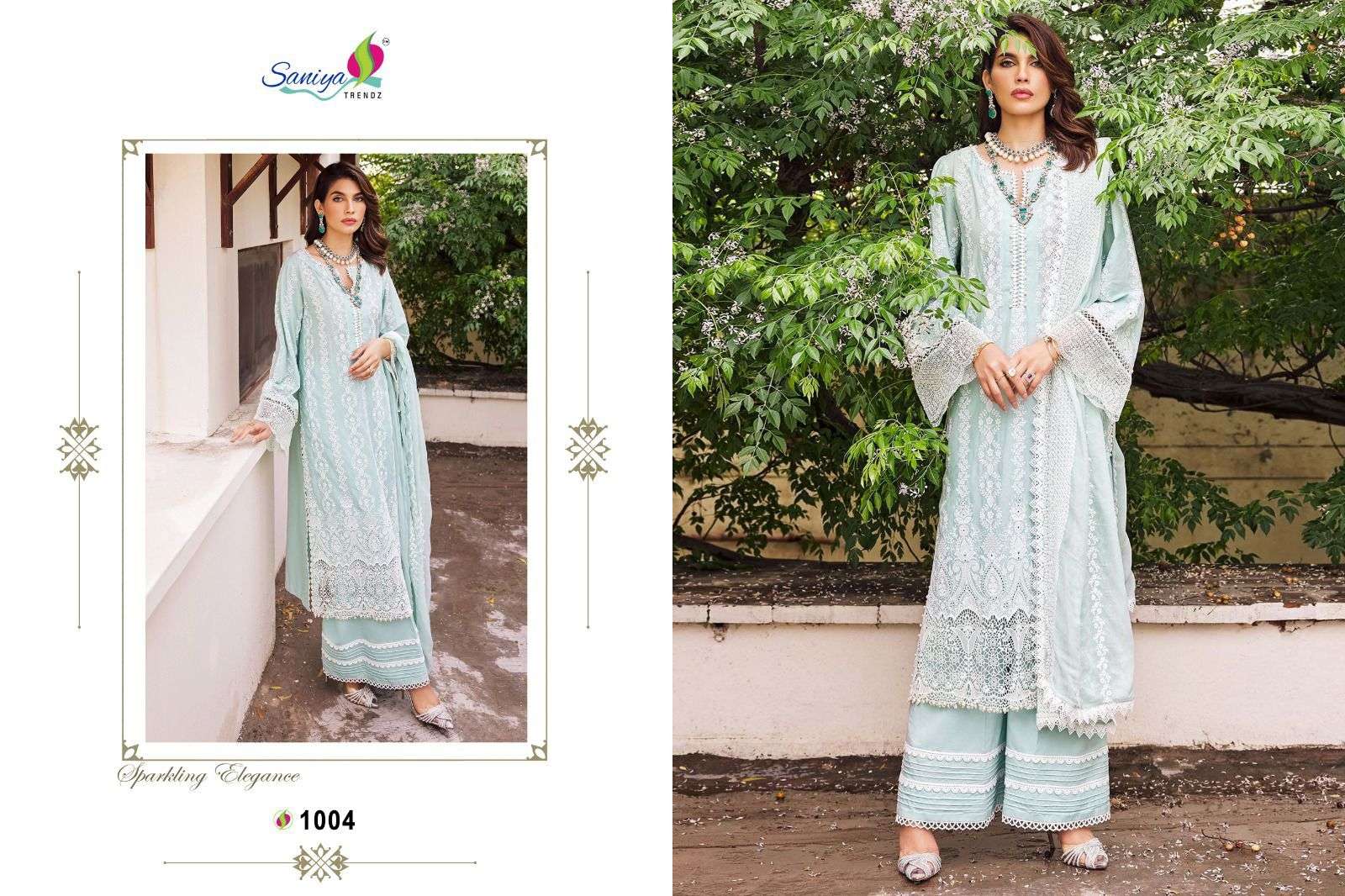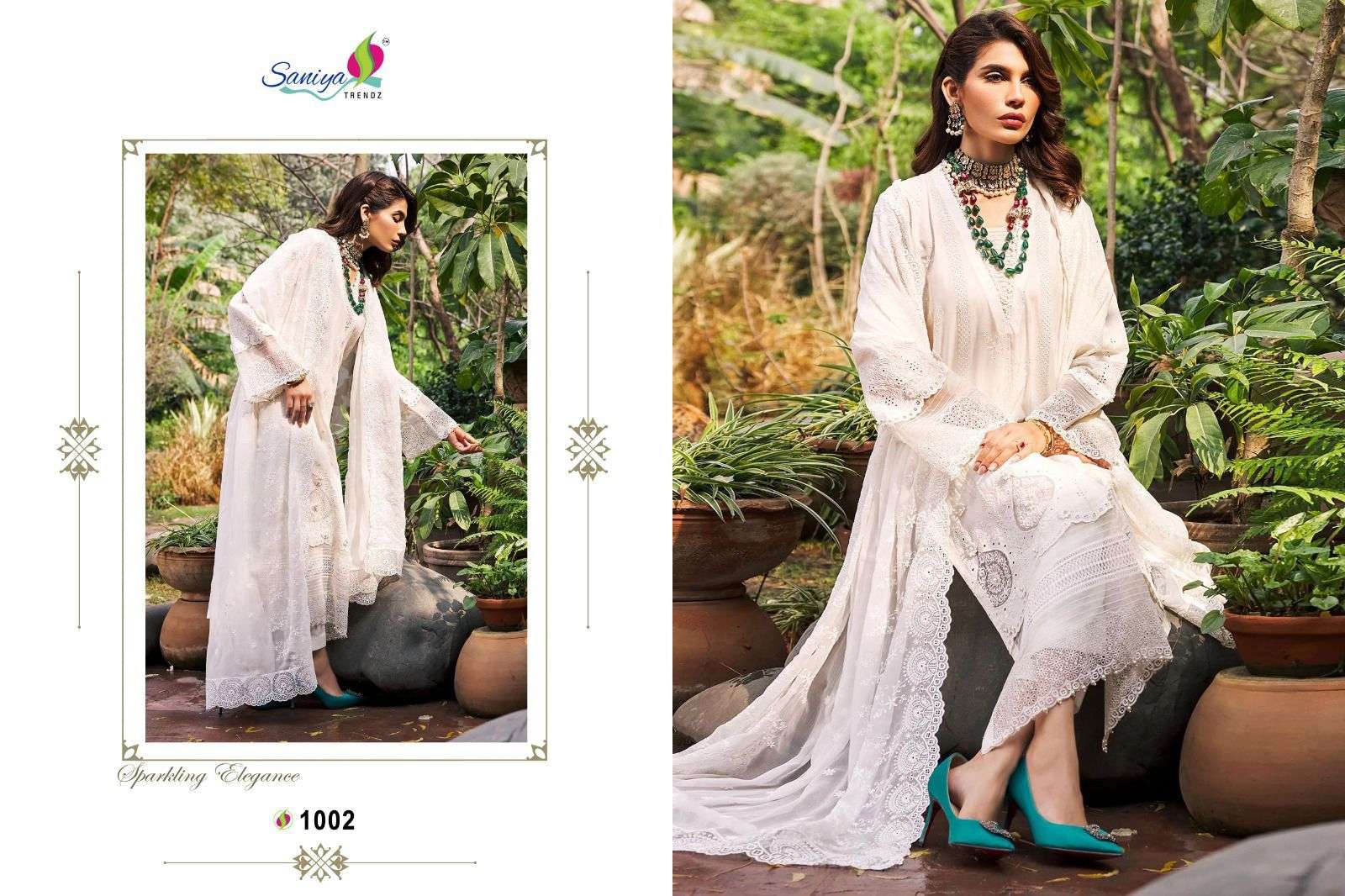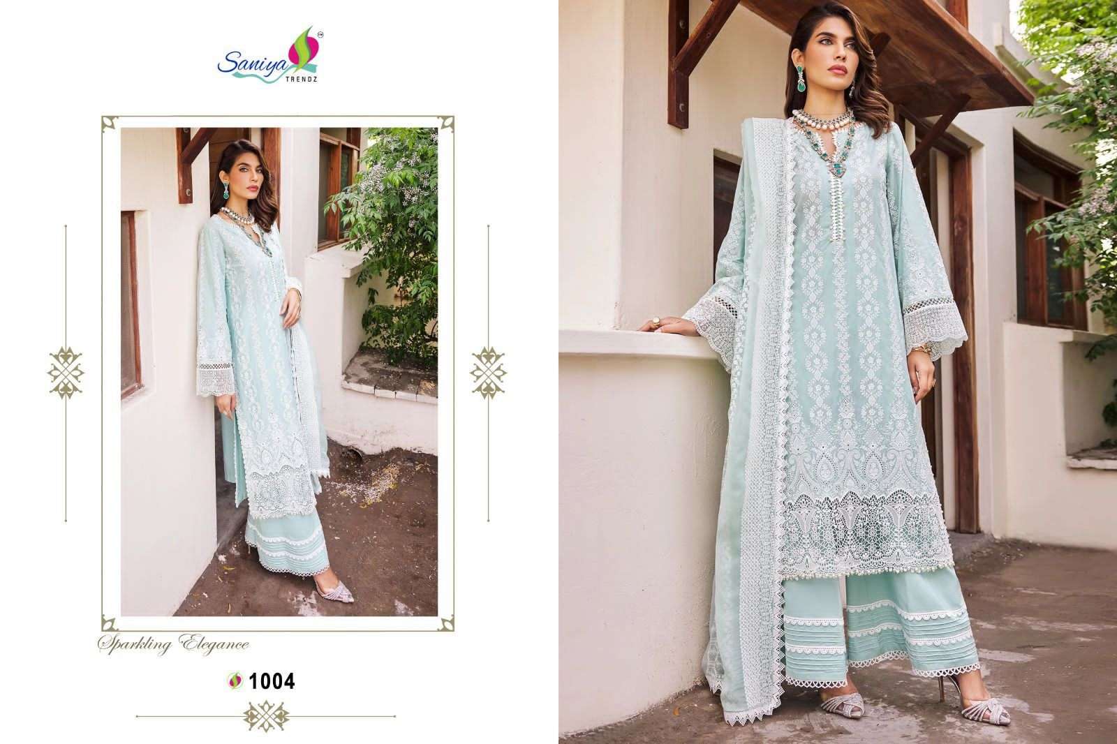 BRAND NAME:-SANIYA TRENDZ D NO:- 1001-1004 Top:- CAMBRIC COTTON WITH EMBROIDERED RATE:-1099/- |