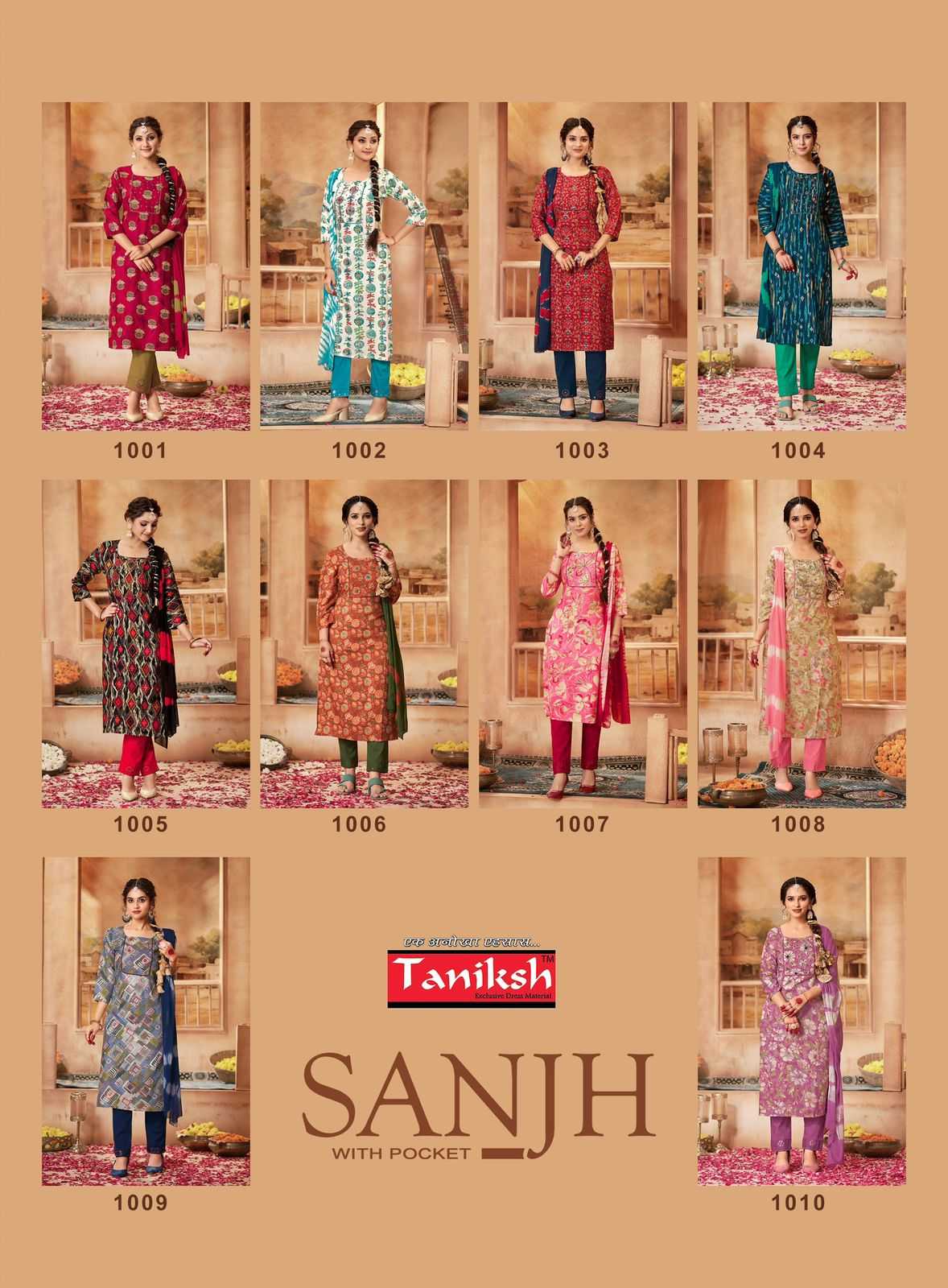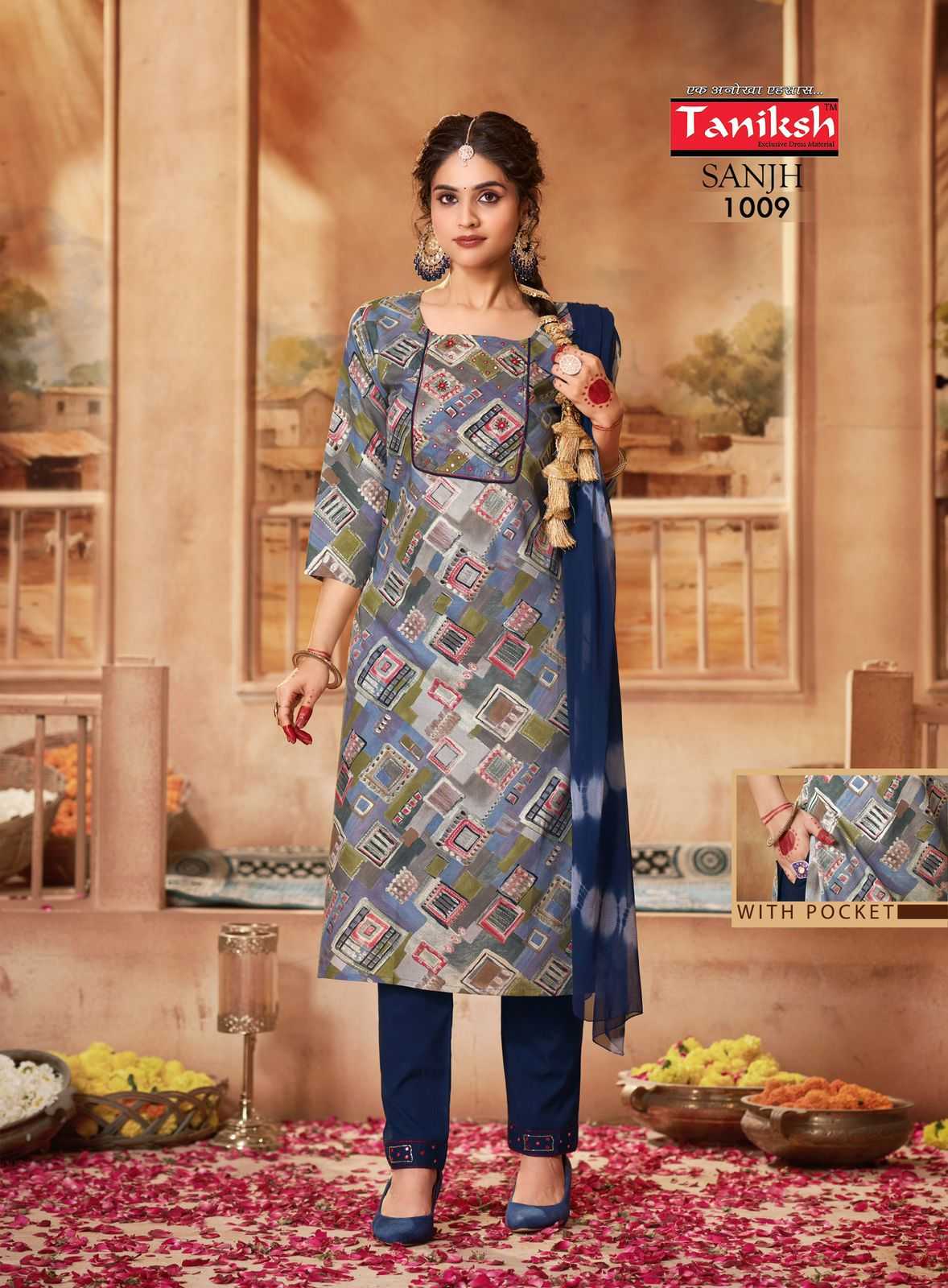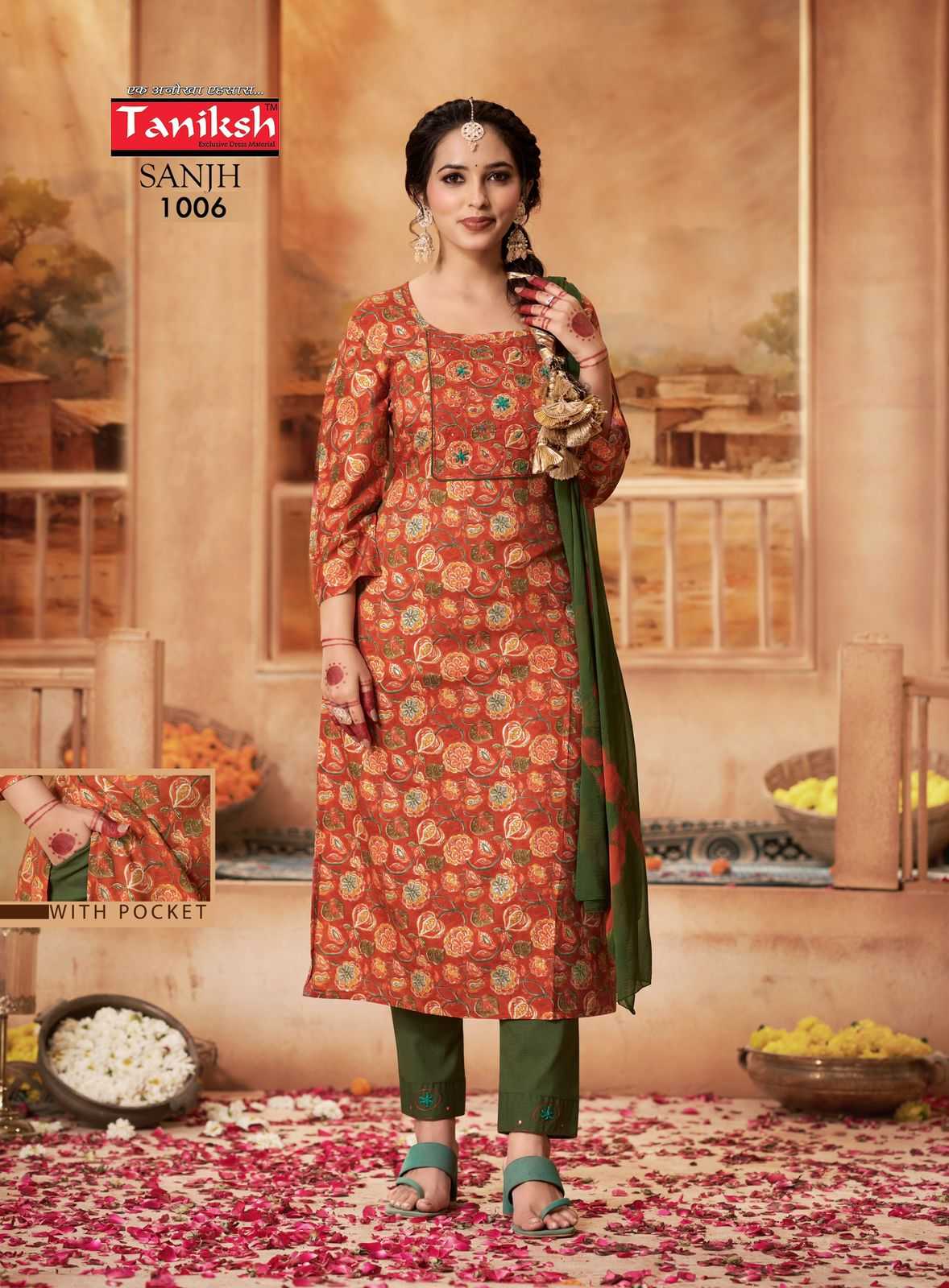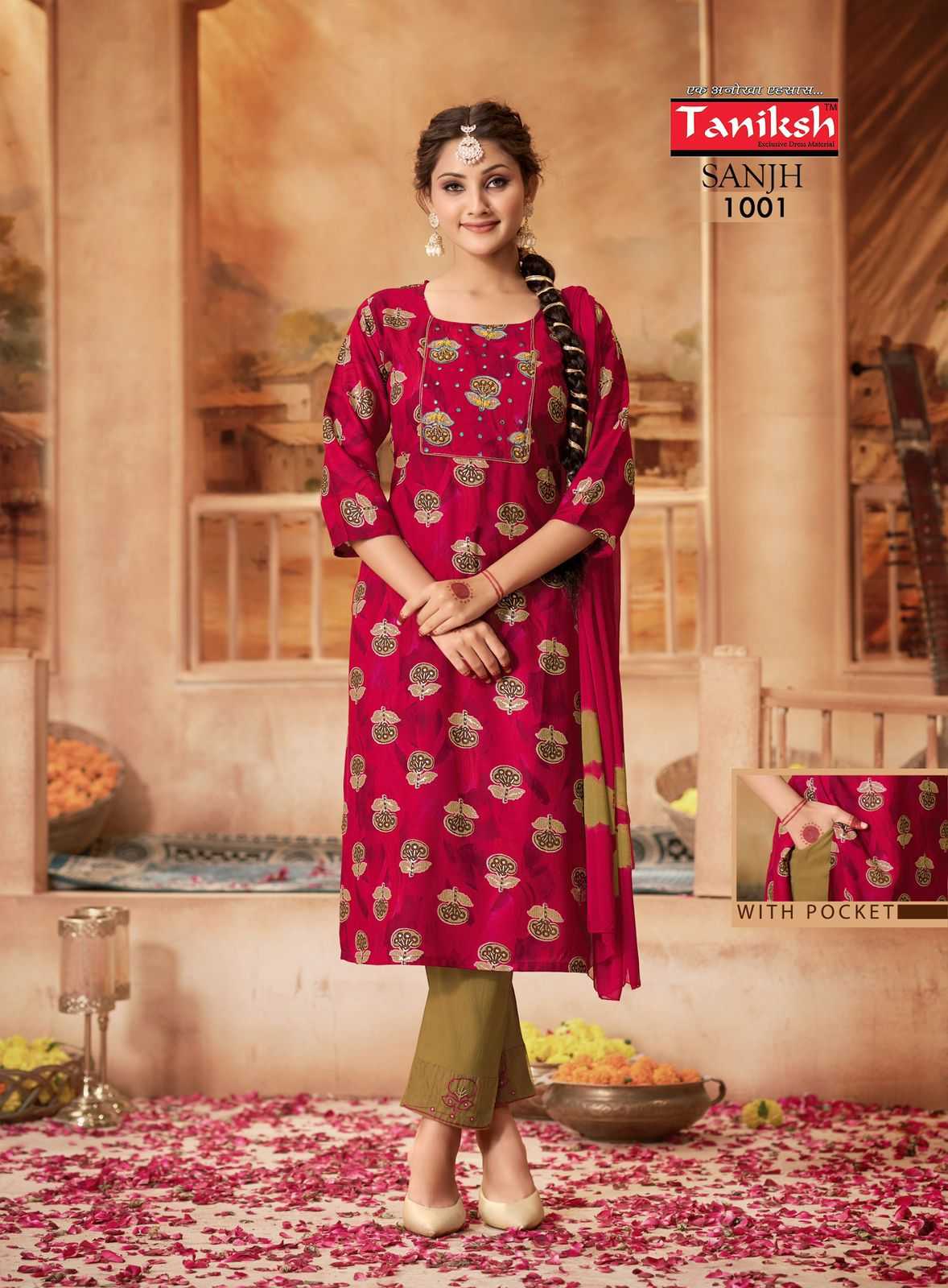 sanjh vol 1 by taniksh readymade fancy rayon foil print big size salwar suit festival collection