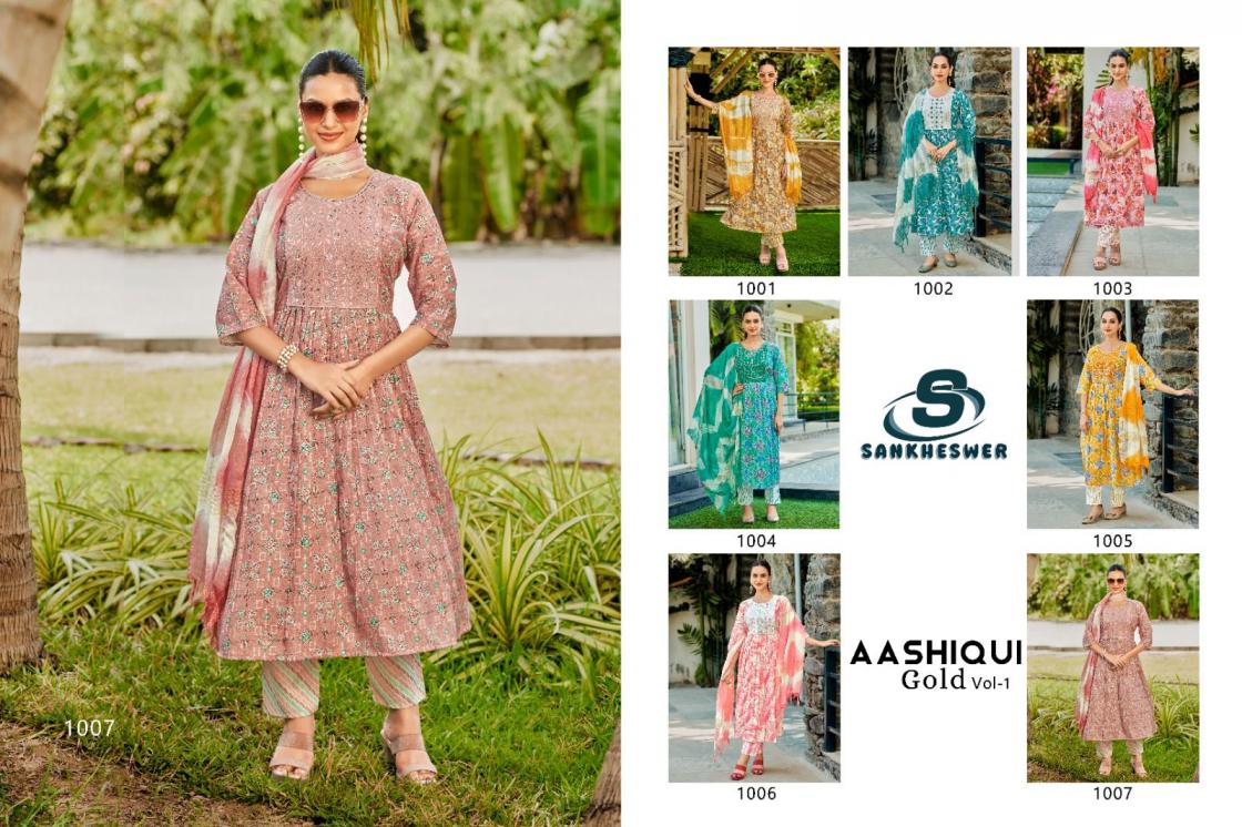 sankheswer aashiqui gold vol 1 capsule print full stitch trendy suits