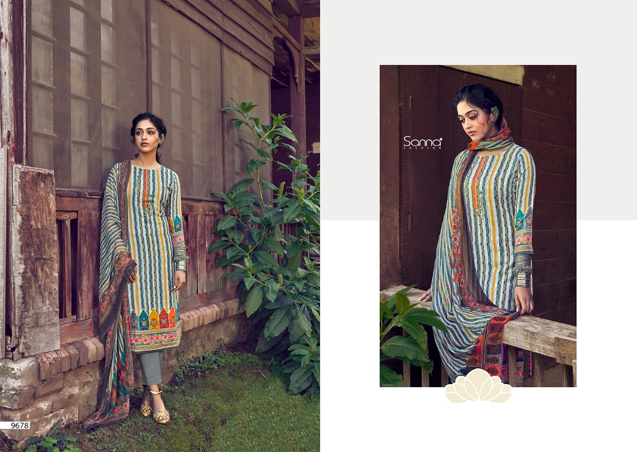 Sanna Fashion Presents Latest Collection Launched on 08-10-2020. Presenting Beautiful collection of 10 PCS with Unstitched .