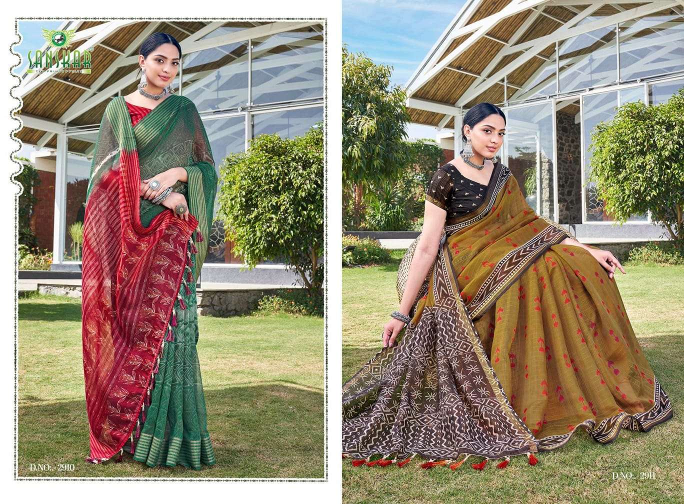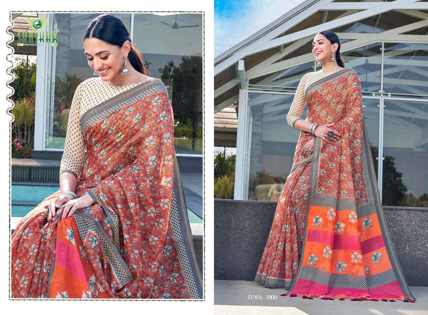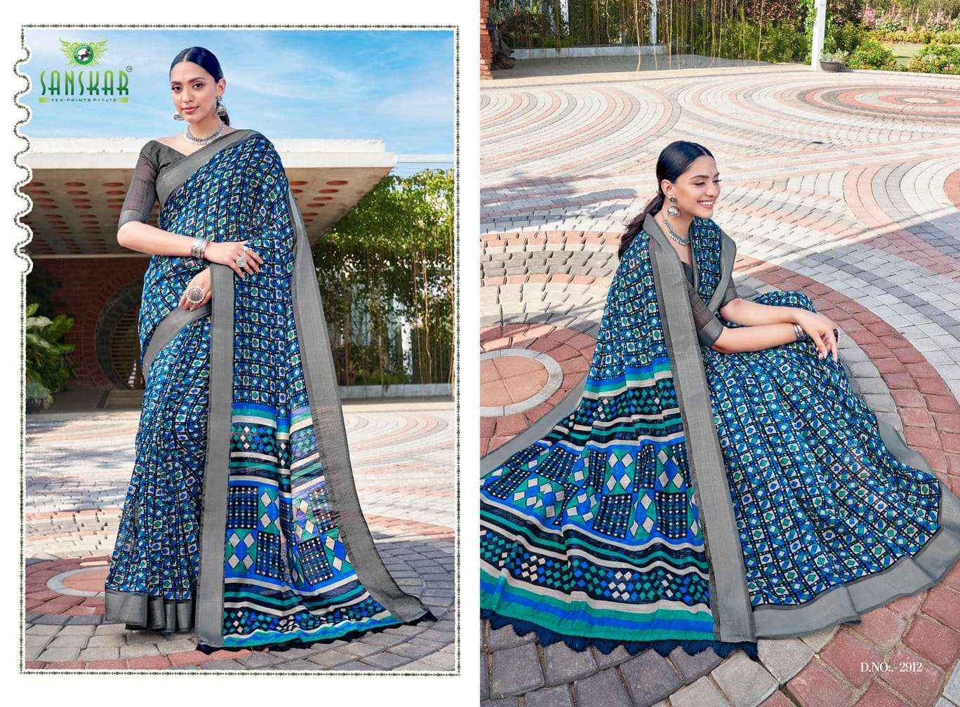 SANSKAR CATLOUGE - Cotton queen Fabric - cotton ,silver pattern border Qty- 12 Dis RATE - 520/- |