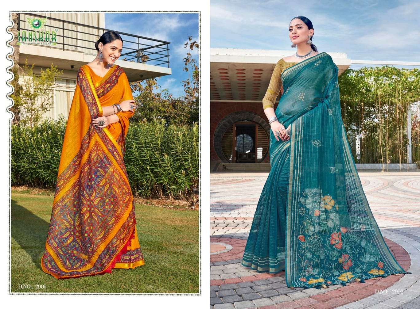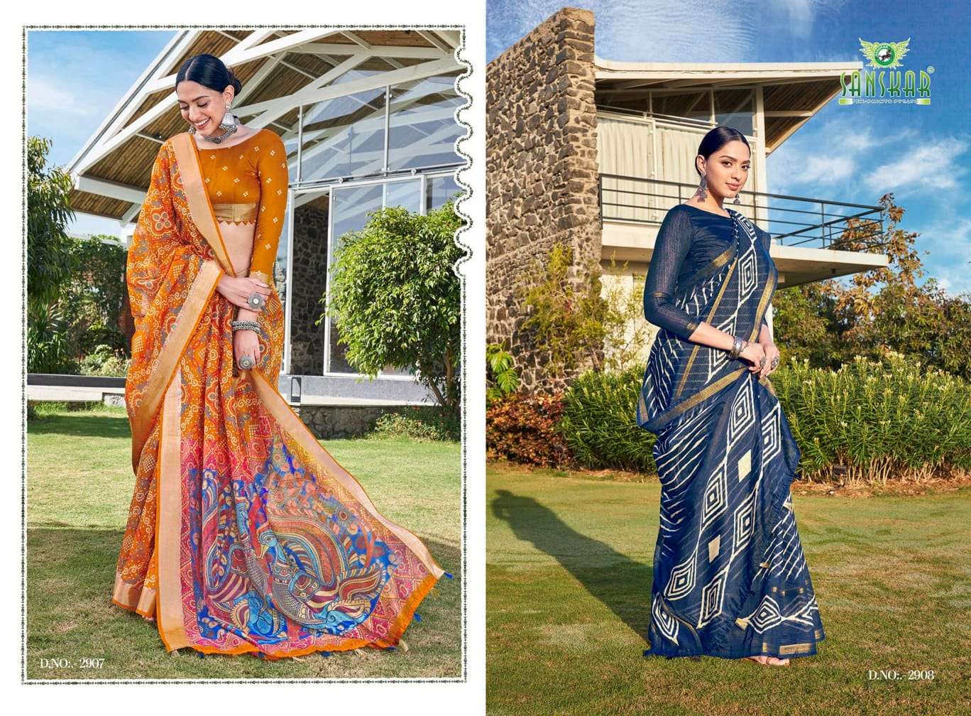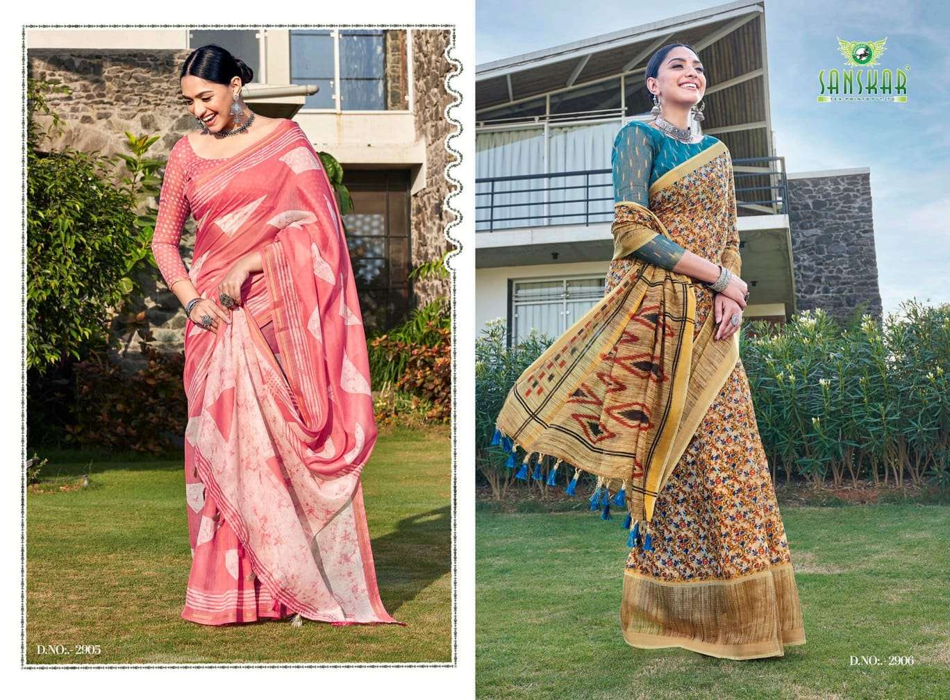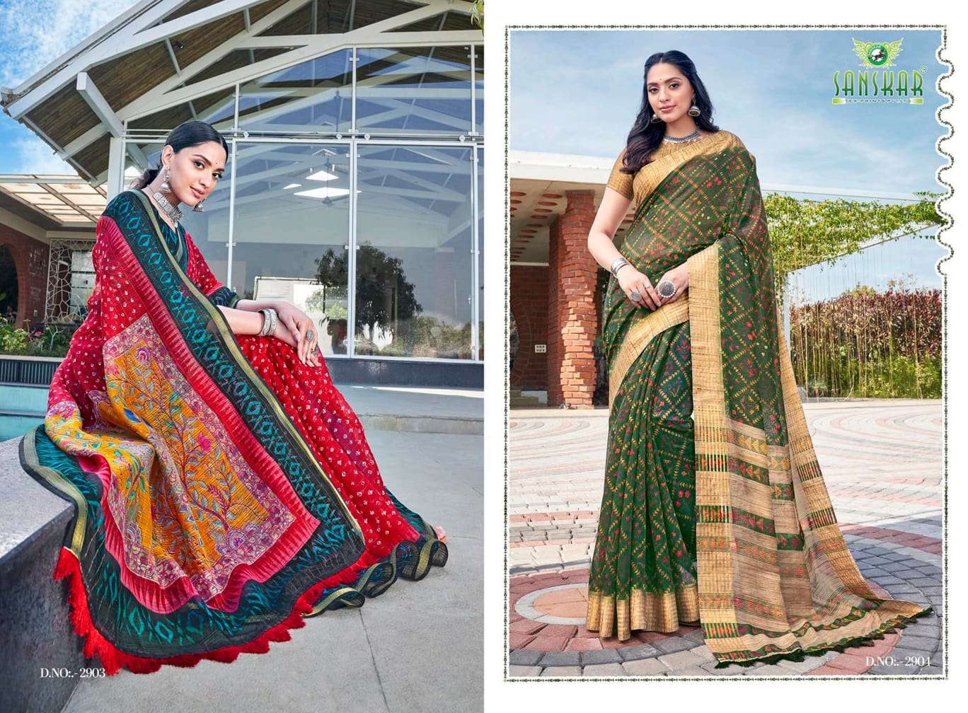 SANSKAR CATLOUGE - Cotton queen Fabric - cotton ,silver pattern border Qty- 12 Dis RATE - 520/- |