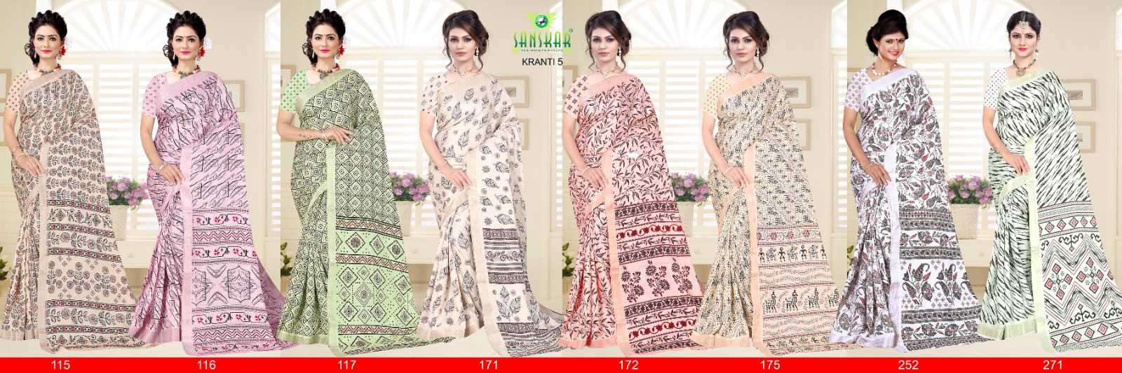 SANSKAR TEX PRINTS PVT LTD CATLOUGE-KRANTI Vol 5 Fabric- Kotha with fancy DIGITAL print with weaving border *Qty- 8 dis RATE - 415₹ |