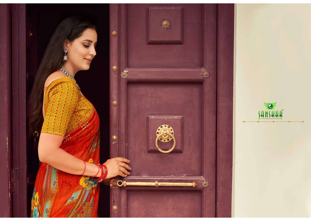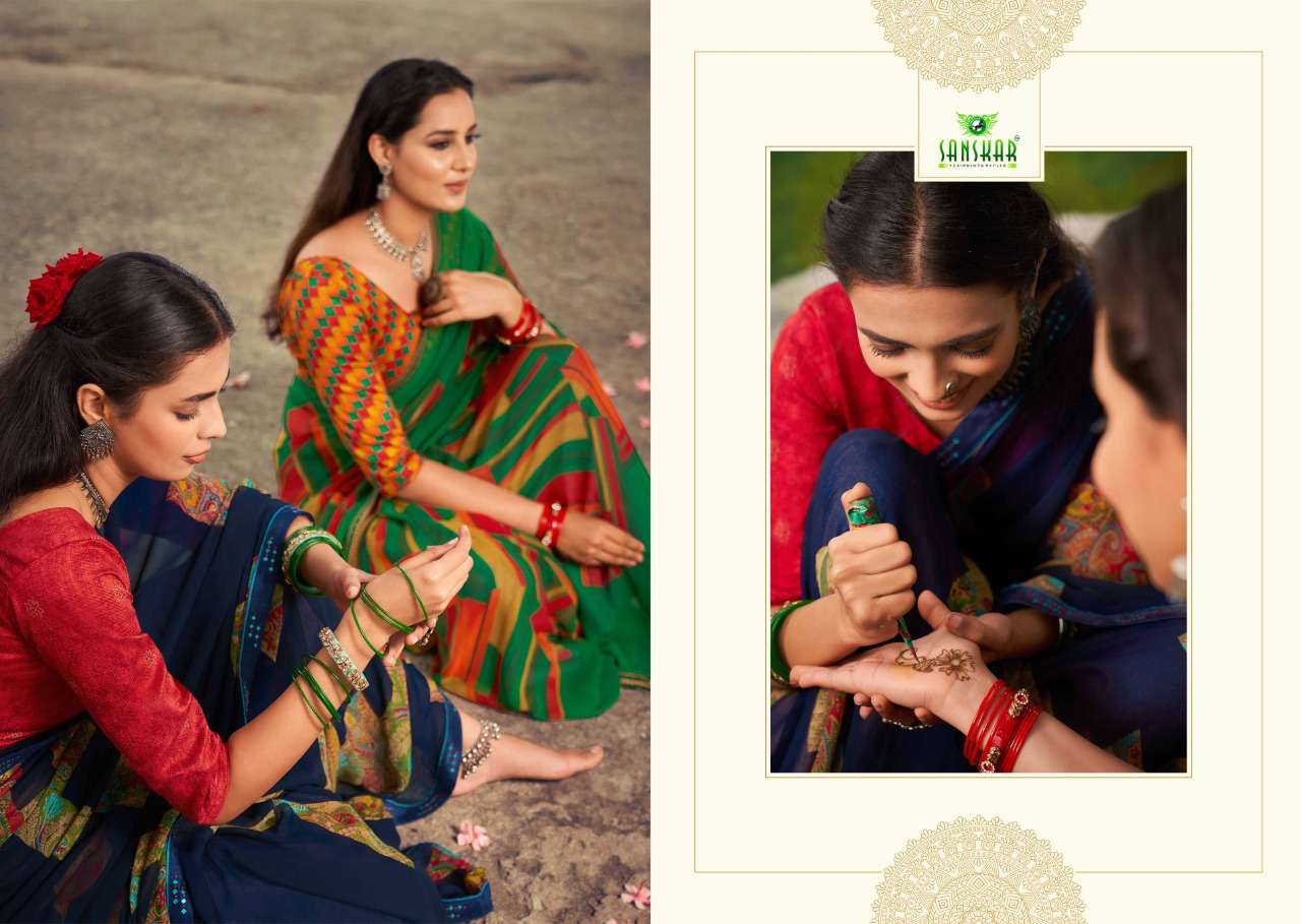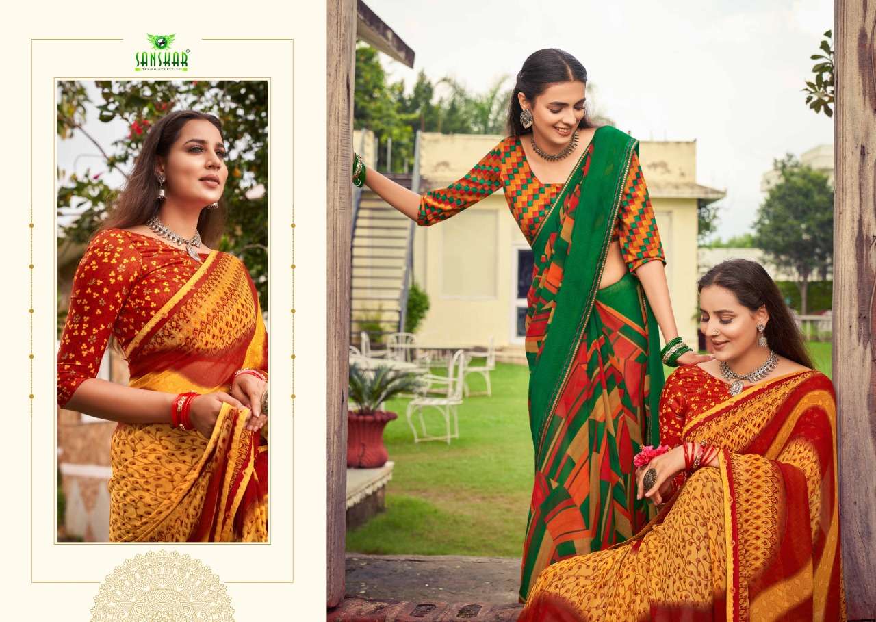 Brand :- Sanskar Print New launching CATLOUGE- RAASRANG Fabric- Bember Georgette with fancy border Qty- 8 dis RATE - 635₹ _Special pure bamber georgette Catalogue!!_ |