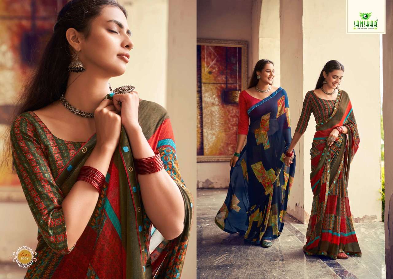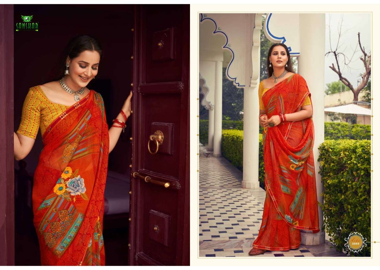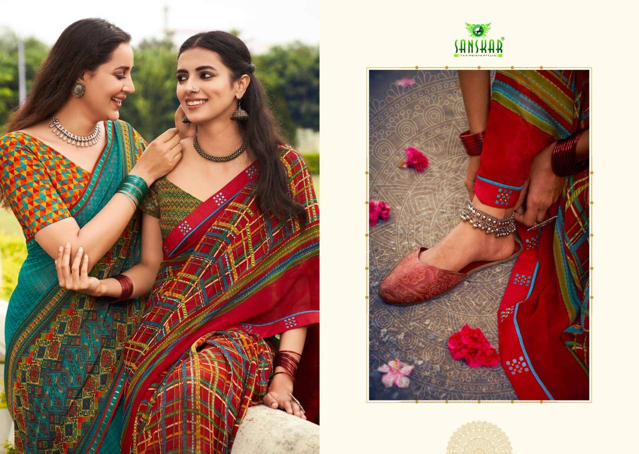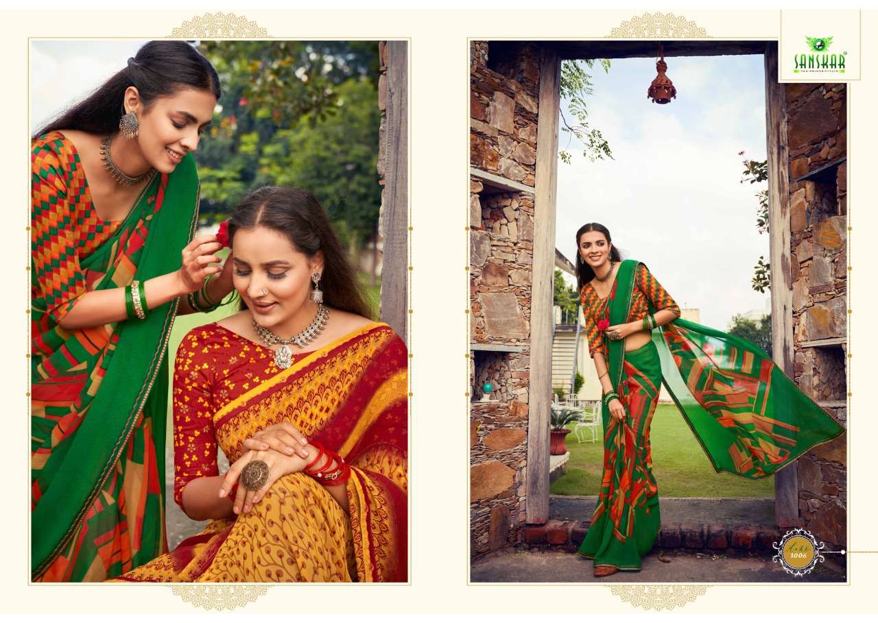 Brand :- Sanskar Print New launching CATLOUGE- RAASRANG Fabric- Bember Georgette with fancy border Qty- 8 dis RATE - 635₹ _Special pure bamber georgette Catalogue!!_ |