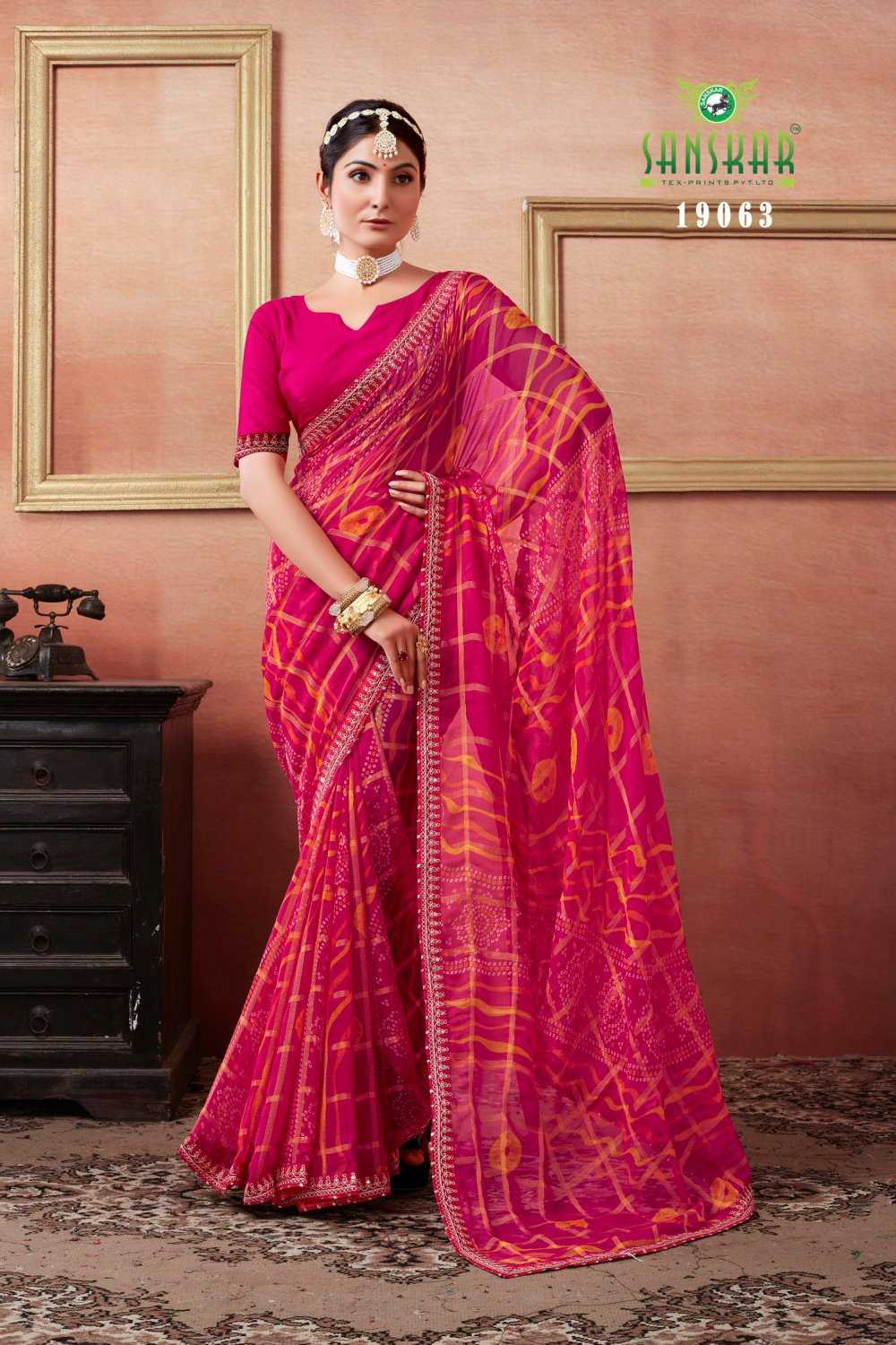 New launching CATLOUGE- RANGPANCHAMI Fabric- Bright Cheks pettern bandhani print embroidery border with blouse Qty- 8 dis RATE -765 |