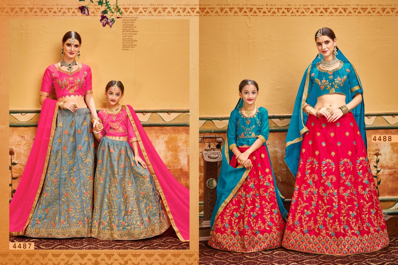 Sanskar Style Black And White Banarasi Silk Designer Lehanga For Mother And Daughter