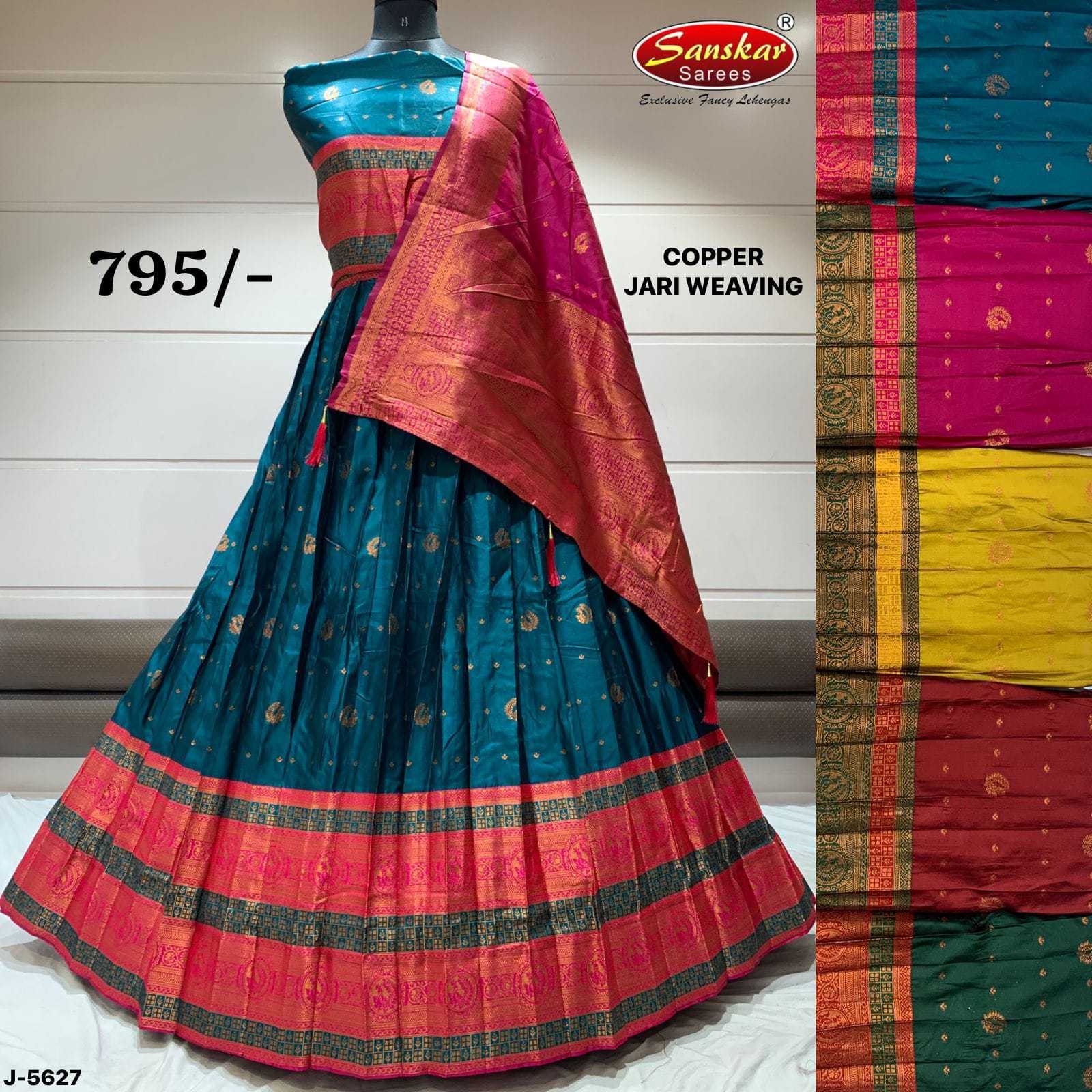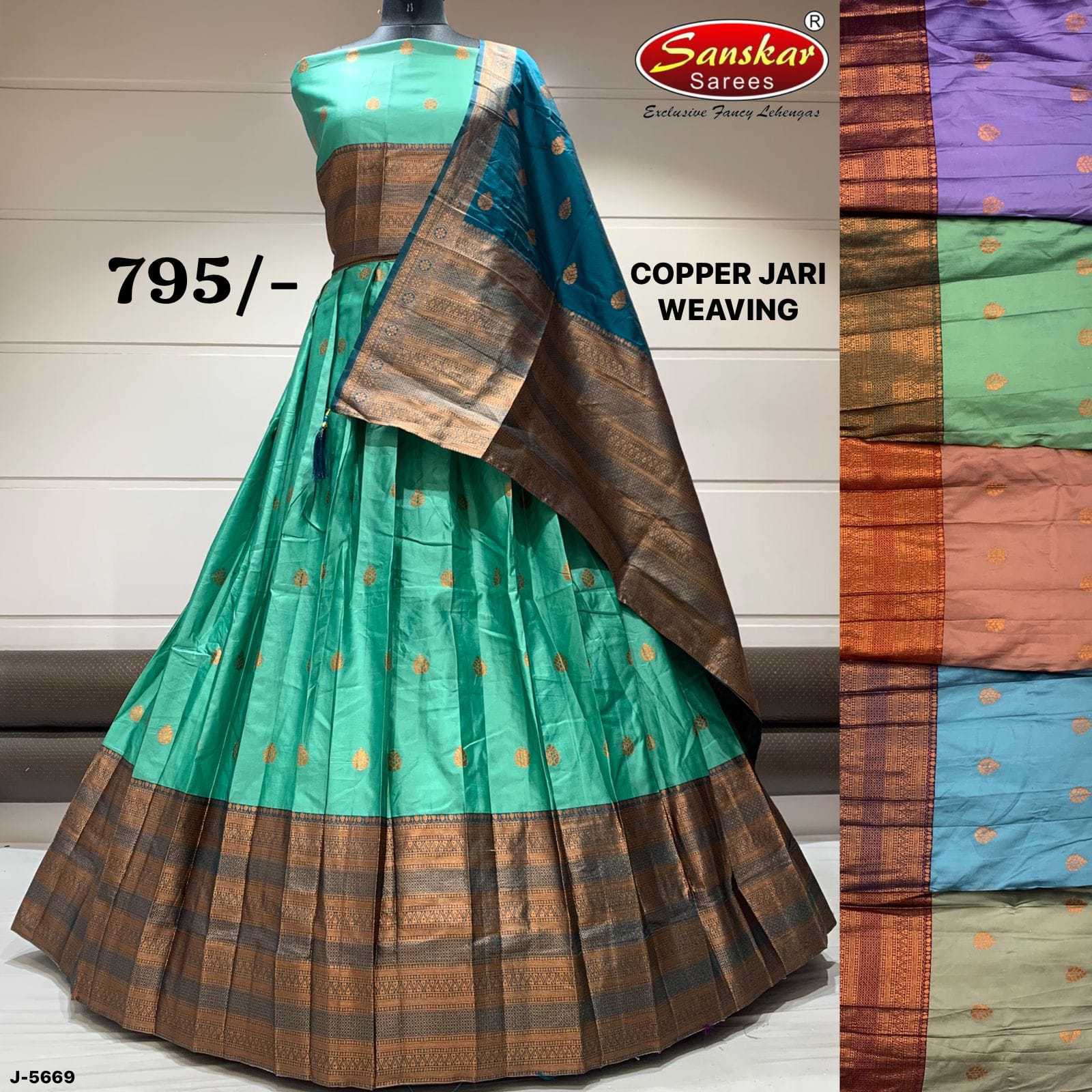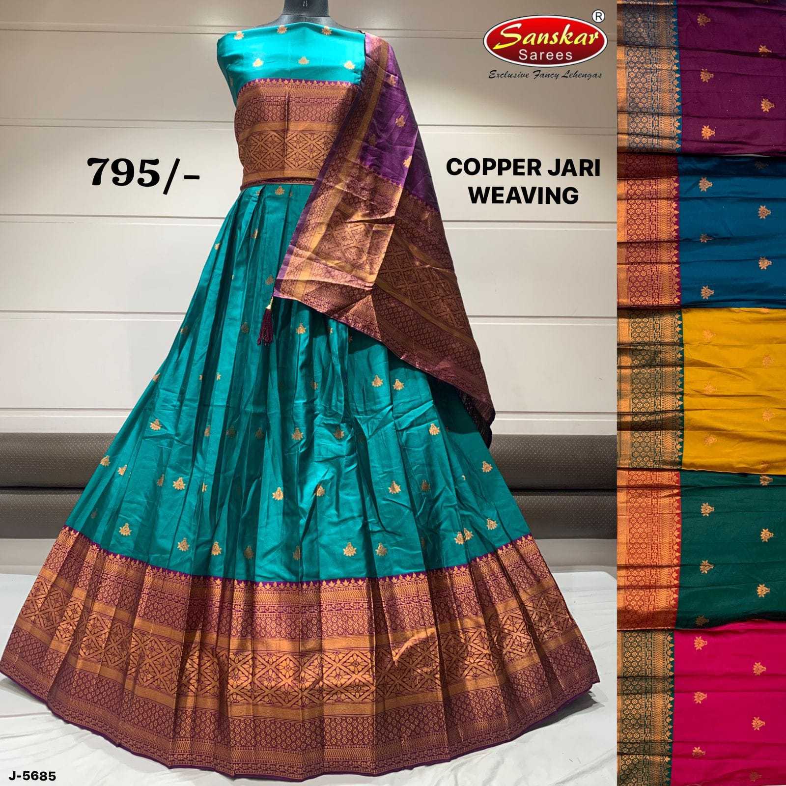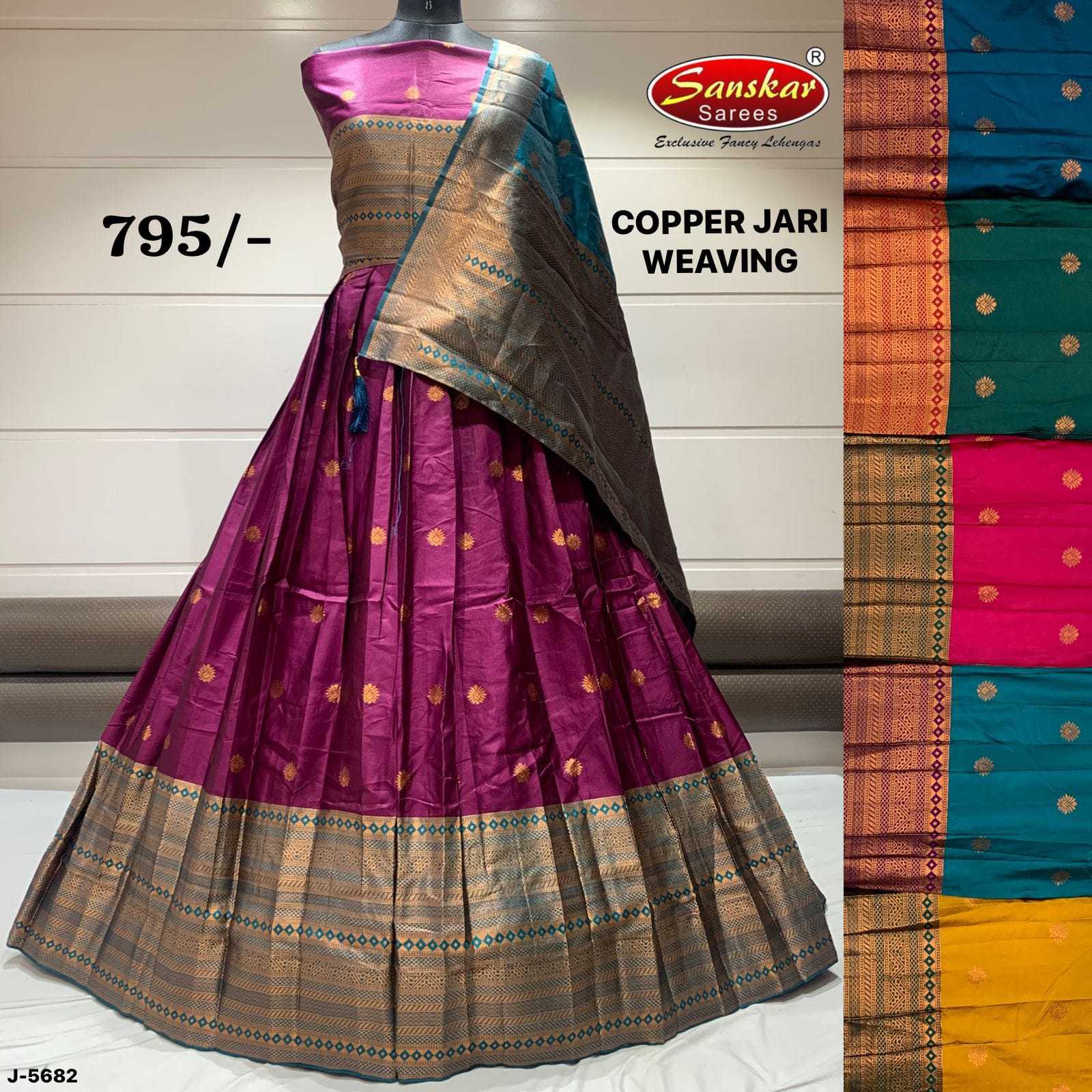 Sanskar style designer pattu copper jari weaving kids wear lehenga