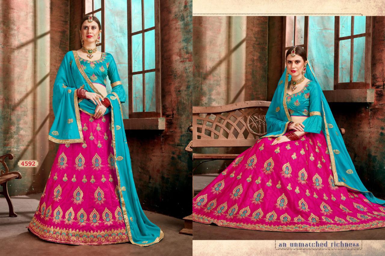 RATE - 1095/- Set to set. GST 12 Percent Extra BAHUBALI C*N SILK LEHENGA HEAVY WORK BLOUSE & DUPATTA 6 DSGN CATALOG. Delivery from today |