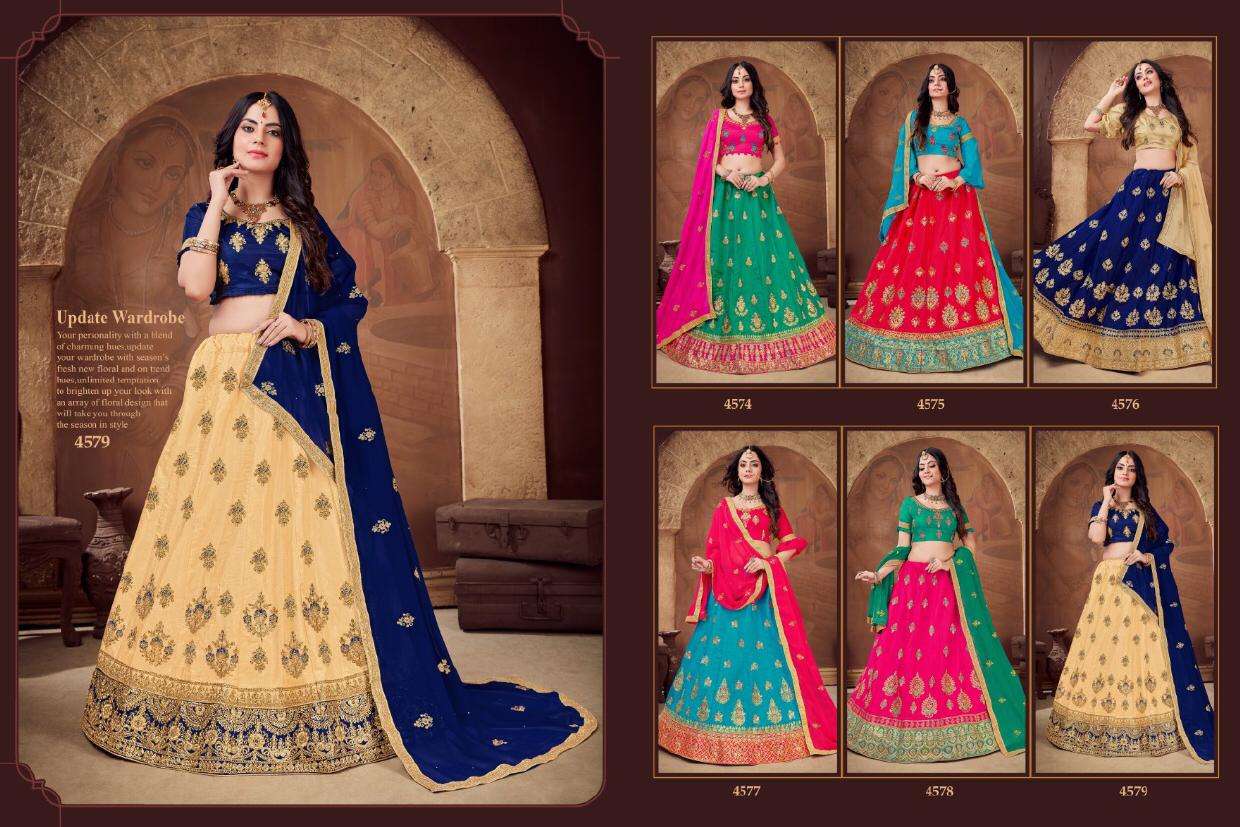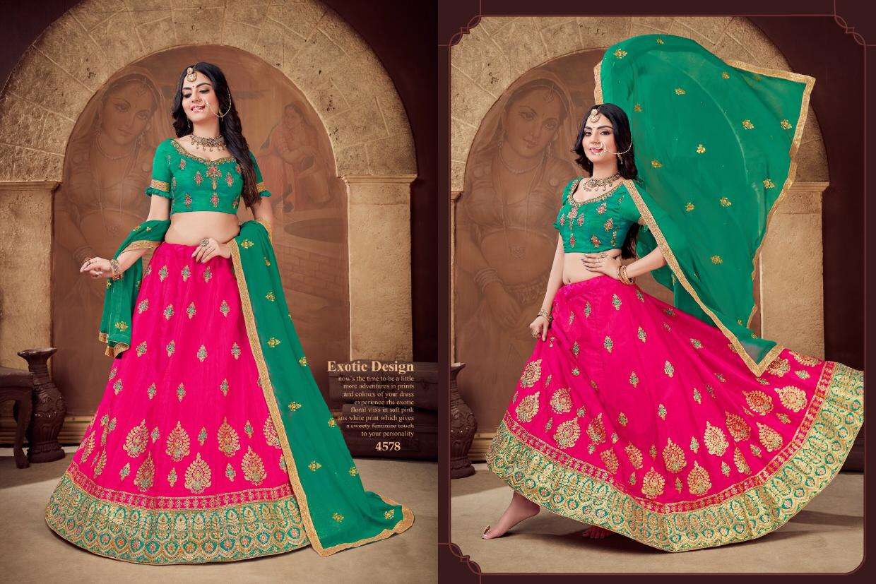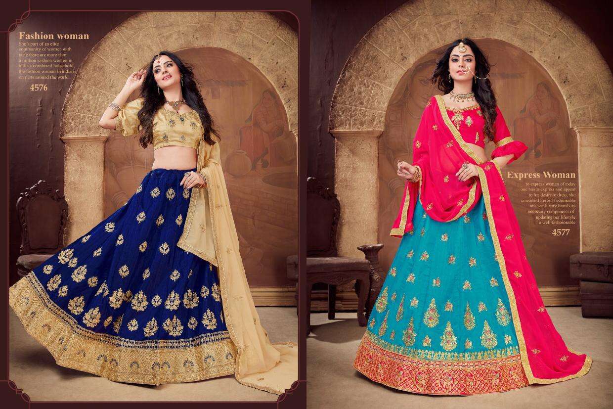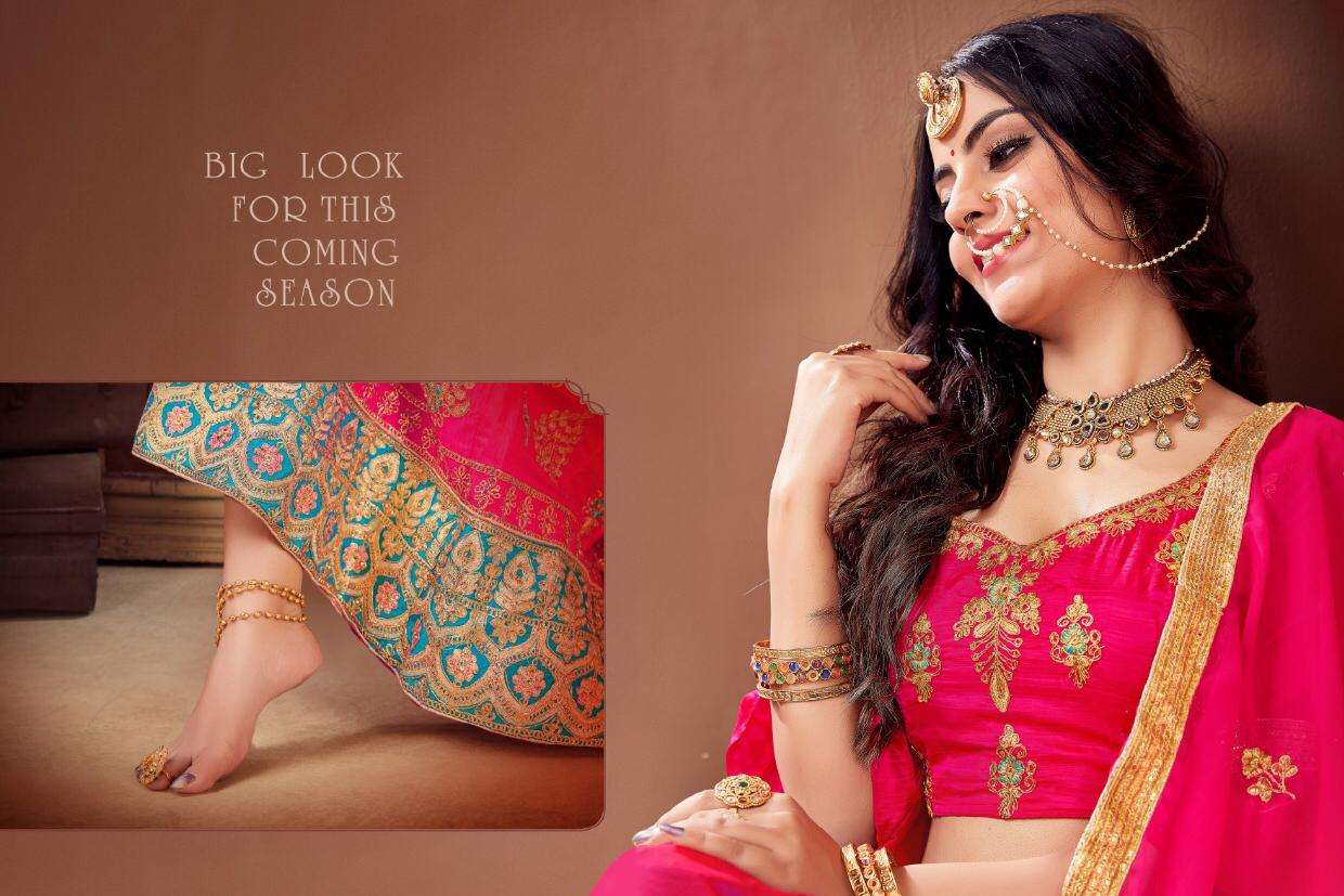 Brand - Sanskar style . SANSKAR STYLE -NEXON- Per PCs  RATE - 1295/- Set to set. GST 12 Percent Extra SILK LEHENGA CONTRAST HEAVY BORDER HEAVY WORK BLOUSE & DUPATTA 6 DESIGN CATALOG |