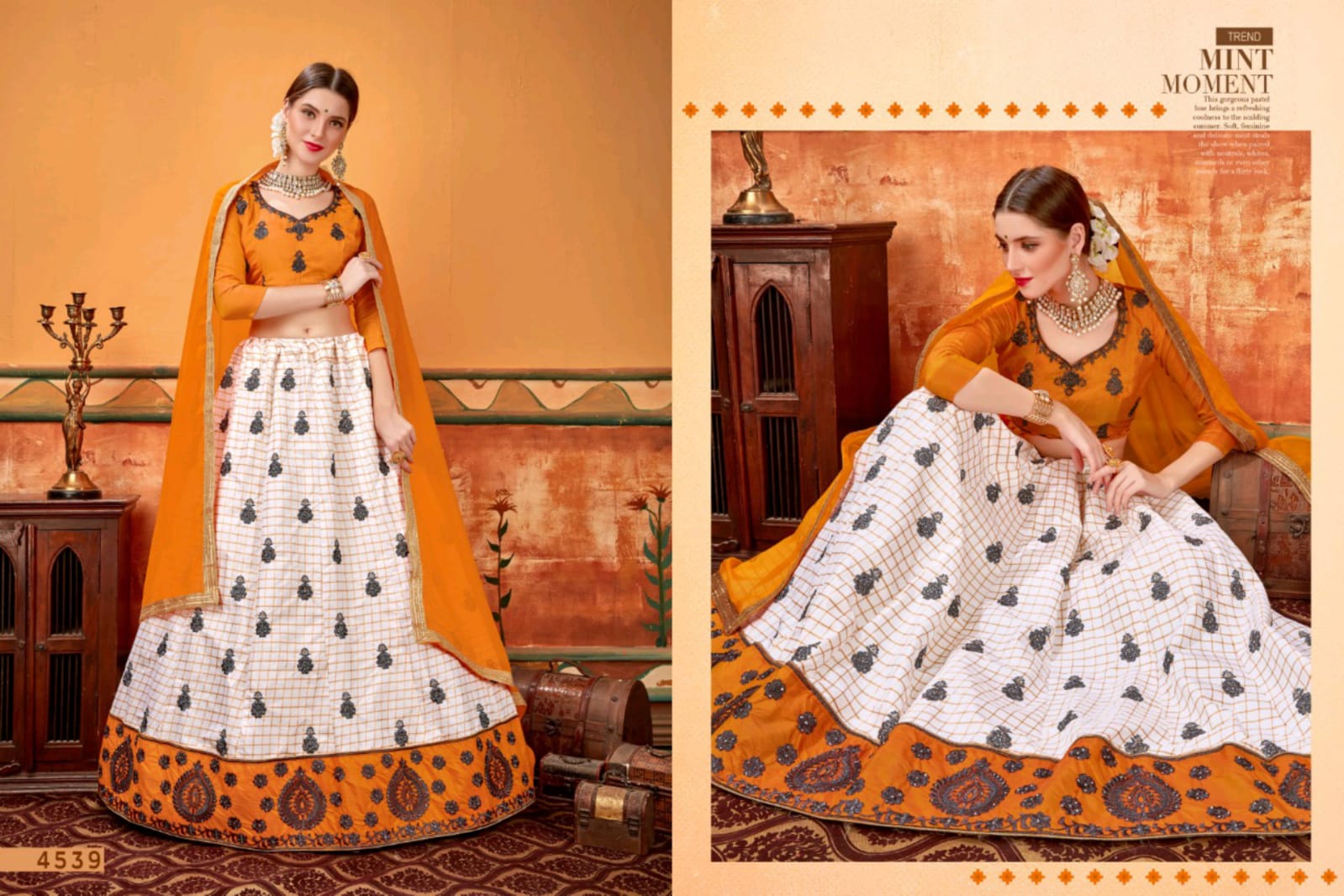 SANSKAR STYLE -PANETAR-. RATE - 995/- WHITE CHECKS LEHENGA CONTRAST HEAVY BORDER GREY COMMON CONCEPT 6 PIECE CATALOG |