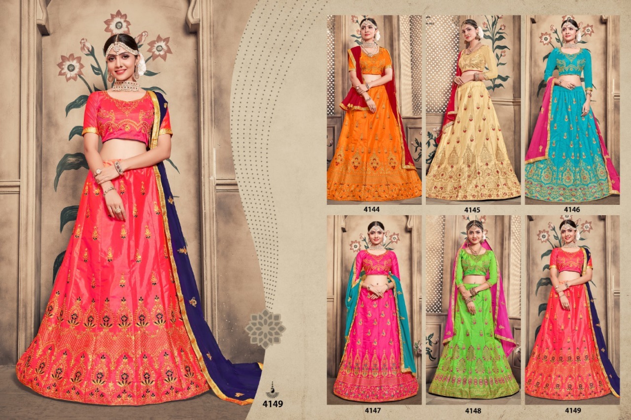 SANSKAR STYLE -RIVAAZ-. RATE - 1195/- Set To set GST 12 Percent Extra. Delivery from today PURE SATIN LEHENGA FANCY WORK DUPATTA FANCY WORK BLOUSE. 6 PIECE CATALOG |