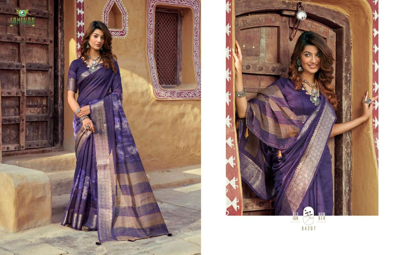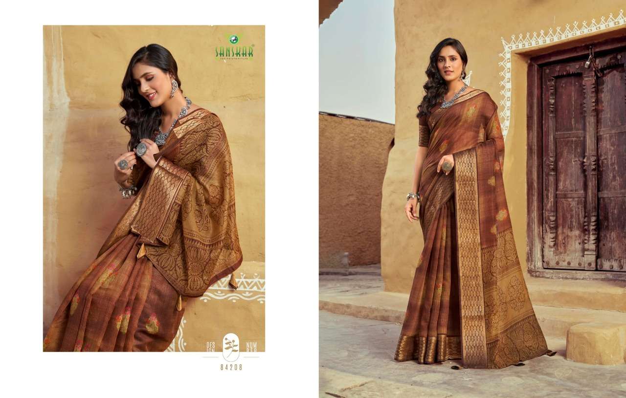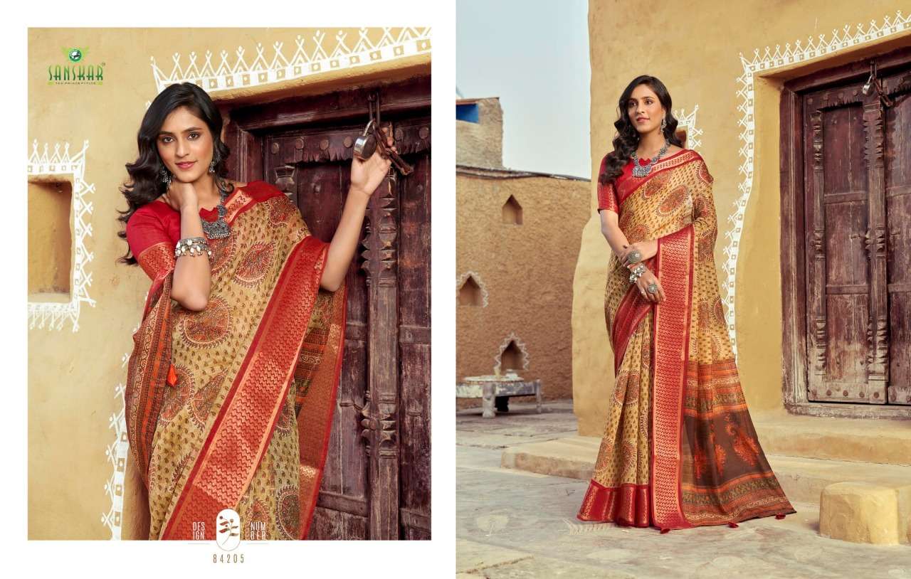 New launching Sanskar tex prints pvt. ltd. CATLOUGE- Aangan Fabric- Fancy silk jari bordar with blouse *Qty- 8 dis RATE - 599रु _Special fancy Catalogue!!_ |