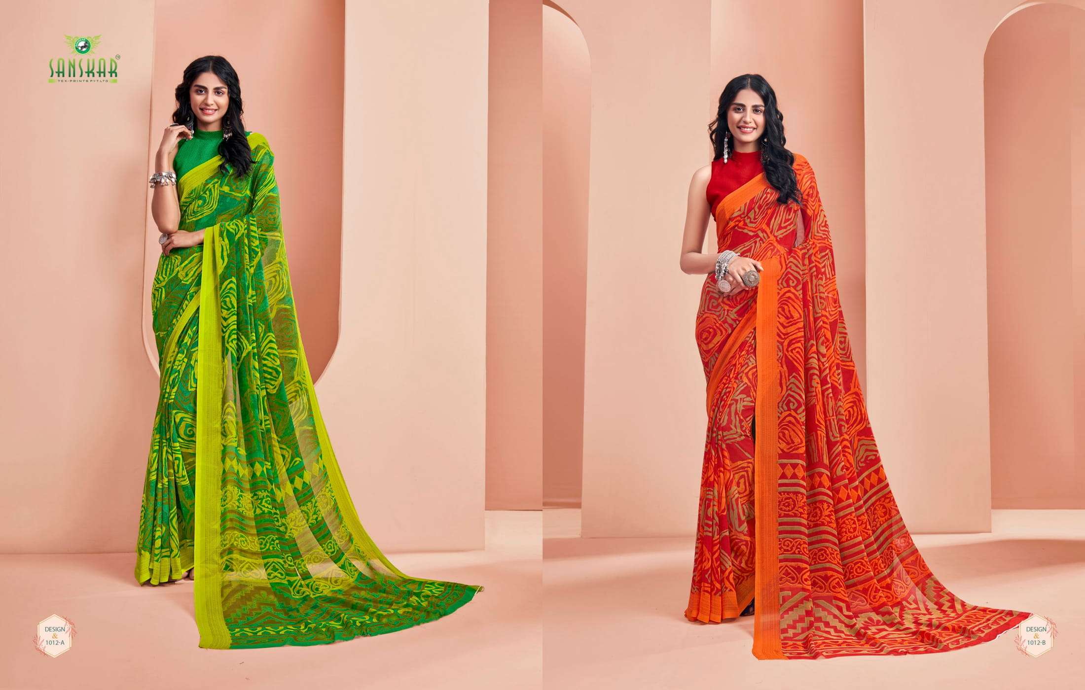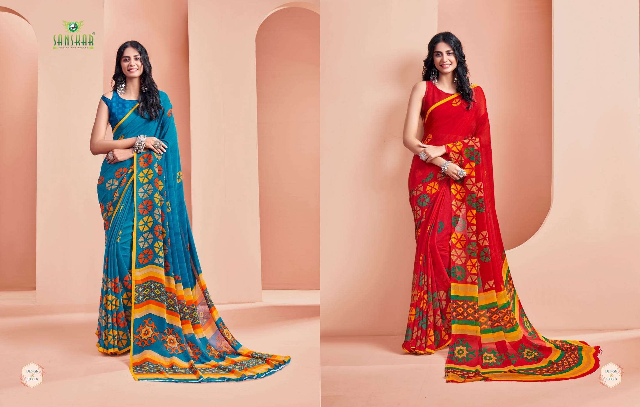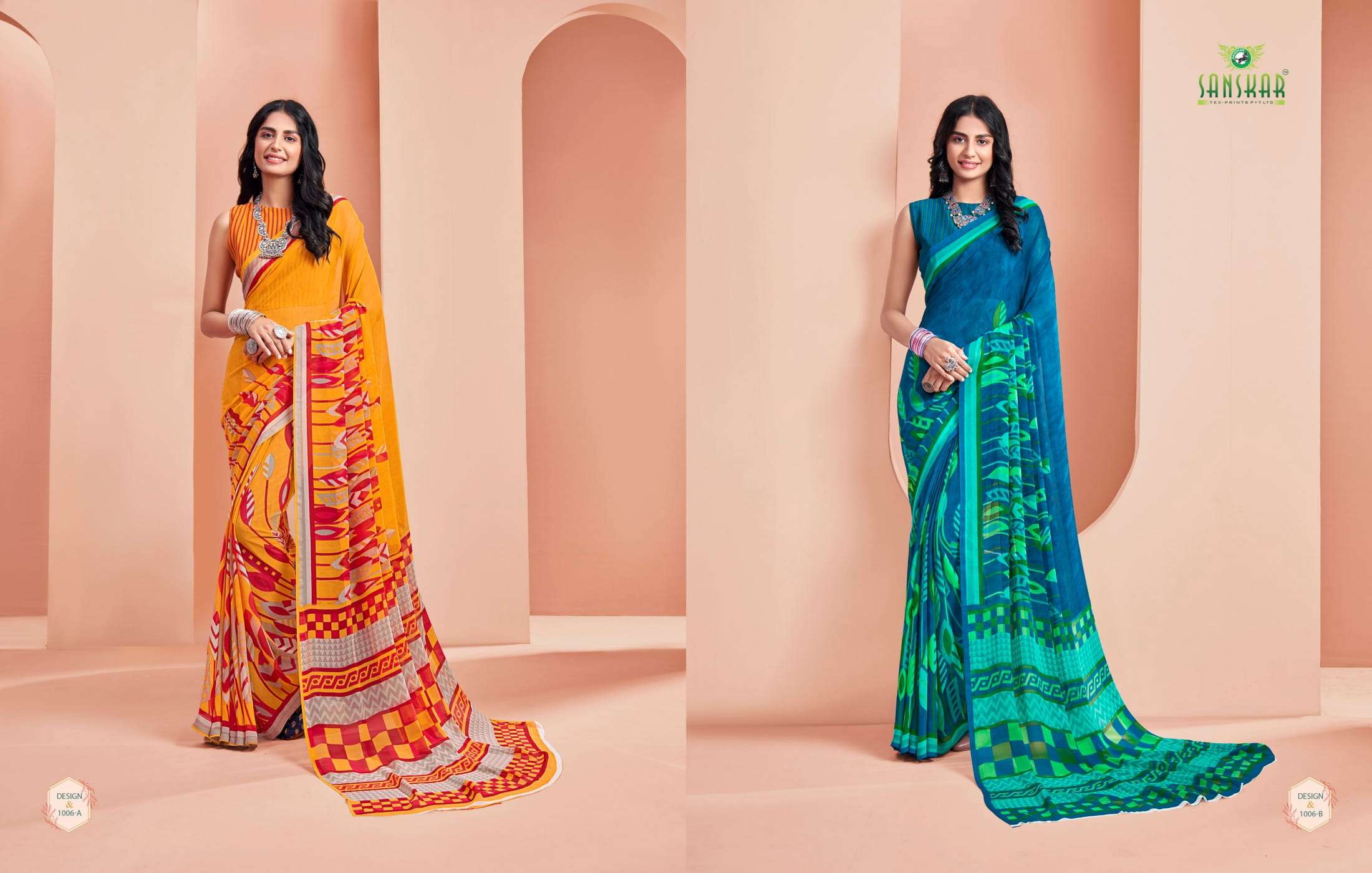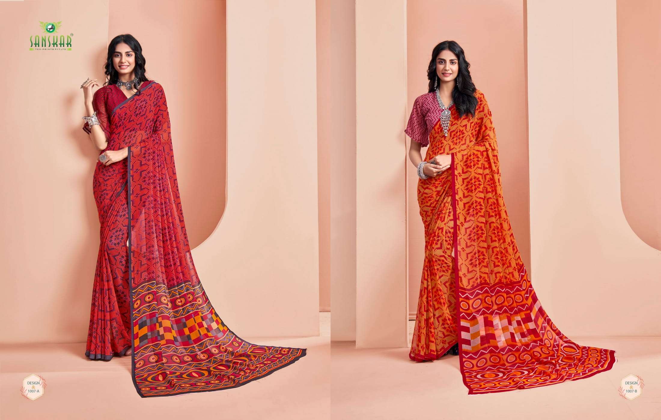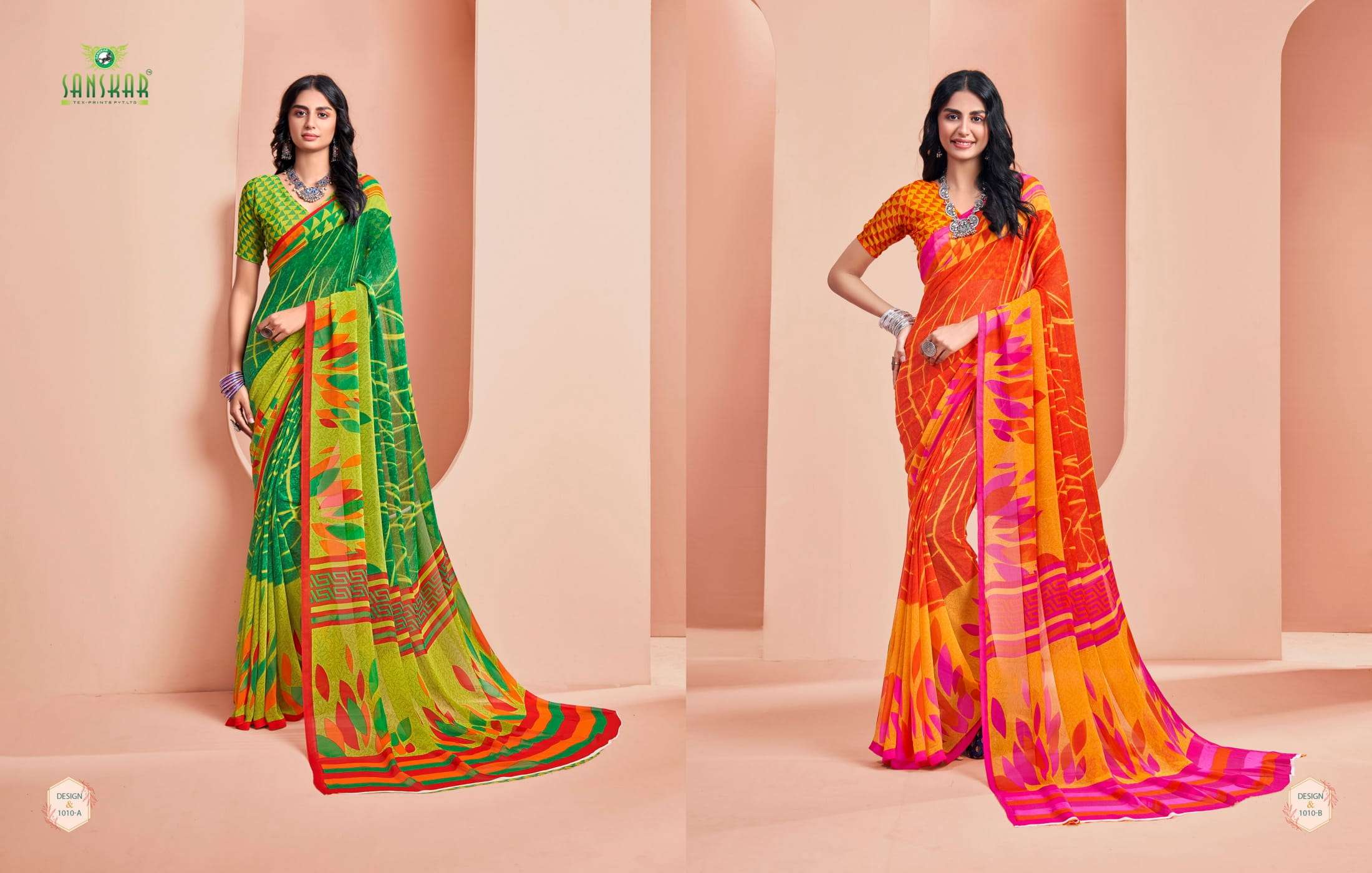 New launching Sanskar tex prints pvt. ltd. CATLOUGE- ARMANI Fabric- Bember Georgette with blouse *Qty- 24 dis RATE - 525₹ _Special pure bamber georgette Catalogue!!_ |