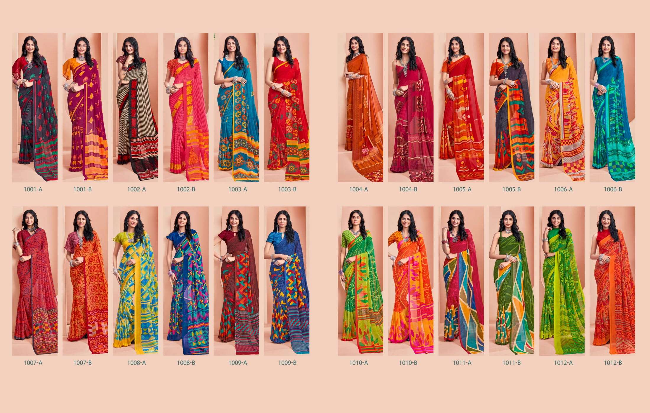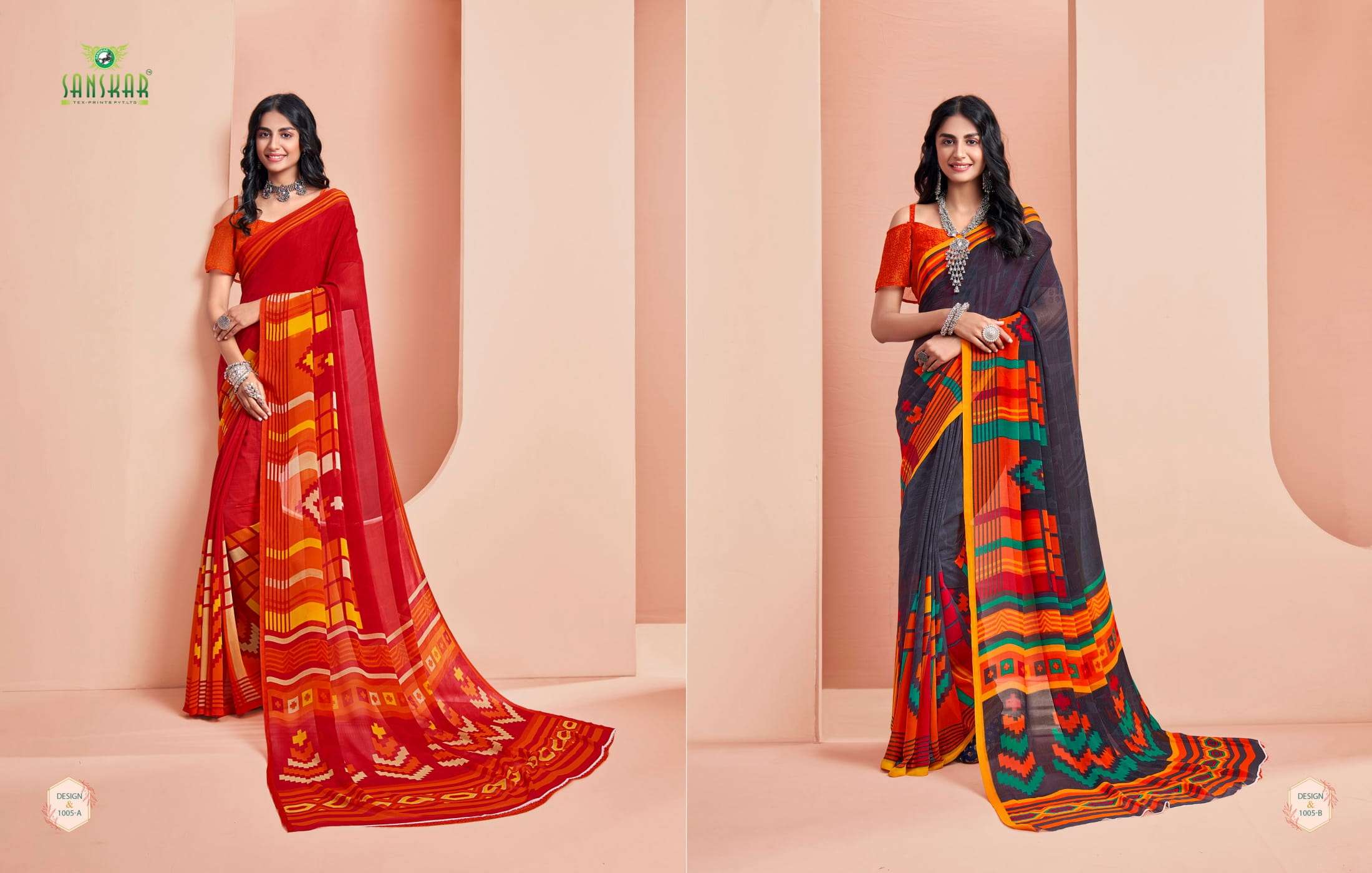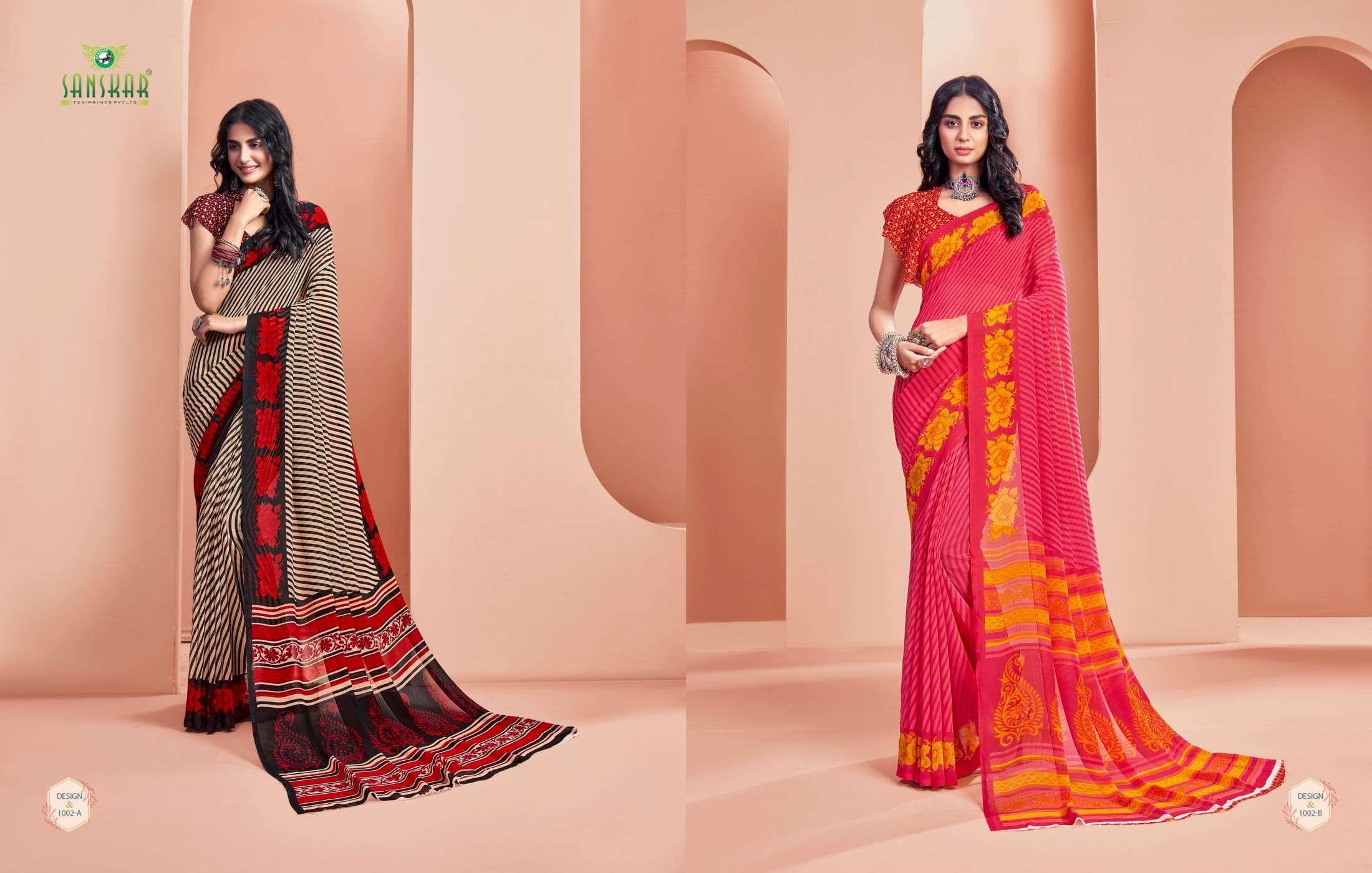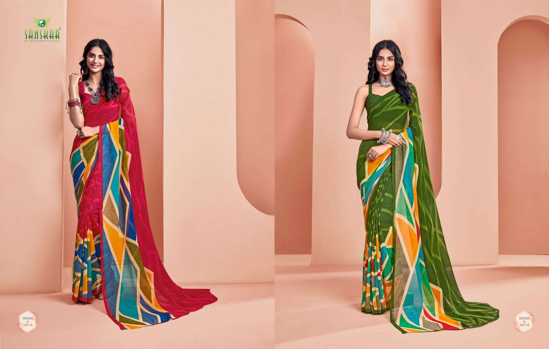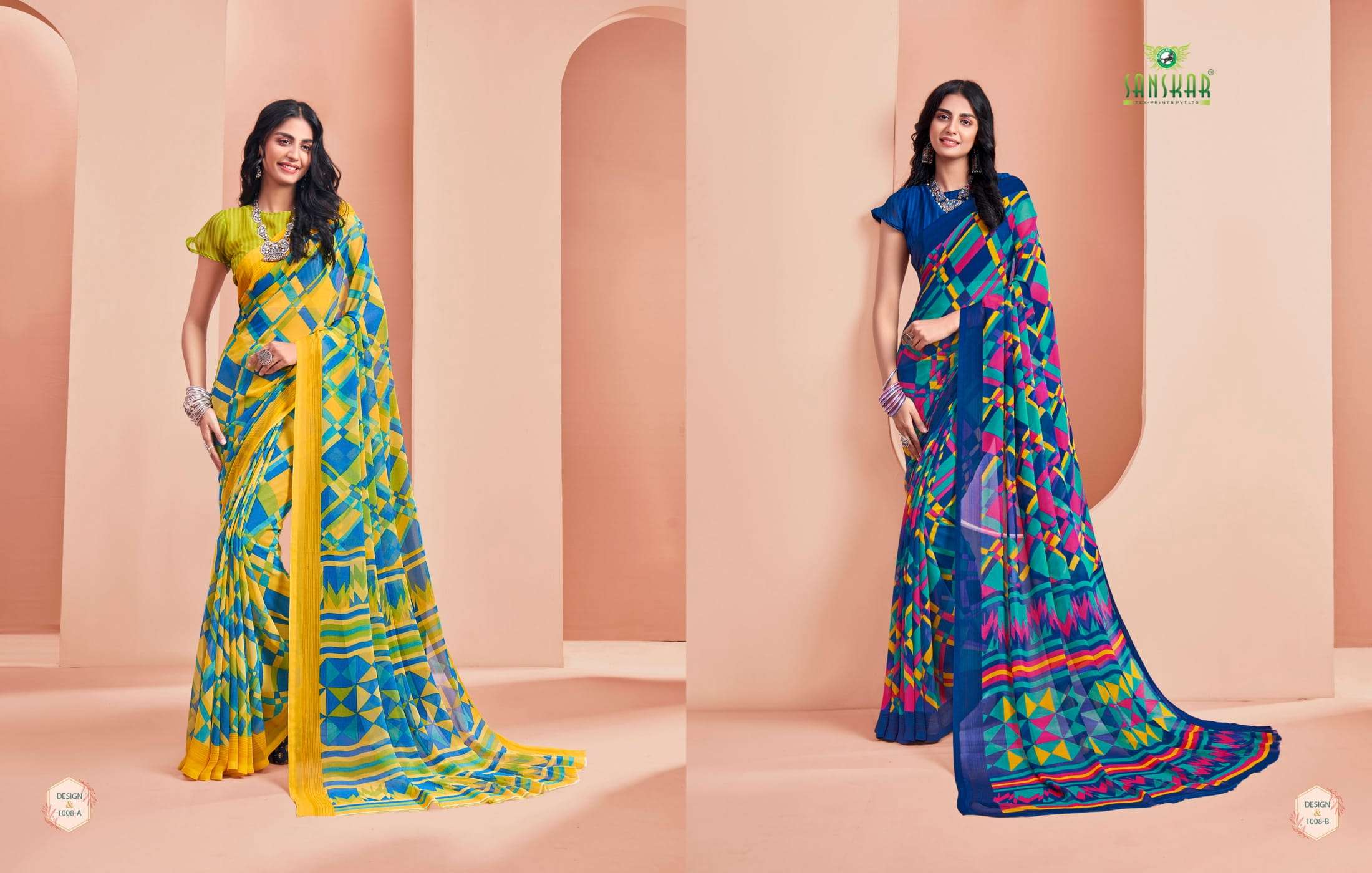New launching Sanskar tex prints pvt. ltd. CATLOUGE- ARMANI Fabric- Bember Georgette with blouse *Qty- 24 dis RATE - 525₹ _Special pure bamber georgette Catalogue!!_ |