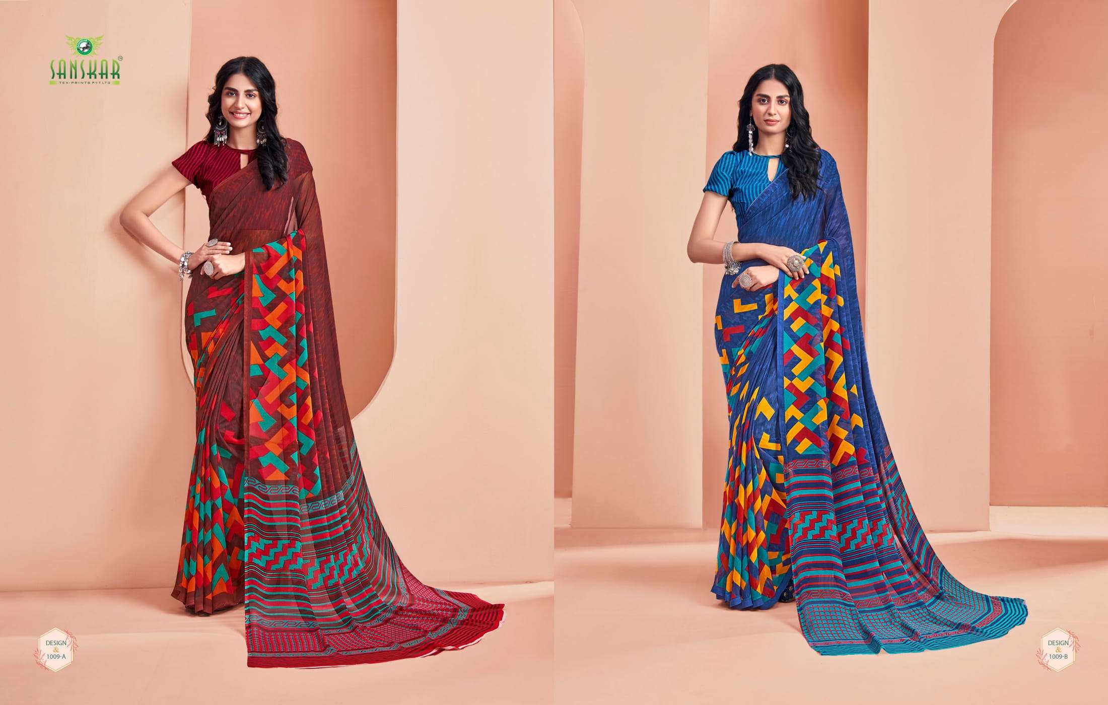 sanskar tex armani georgette saree with blouse lowest cost