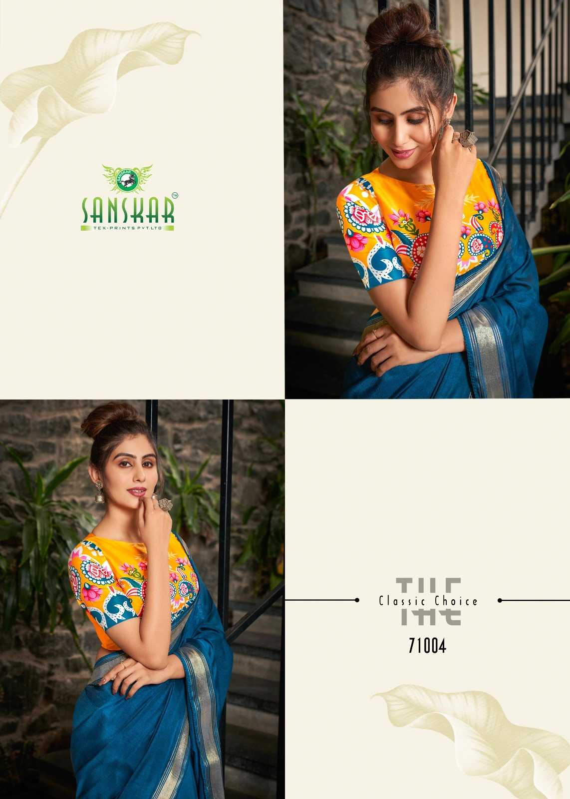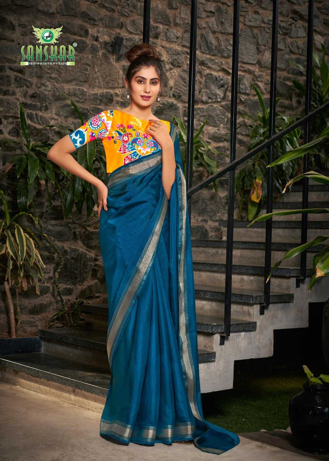 sanskar tex lyra cotton comfortable designer silver jari weaving border saree