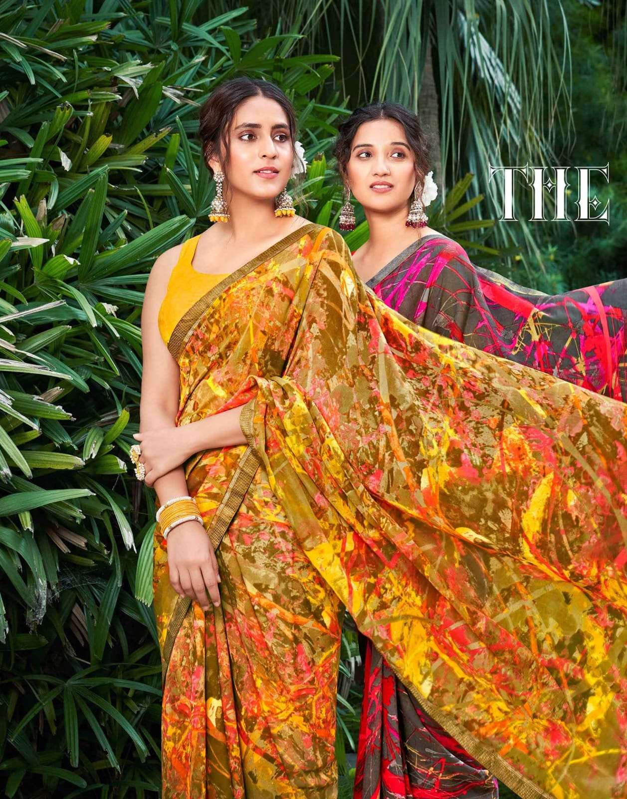 New launching CATLOUGE-RAGMALA Fabric- Pure crush Georgette with fancy border & blouse Qty- 12 dis RATE-690₹ |