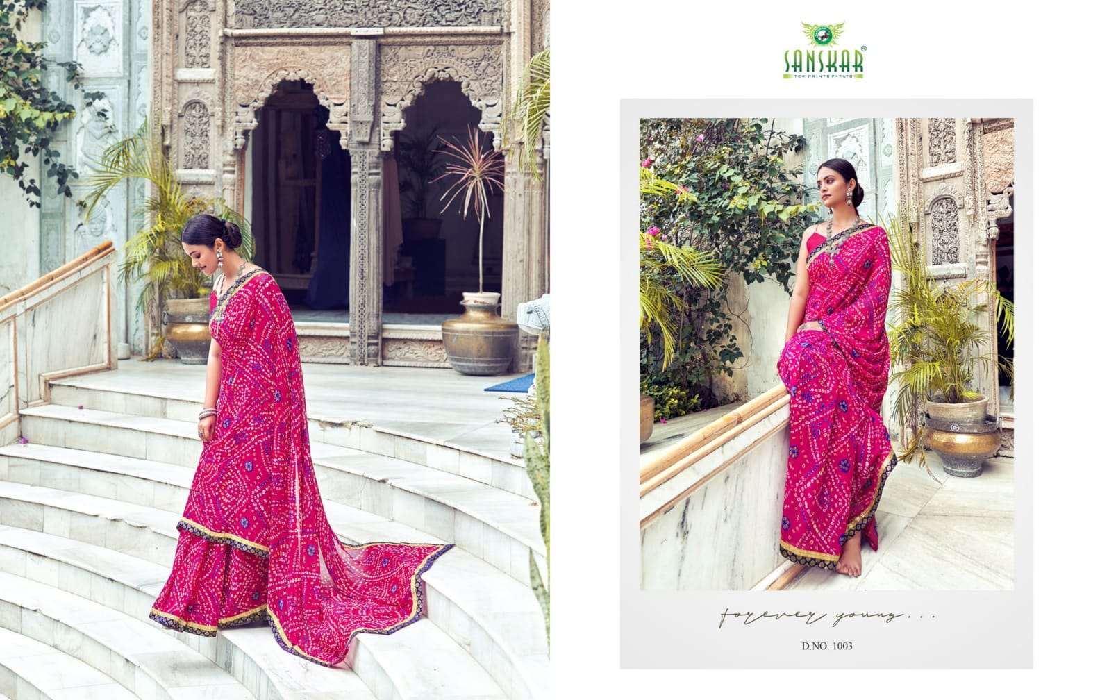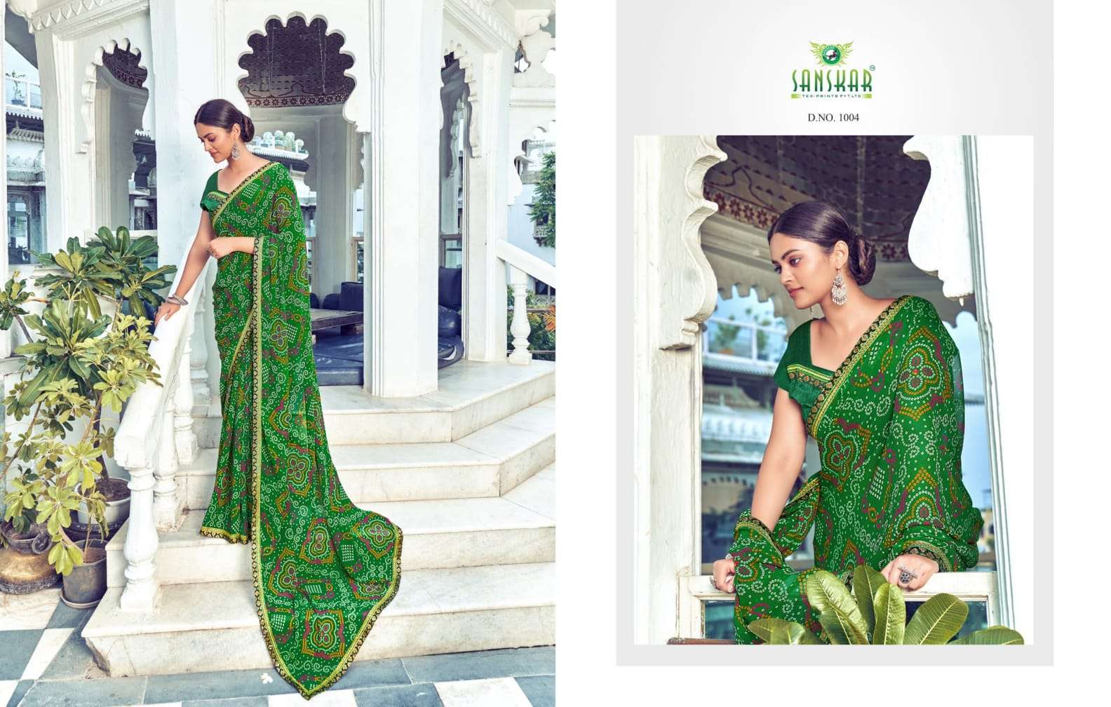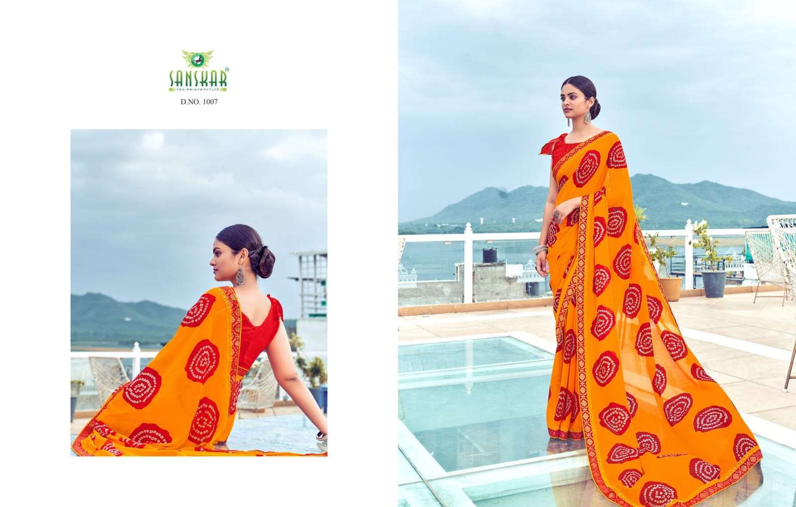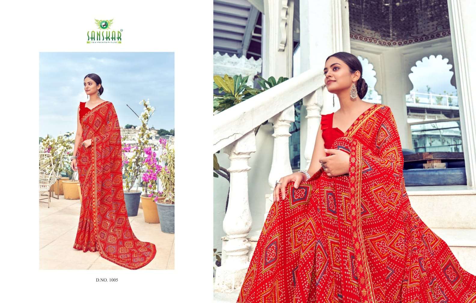 sanskar tex print bandhej bubble georgette fancy sarees wholesaler