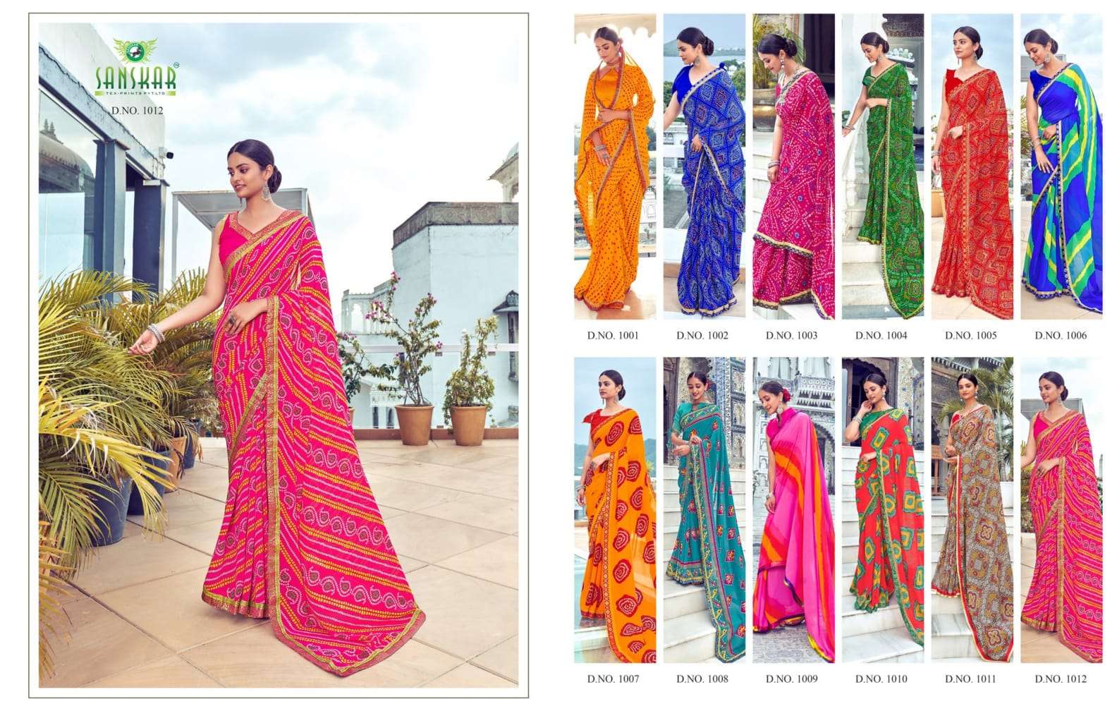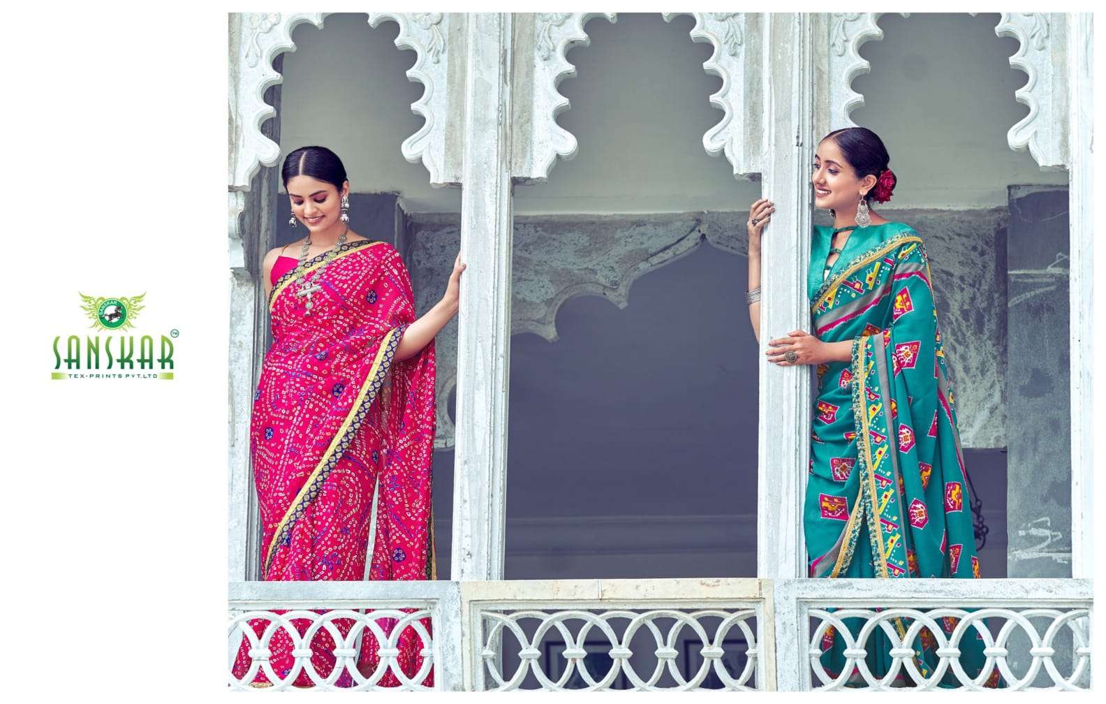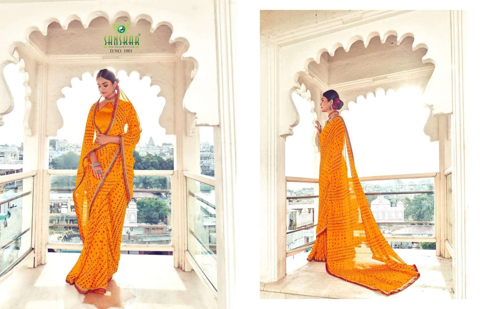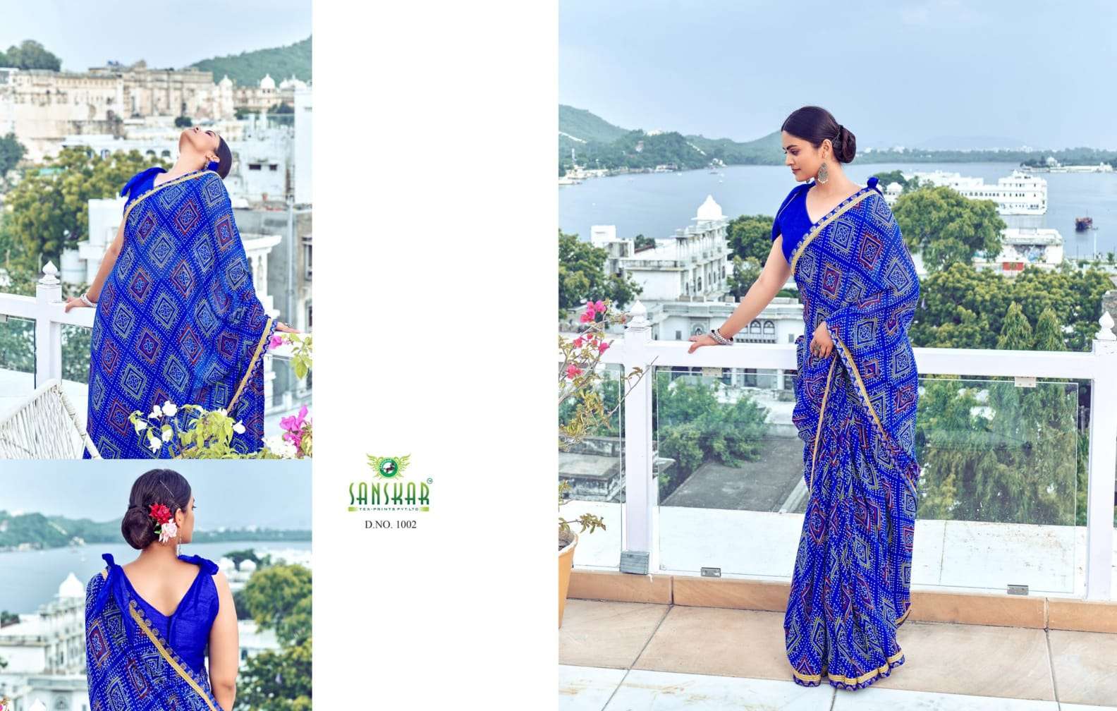 sanskar tex print bandhej bubble georgette fancy sarees wholesaler