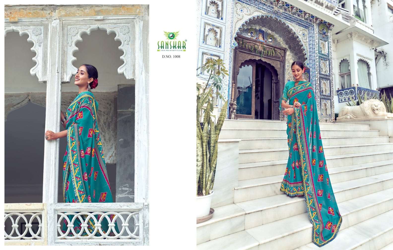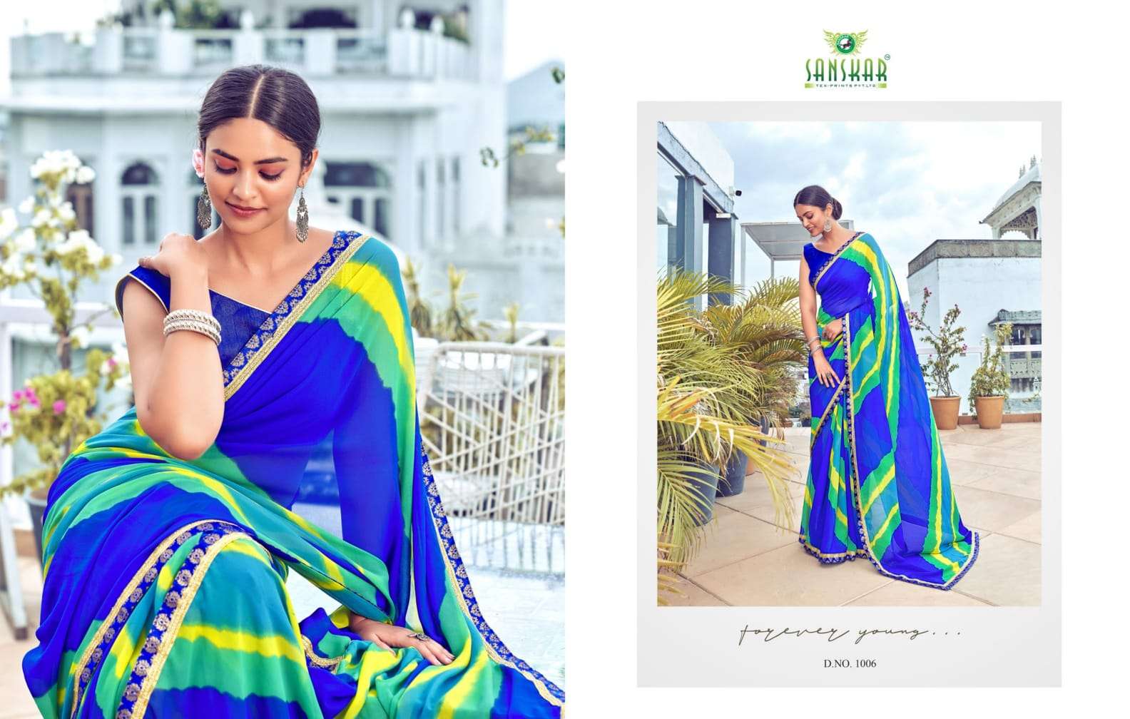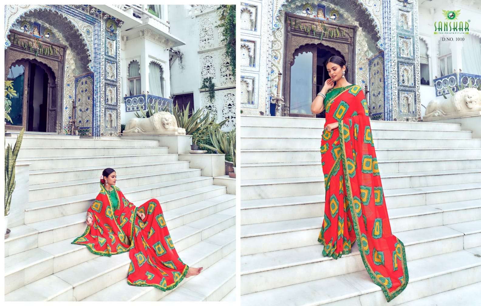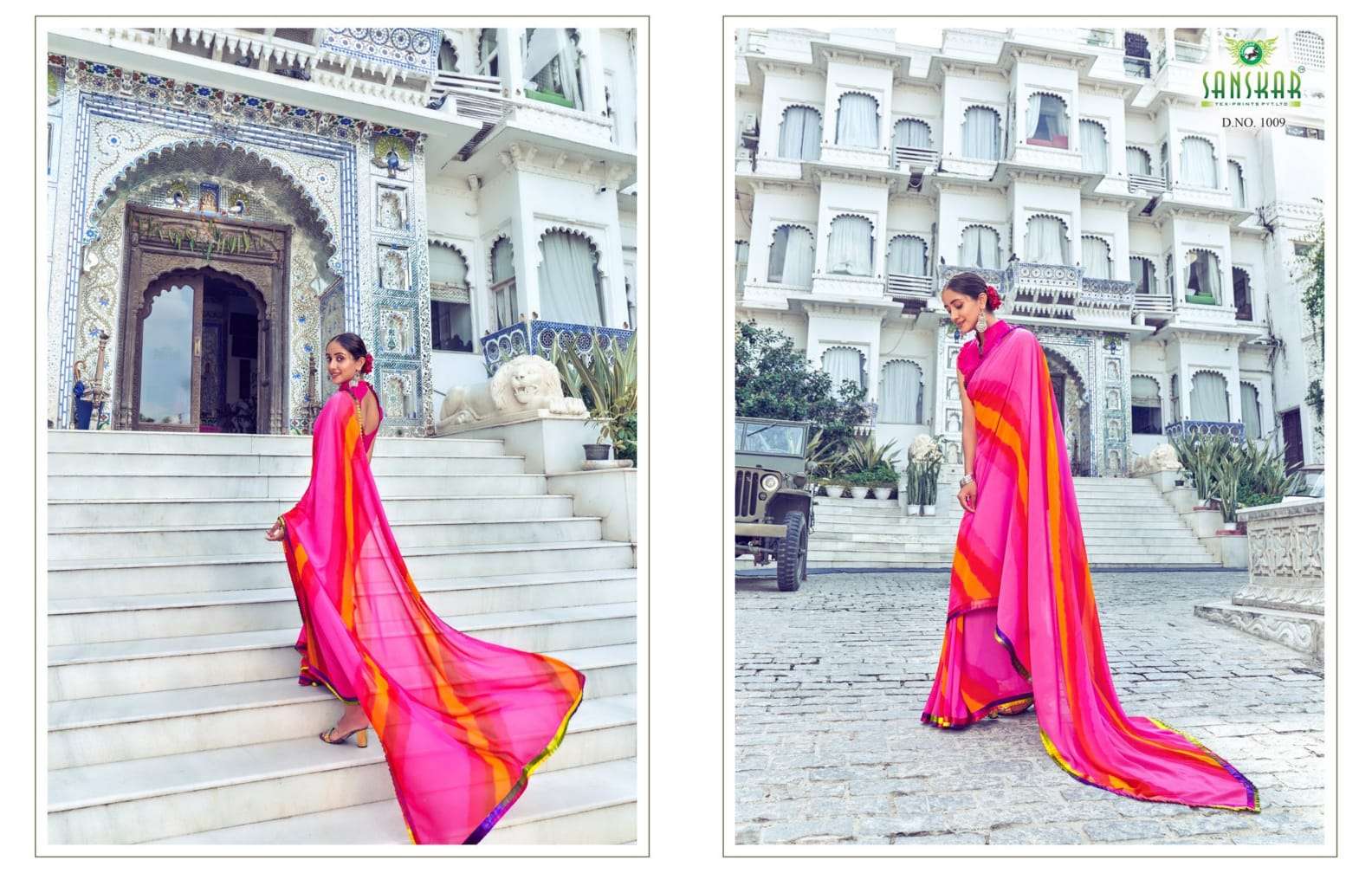 sanskar tex print bandhej bubble georgette fancy sarees wholesaler