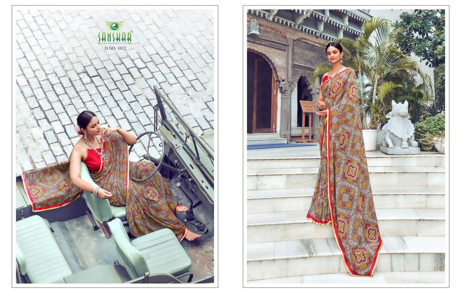 Brand :- Sanskar Tex Print CATLOUGE- BANDHEJ Fabric- Bubble Georgette with fancy border Qty- 12 dis RATE - 515₹ _Special Bubble Georgette Catalogue!!_ |