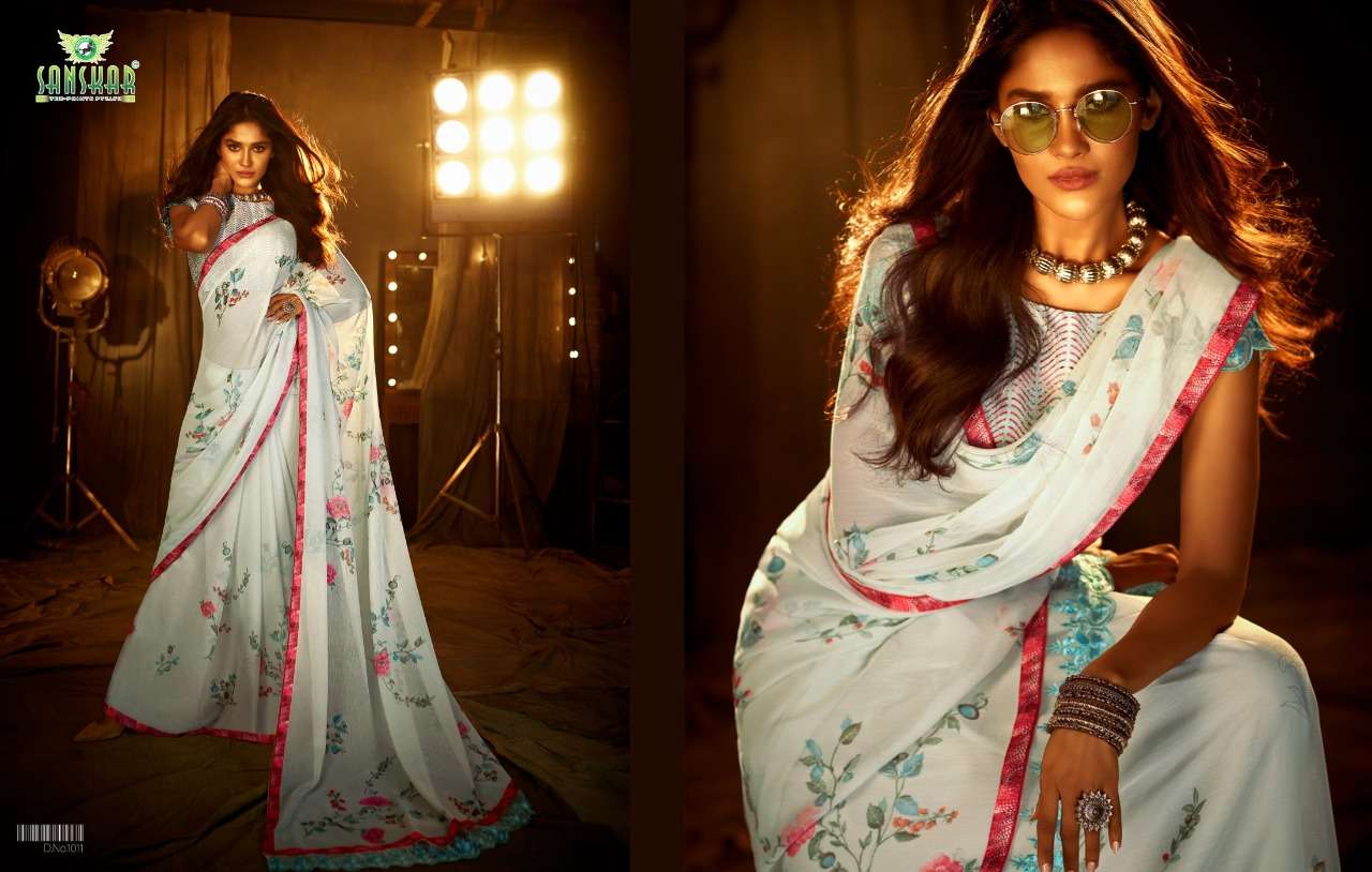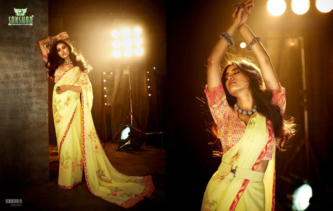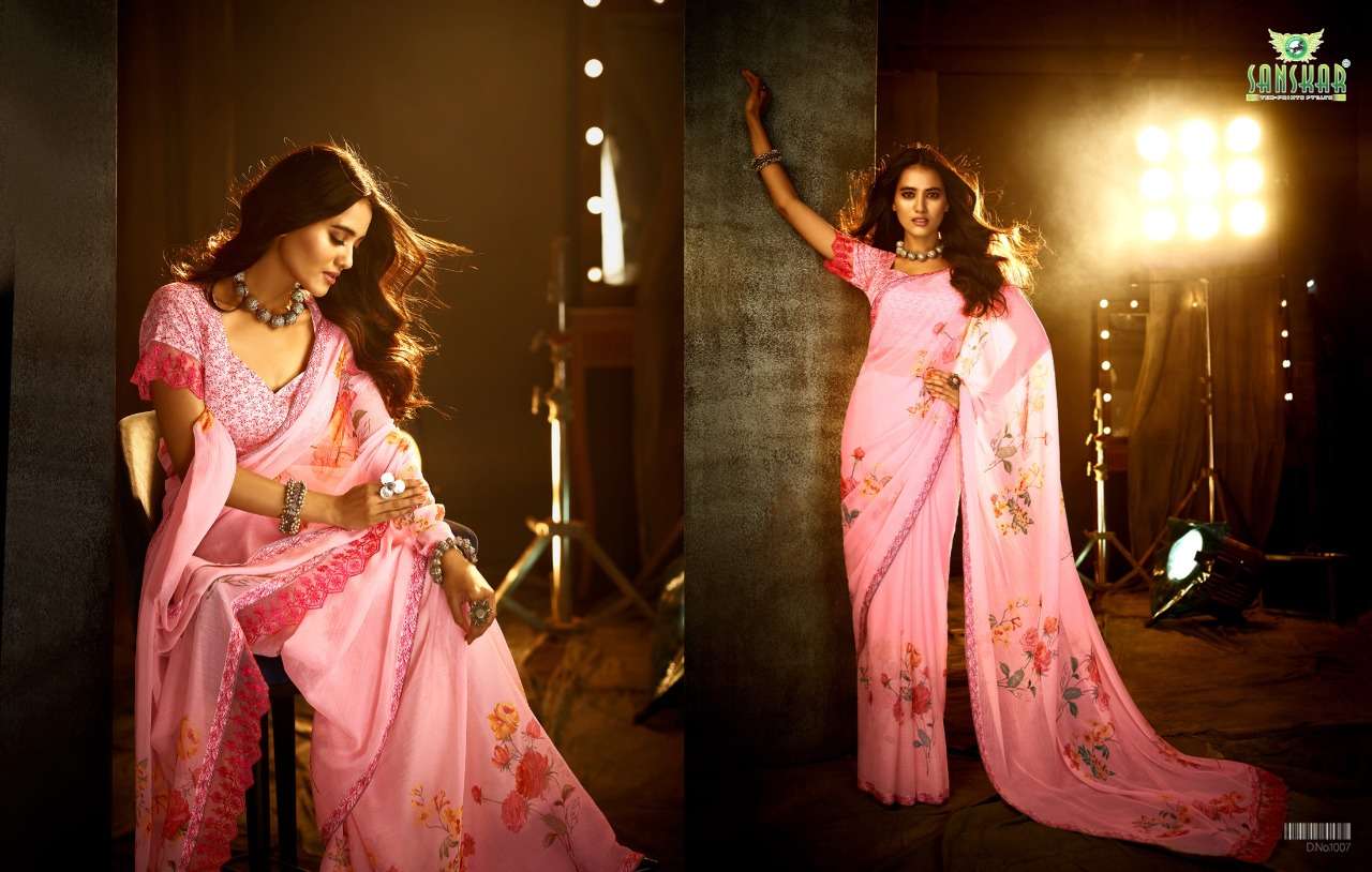 New launching Sanskar tex prints pvt. ltd. CATLOUGE- CRAZY Fabric- pure chiffon embroidery work blouse with digital border Qty- 12 dis RATE - 595₹ _Special fany pure chiffon Catalogue!!_ Ready to Dispatch |