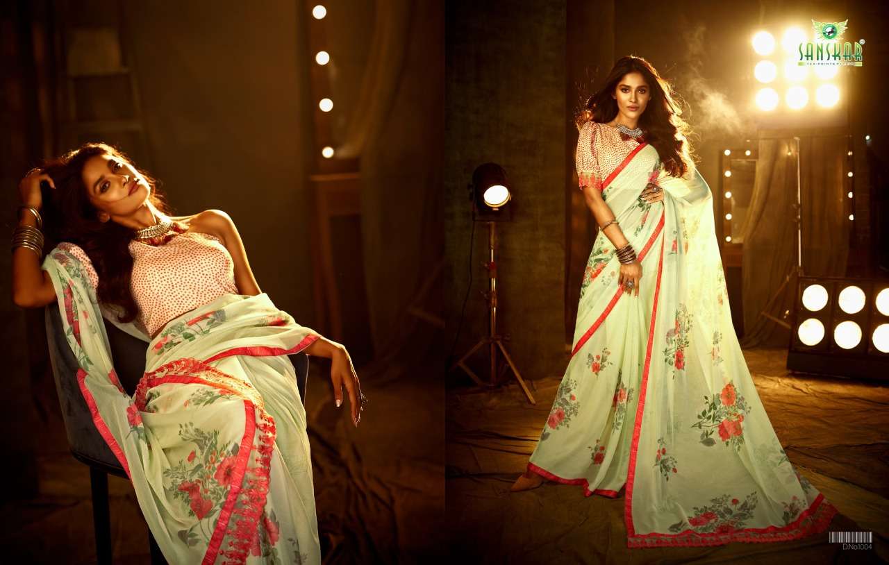 sanskar tex print crazy pure chiffon fancy sarees wholesaler