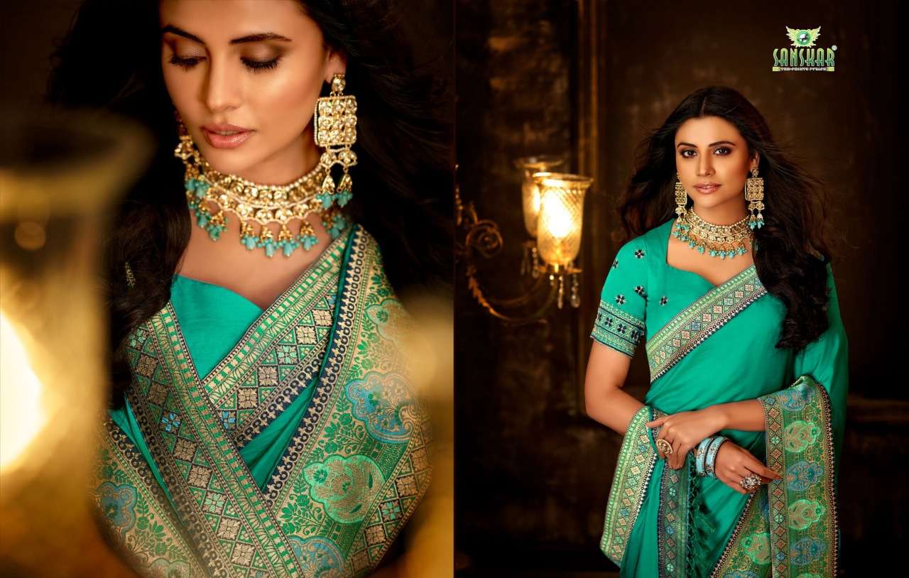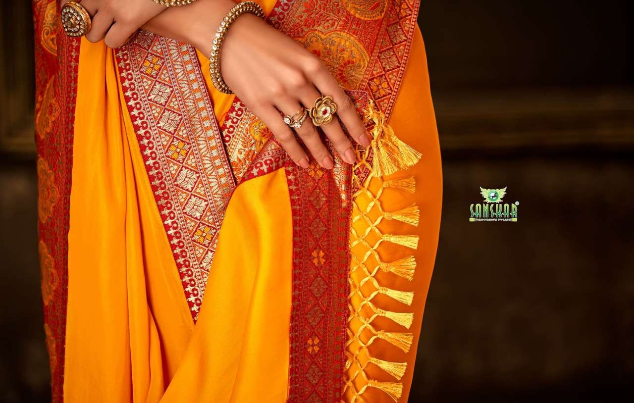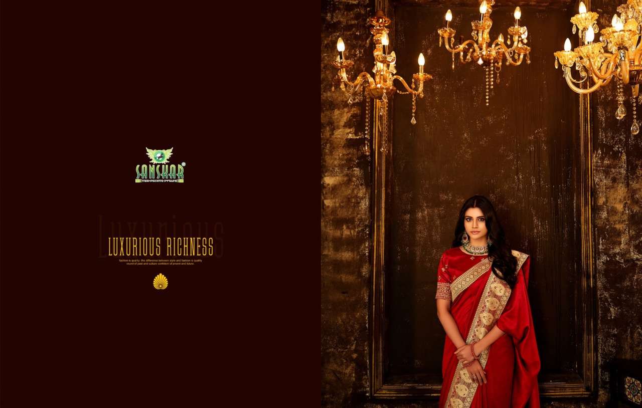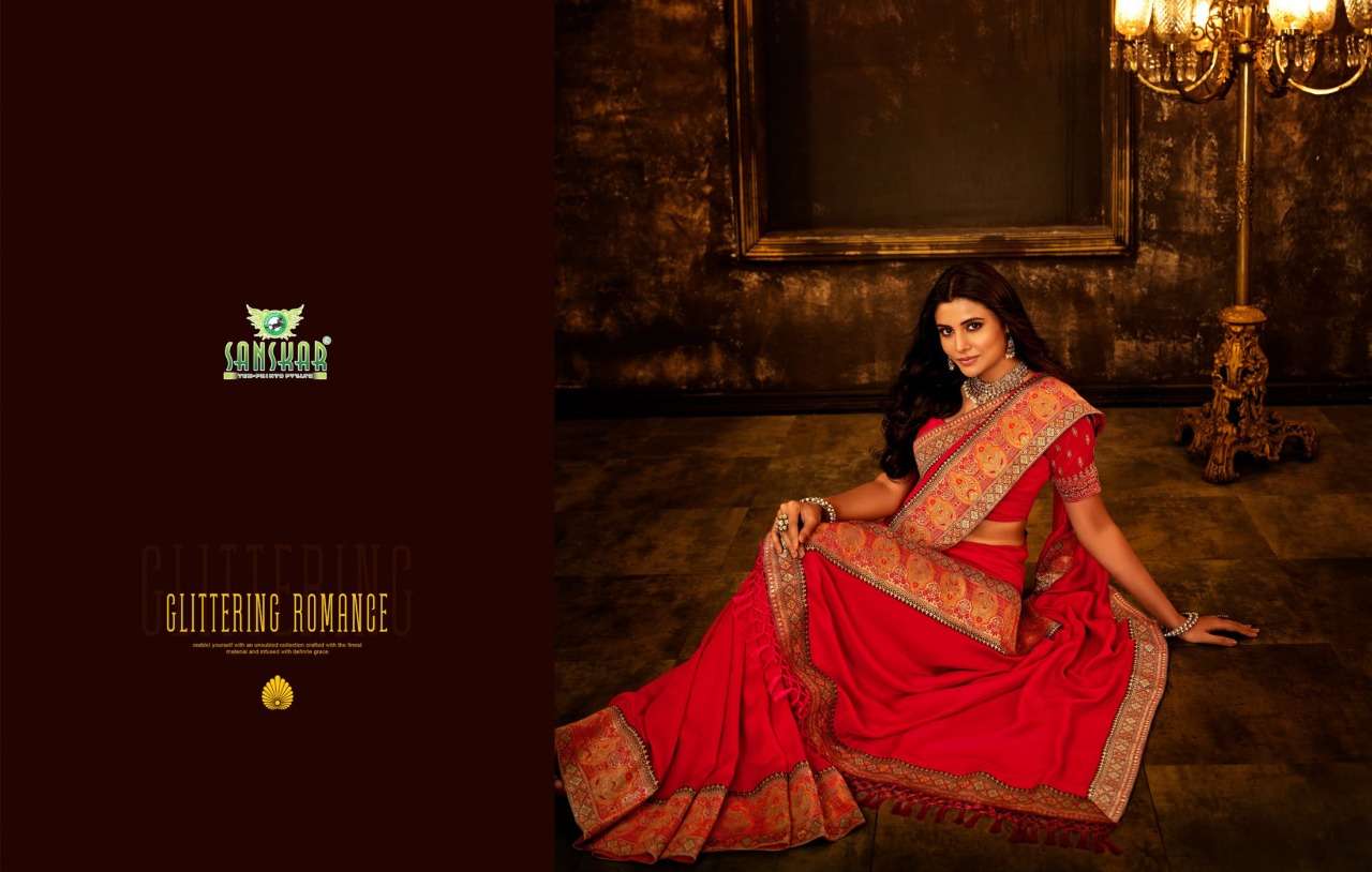 Sanskar Tex Prints New launching CATLOUGE- EK KHWAAB Fabric- blooming vichitra with full heavy rich pallu border Qty- 8 dis RATE -1040 ₹ _Special blooming vichitra Catalogue!!_ |
