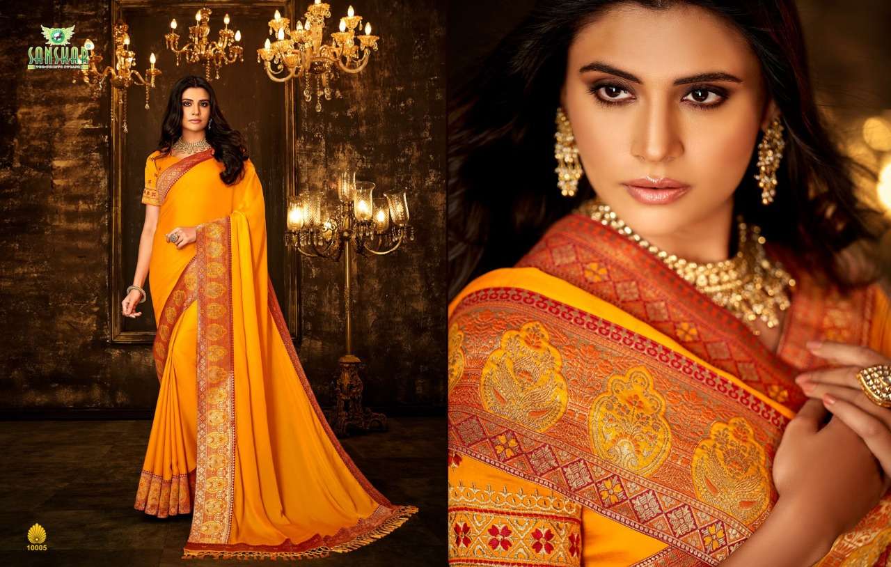 sanskar tex print ek khwaab blooming vichitra with full heavy rich pallu border saris wholesaler in surat