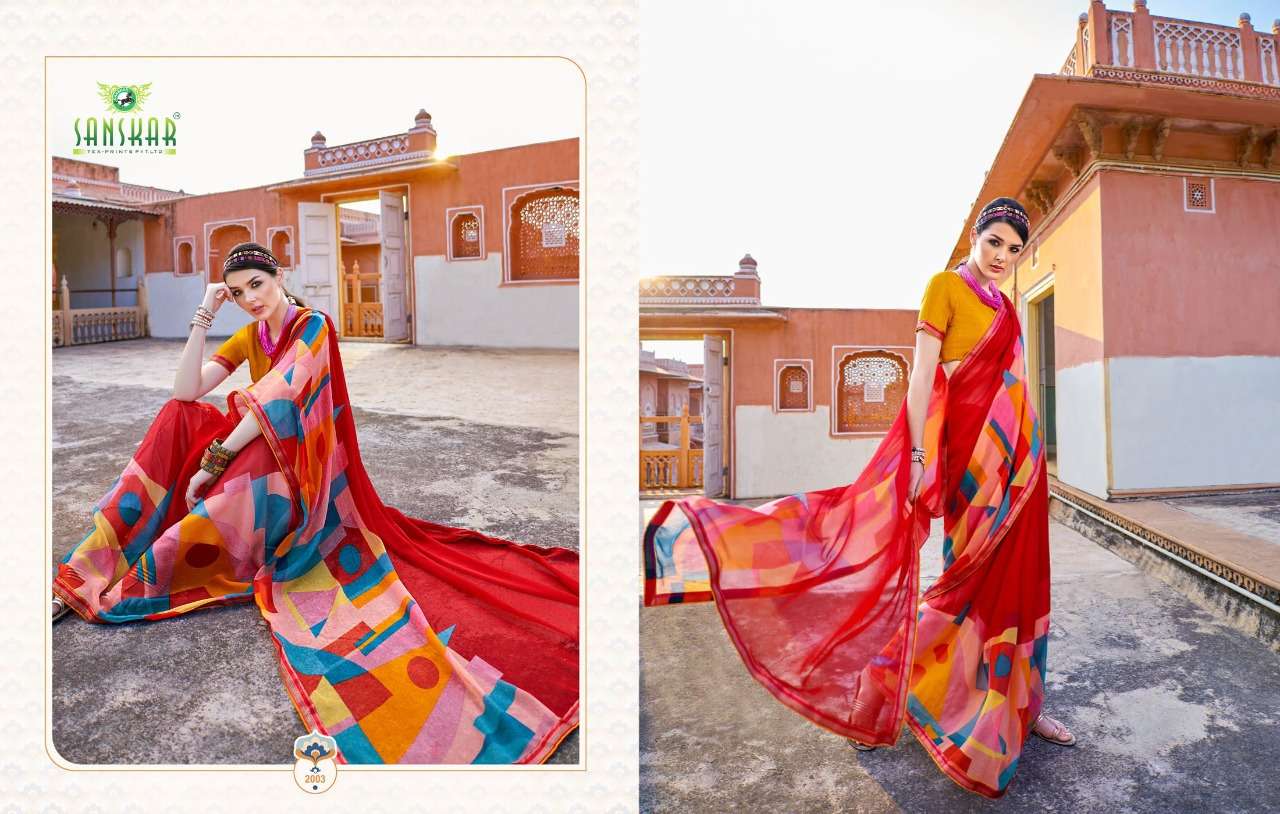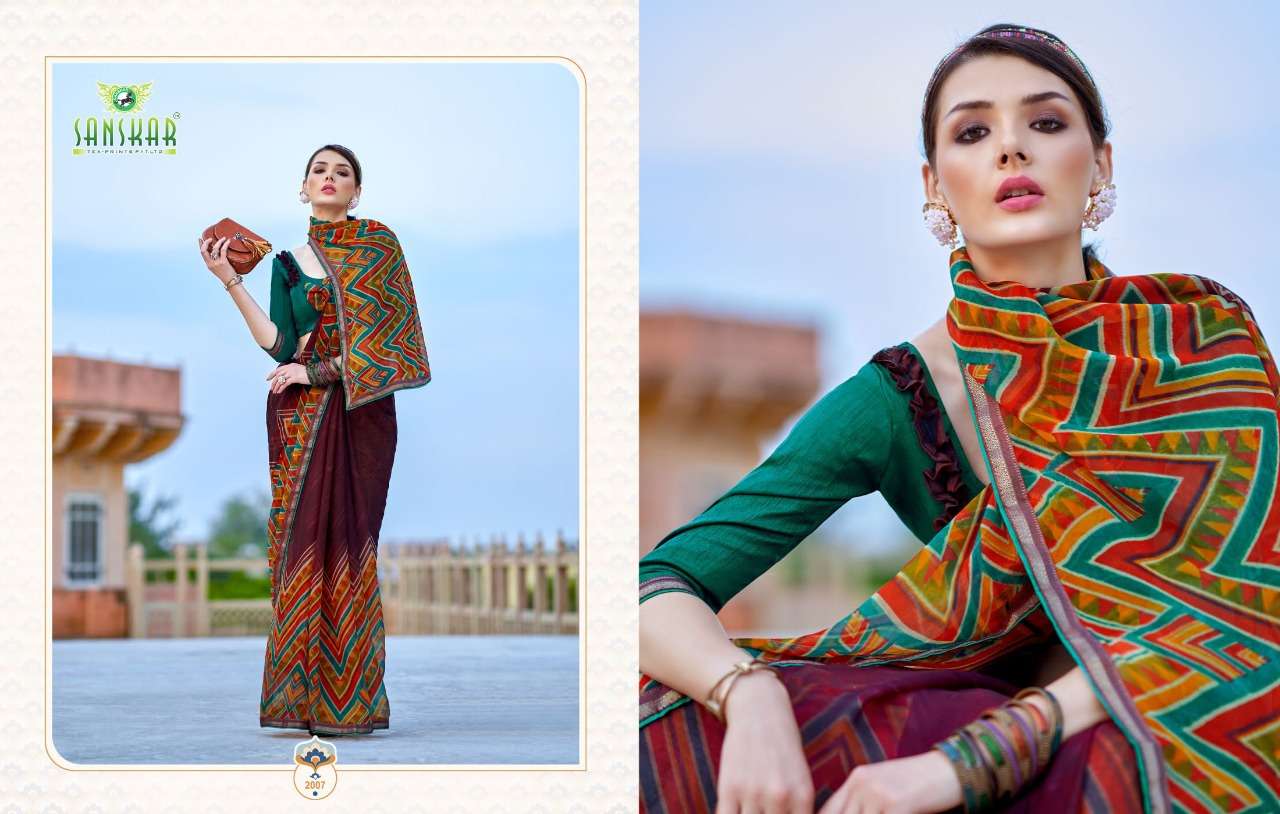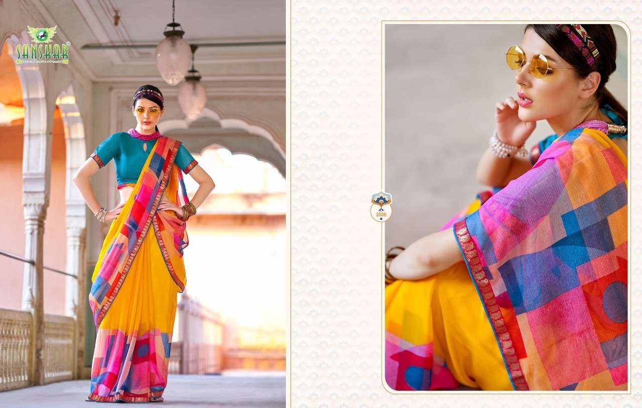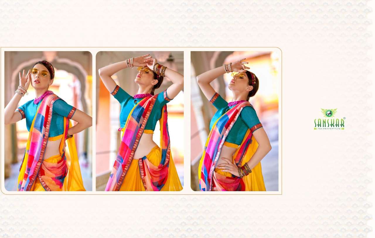 sanskar tex print shehnai chiffon saree with border at best rate