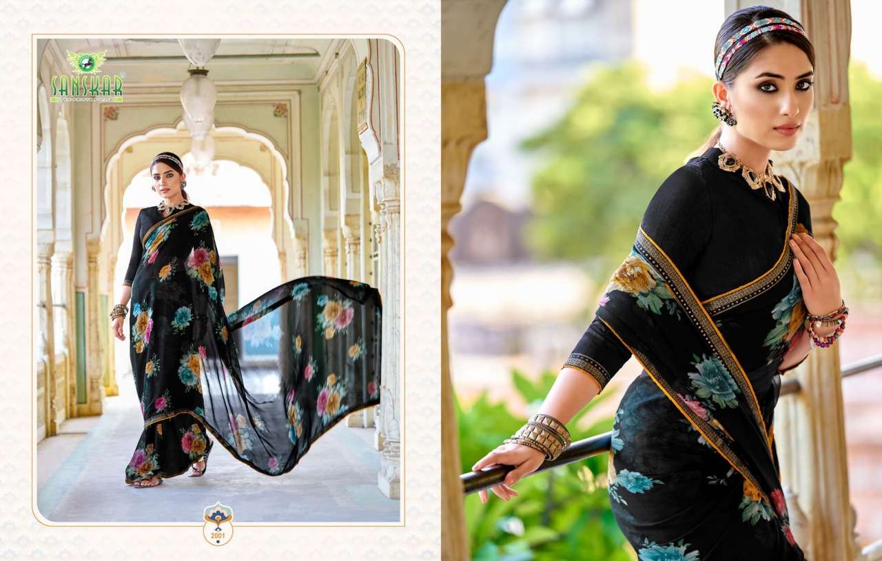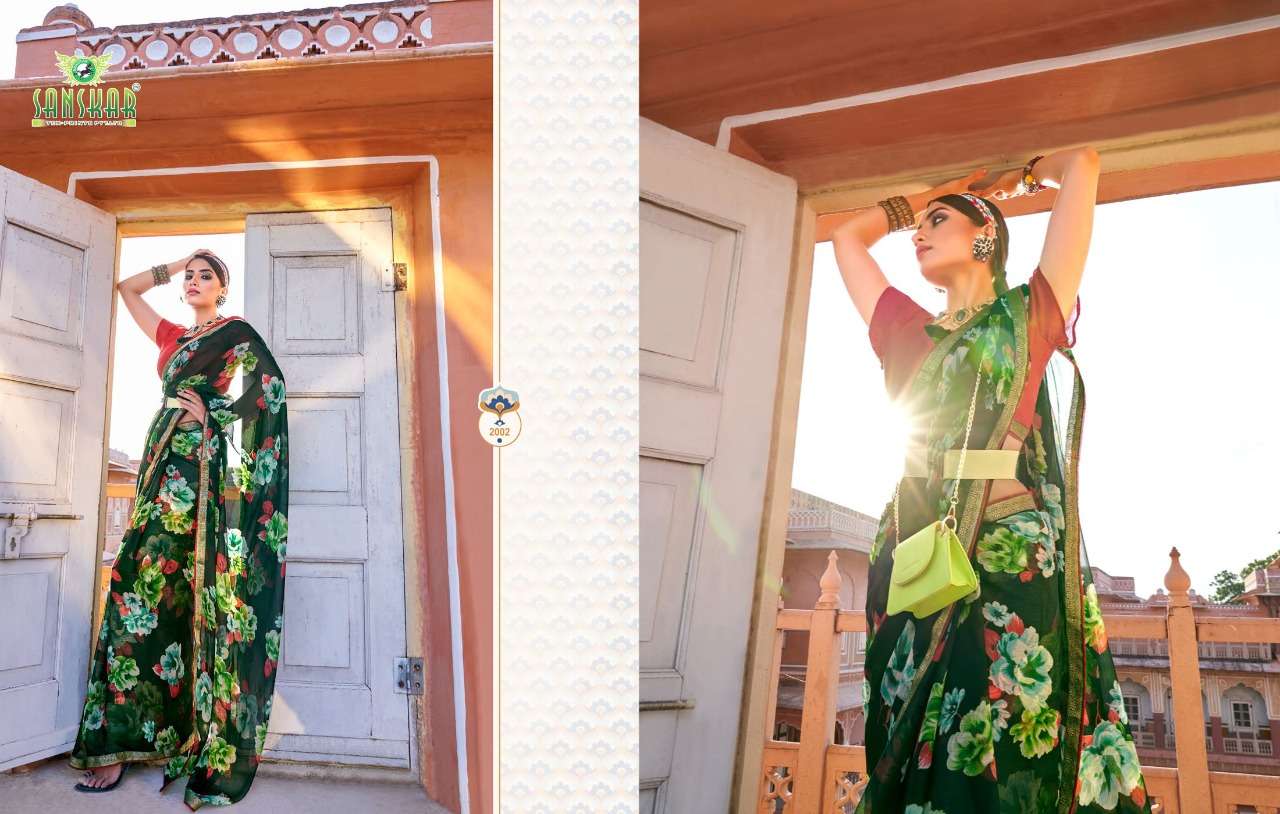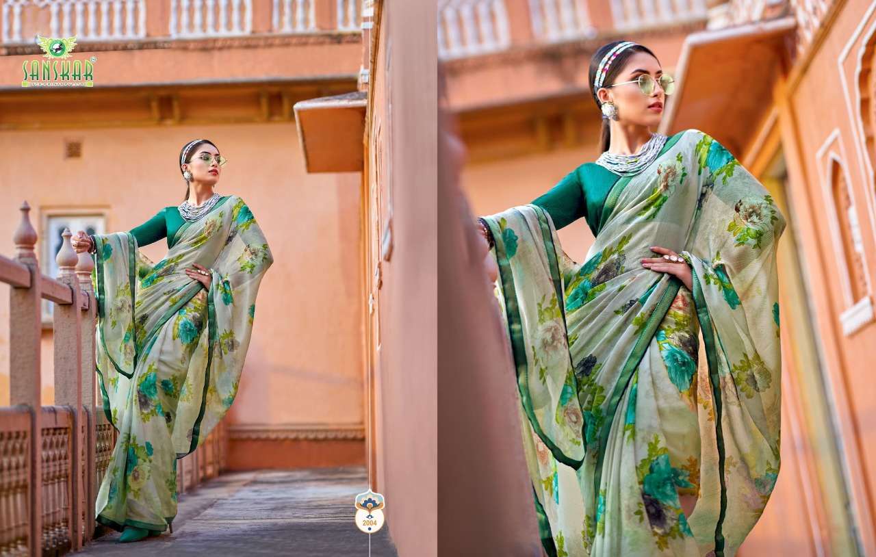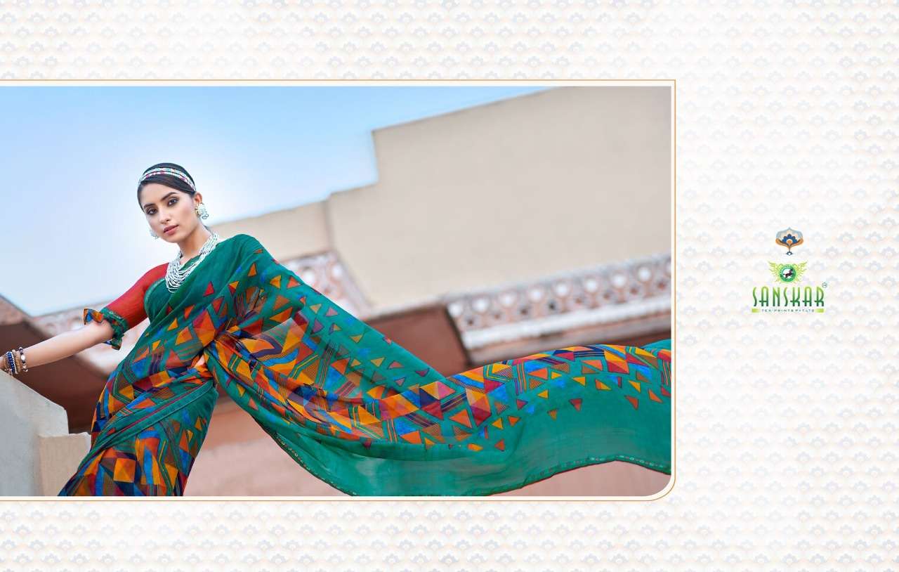 sanskar tex print shehnai chiffon saree with border at best rate