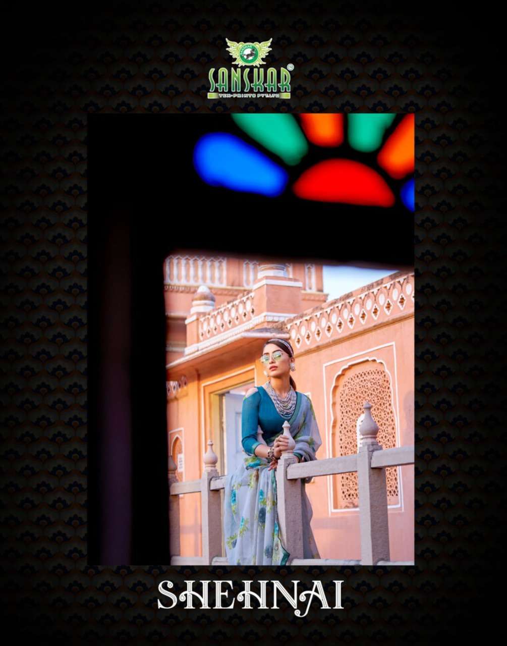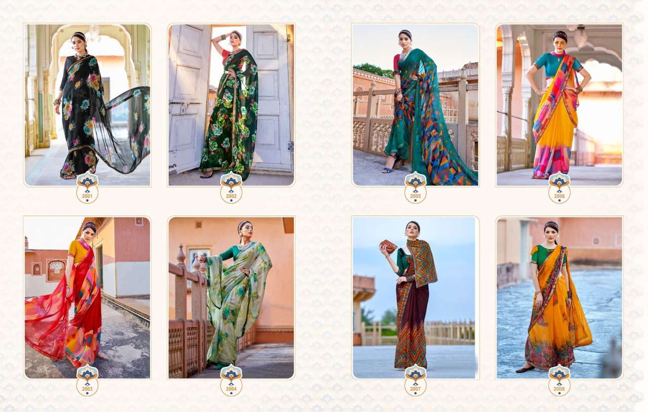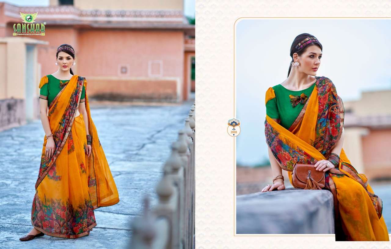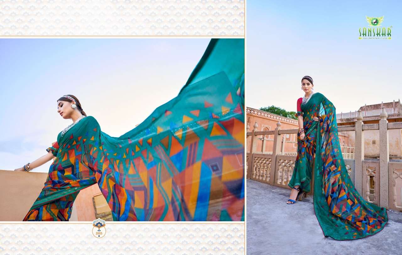 sanskar tex print shehnai chiffon saree with border at best rate