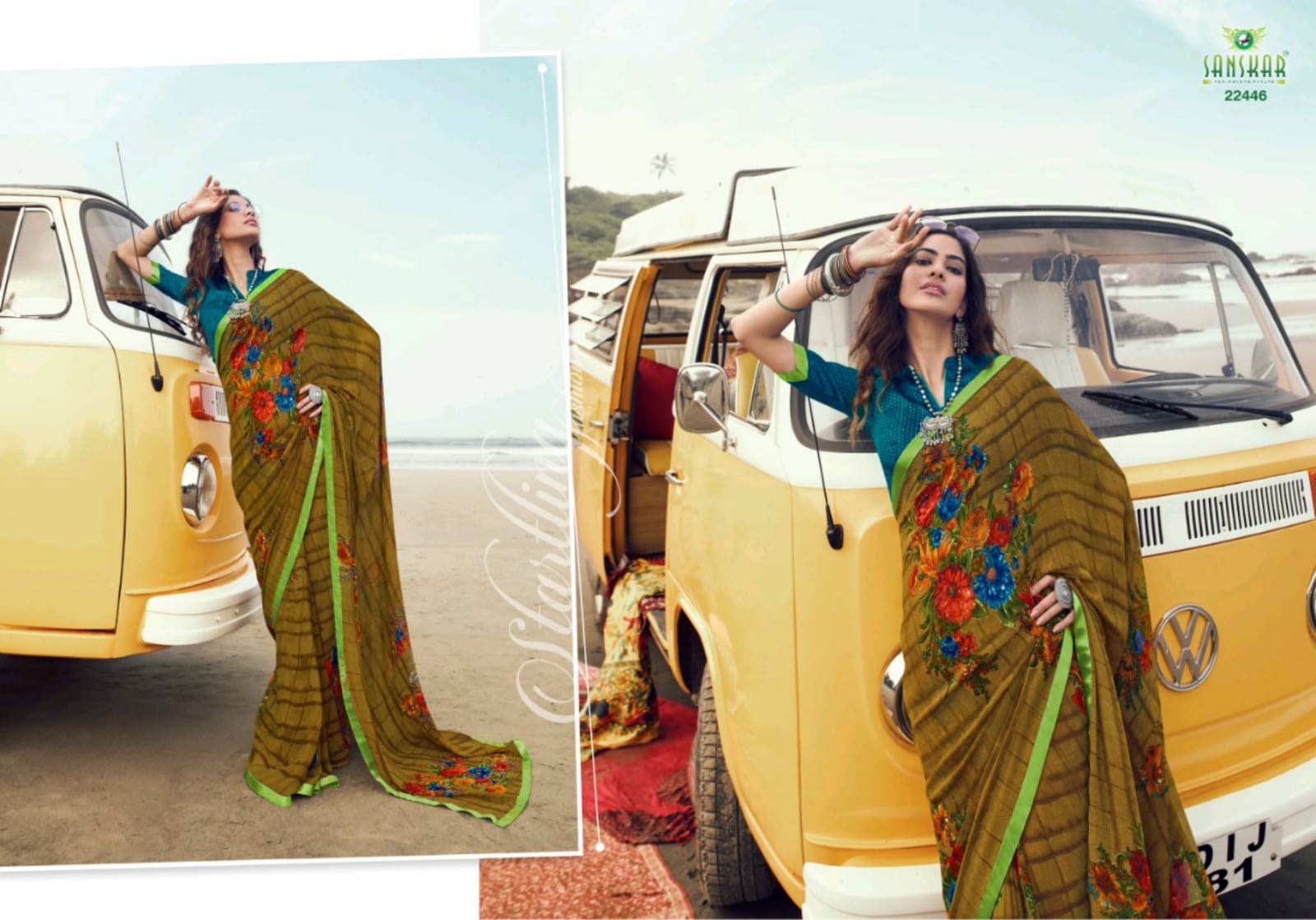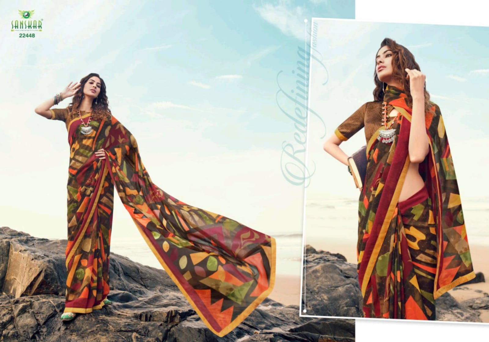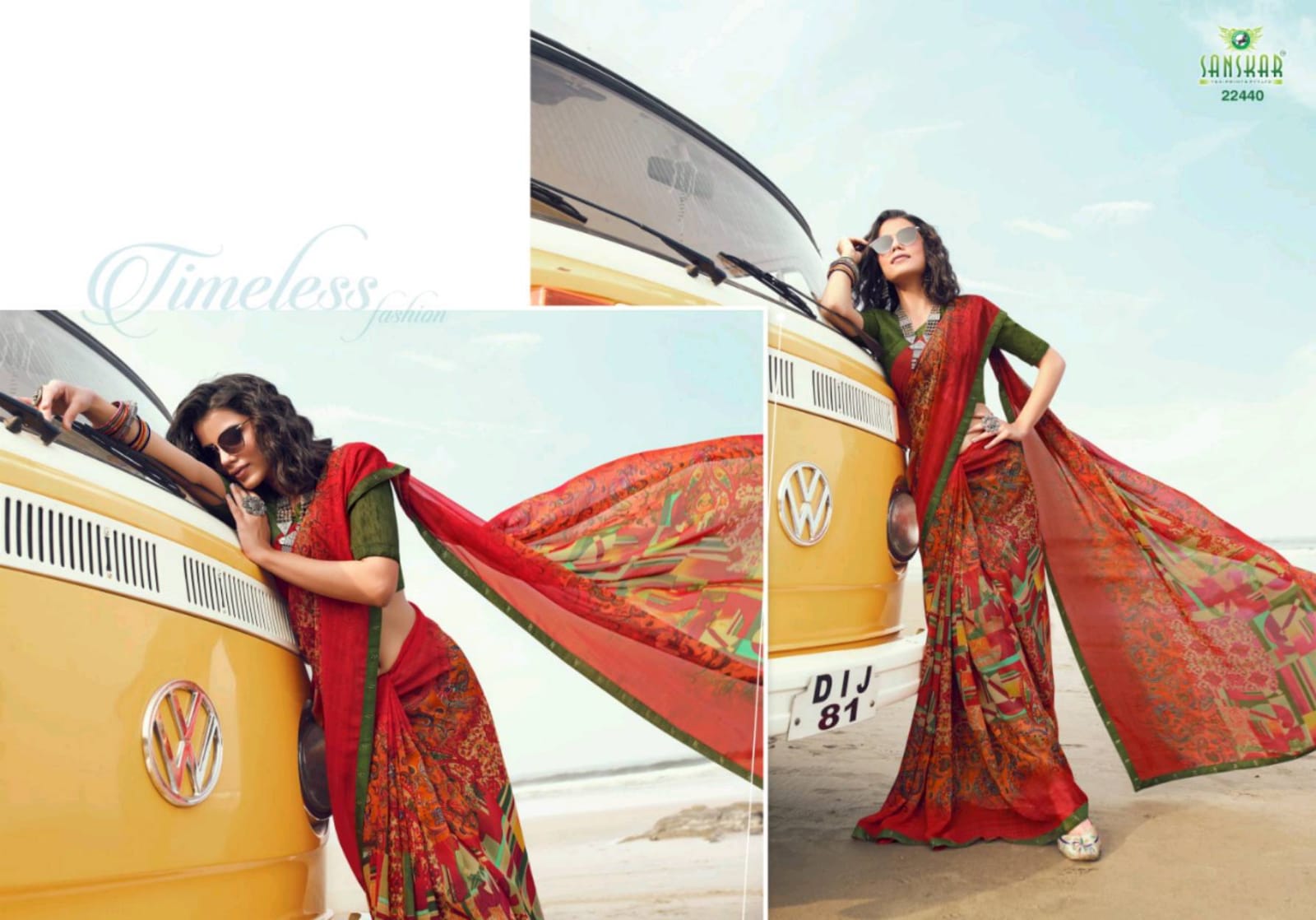 Sanskar Tex Print Shree Vol 7 Georgette Casual Wear Synthetic Saree At Lowest Rate