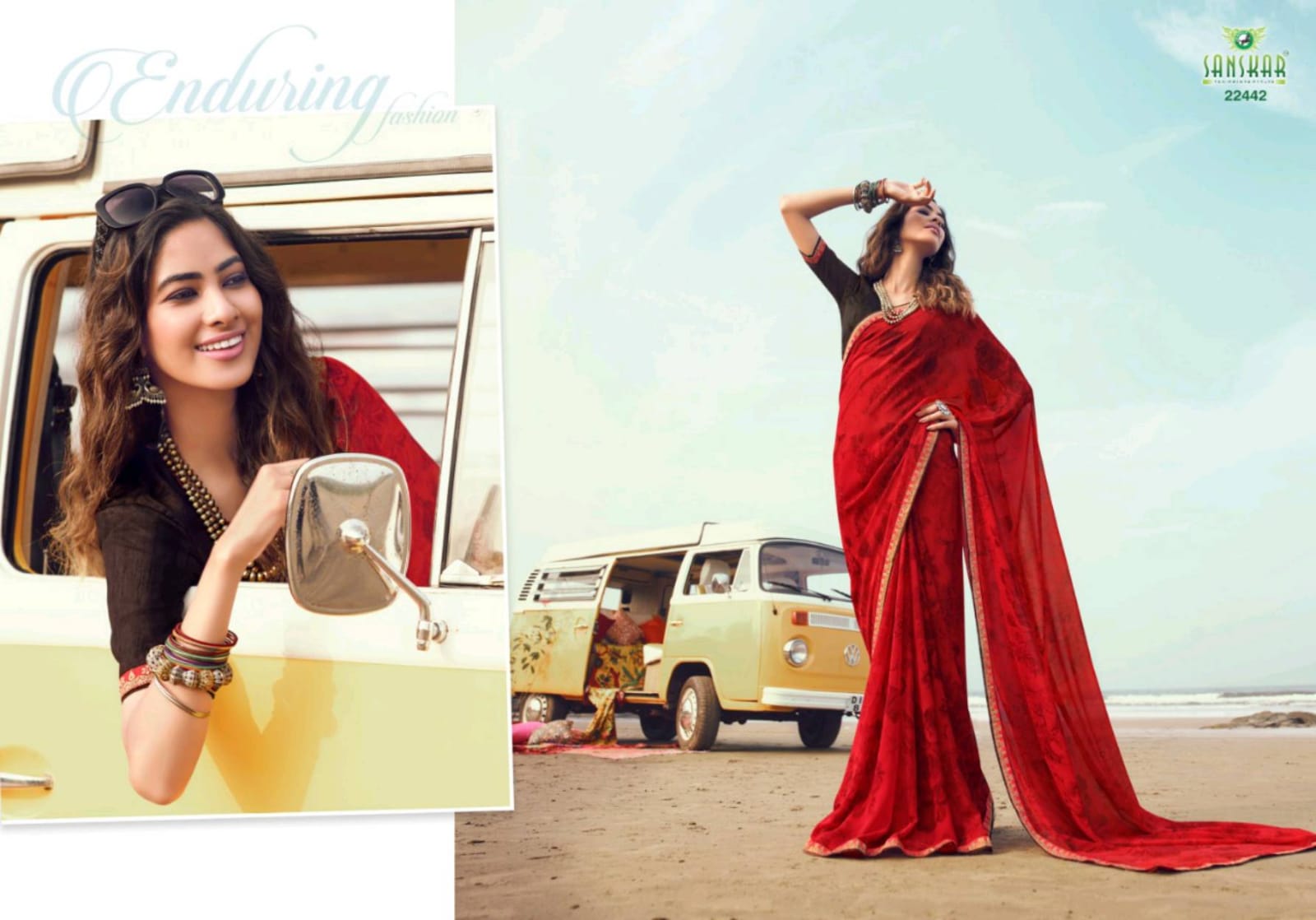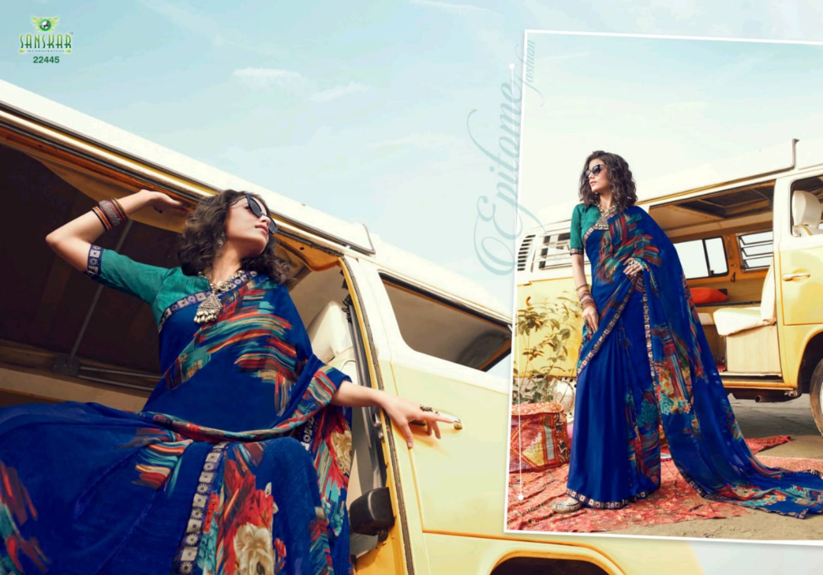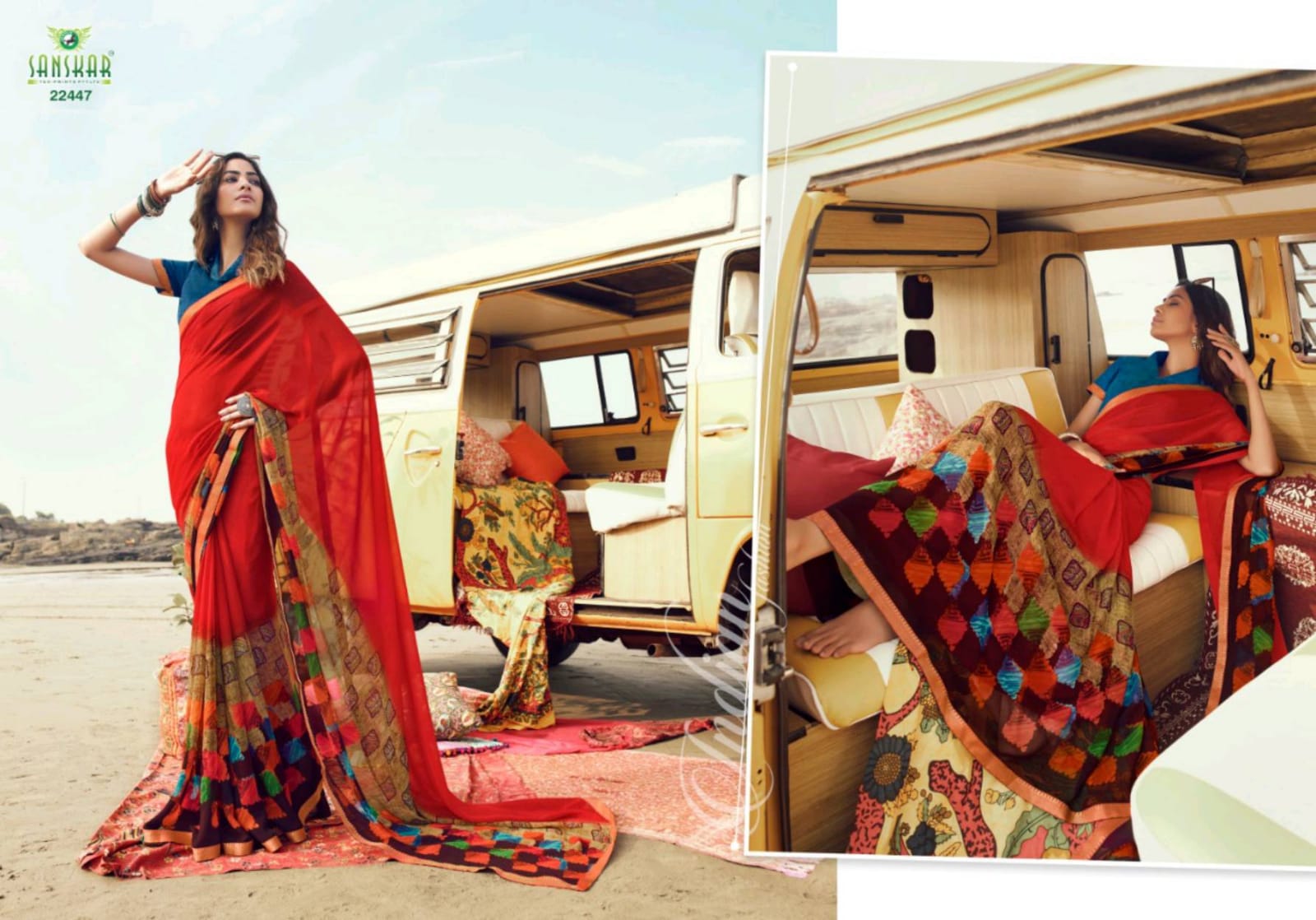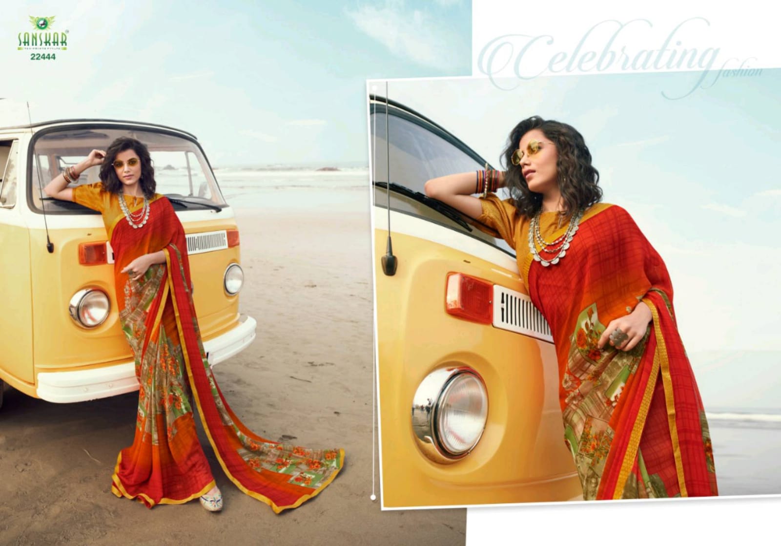 Sanskar Tex Print Shree Vol 7 Georgette Casual Wear Synthetic Saree At Lowest Rate