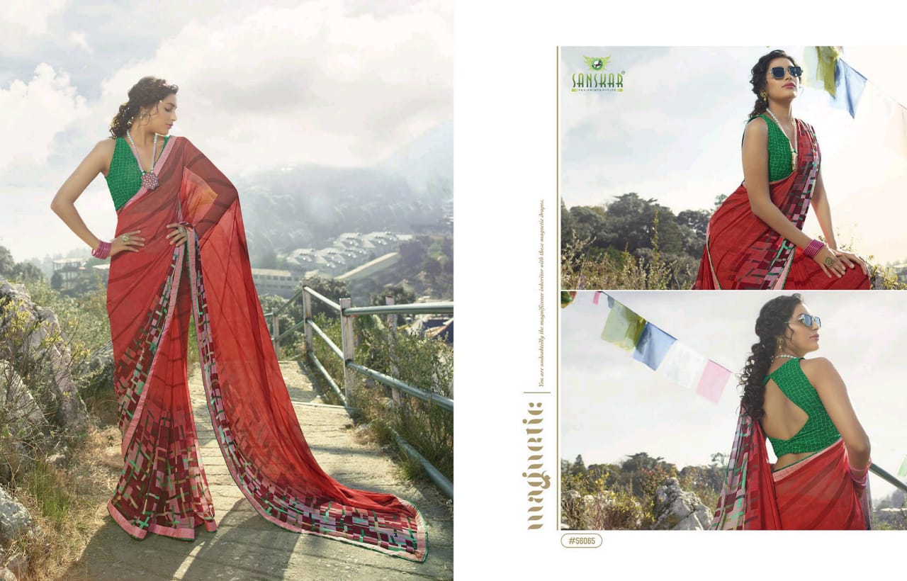 Sanskar Tex Print Suhane Pal Vol 23 Georgette With Fancy Border Synthetic Saree Exporter