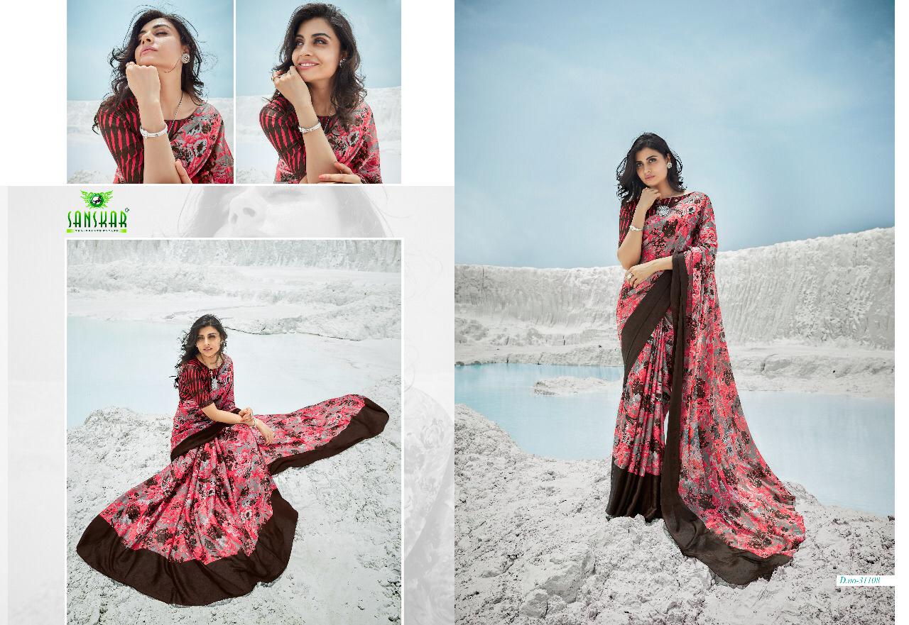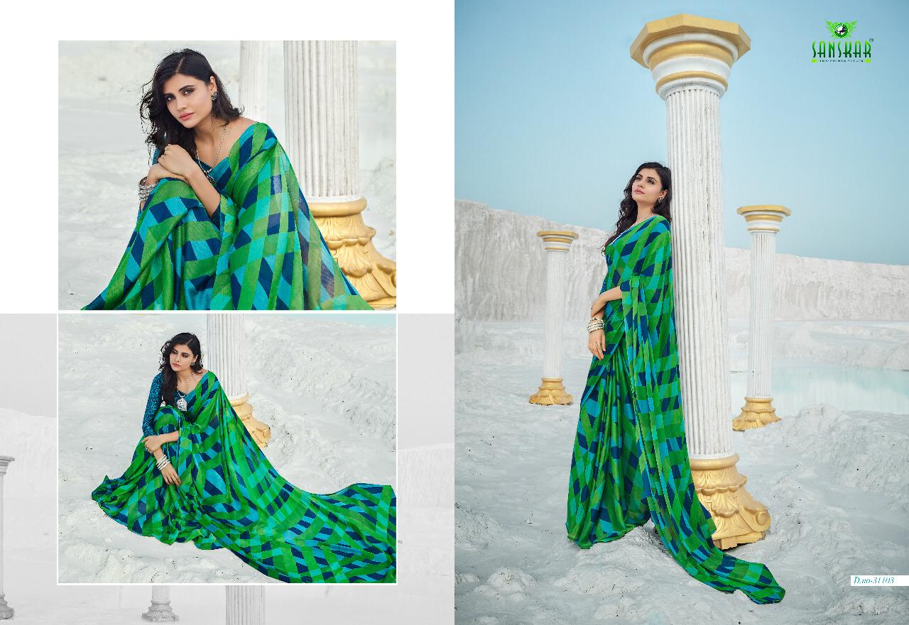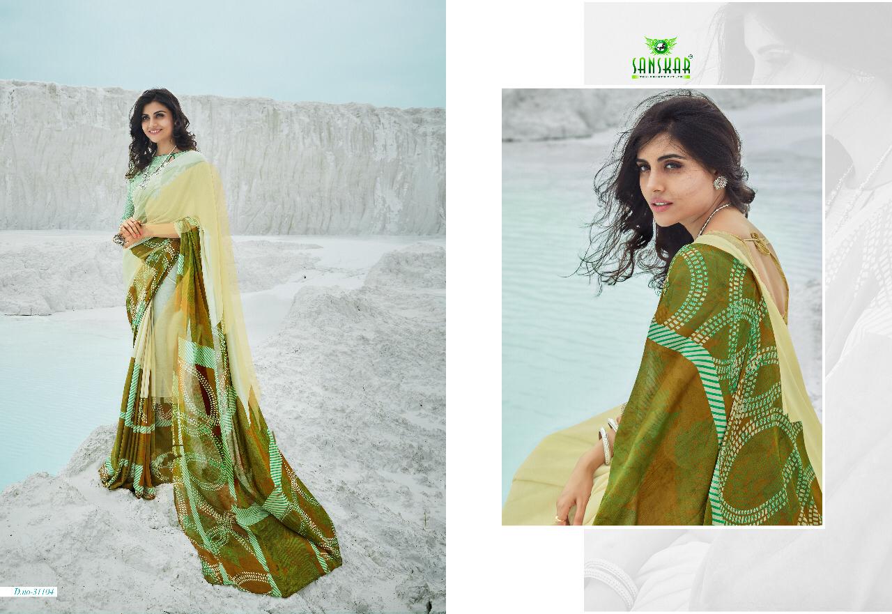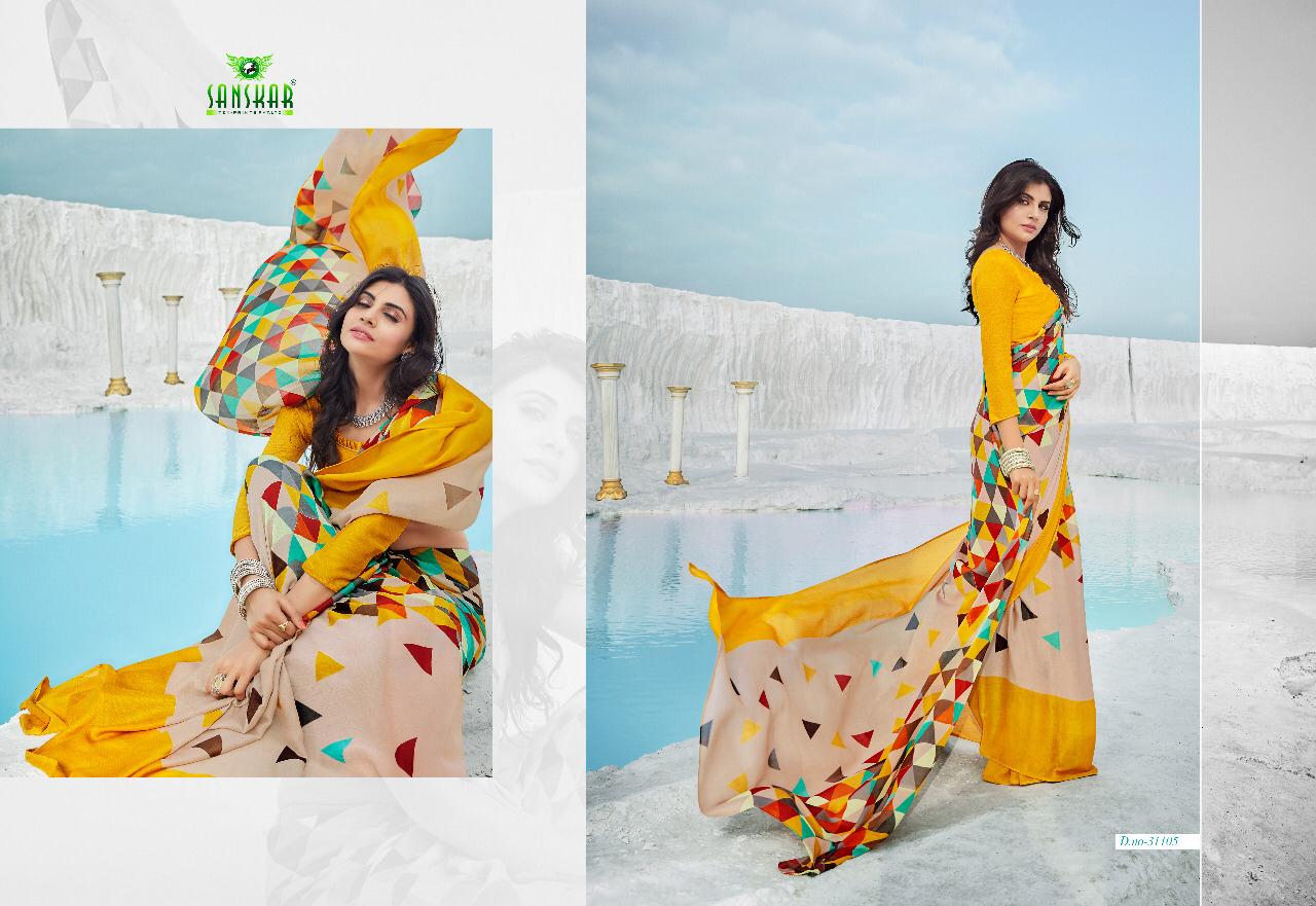 Sanskar Tex Print Sunehri Moss Chiffon Casual Wear Saree Wholesale Exporter