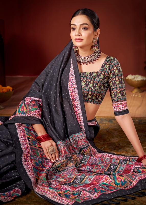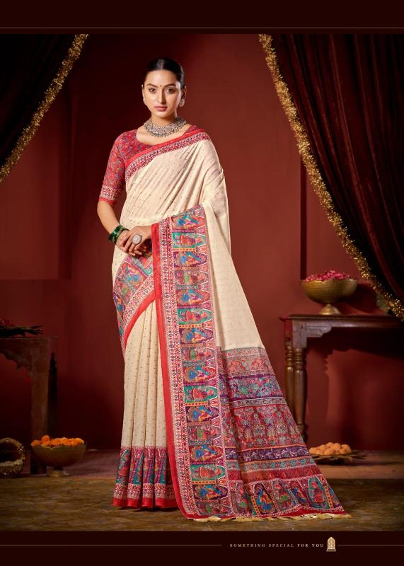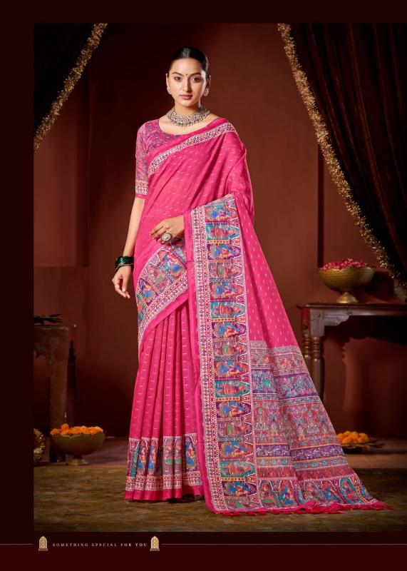 SANSKAR TEX PRINTS PVT LTD CATLOUGE : ALANKARANA VOL 5 Fabric- 🪡Sameeti Cotton fab. with jarri butti & fancy print & blouse 🪡 Qty- 4 colour matching(Designs Available) RATE - 725₹ |