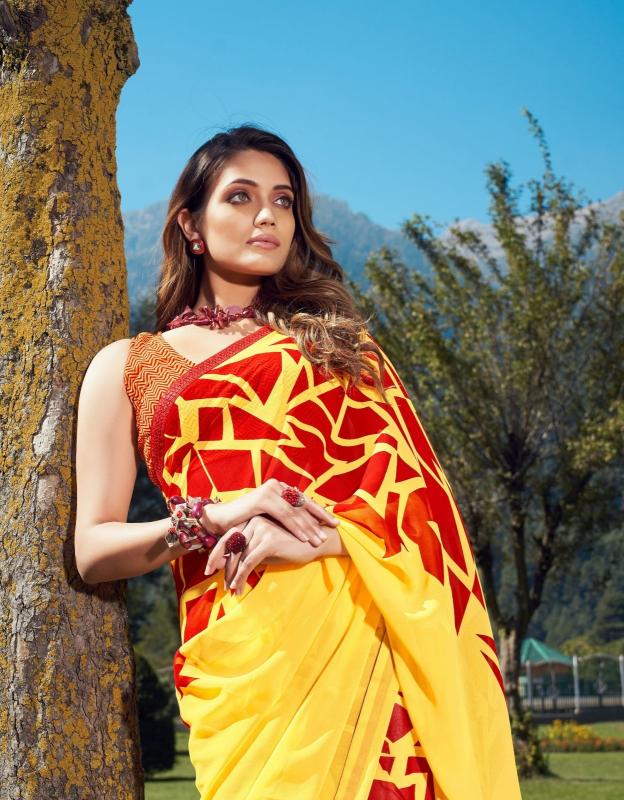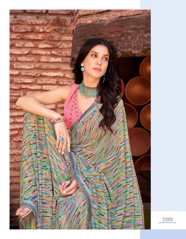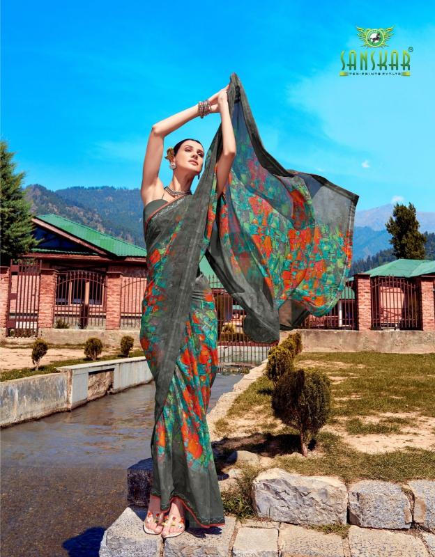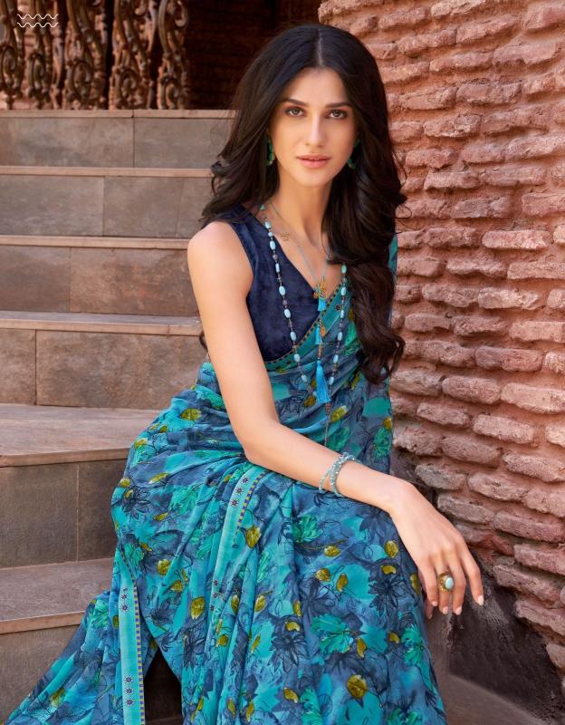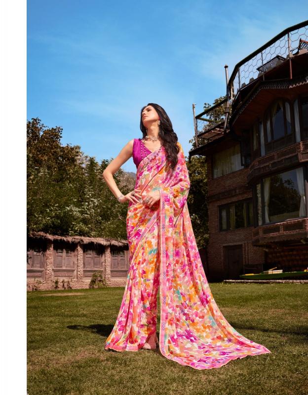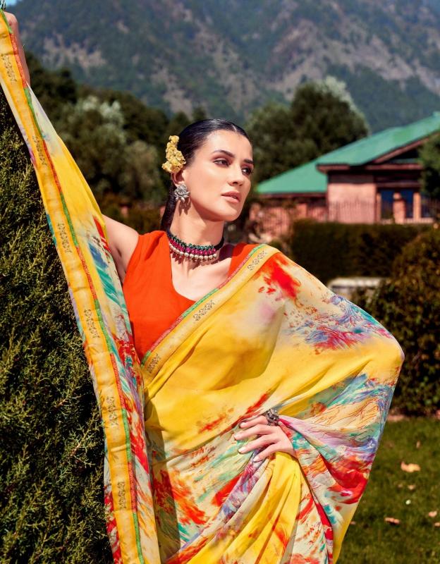 Sanskar tex prints pvt. ltd. CATLOUGE-ISHITA Fabric- pure weightless with fancy digital print border & blouse Qty- 8 Design RATE - 585₹ |