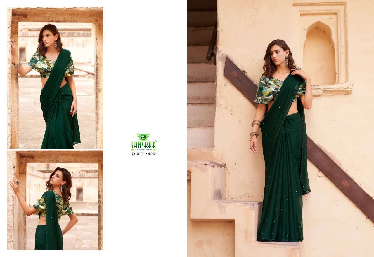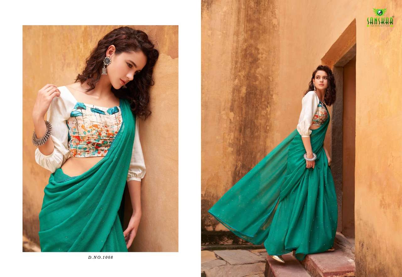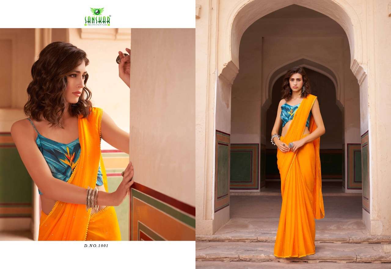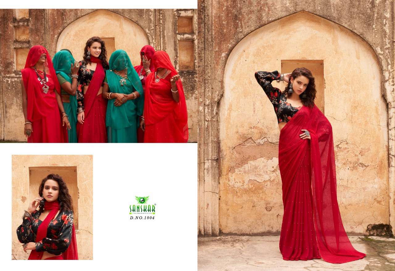 sanskar tex prints manchali chiffon saree with work blouse at best rate