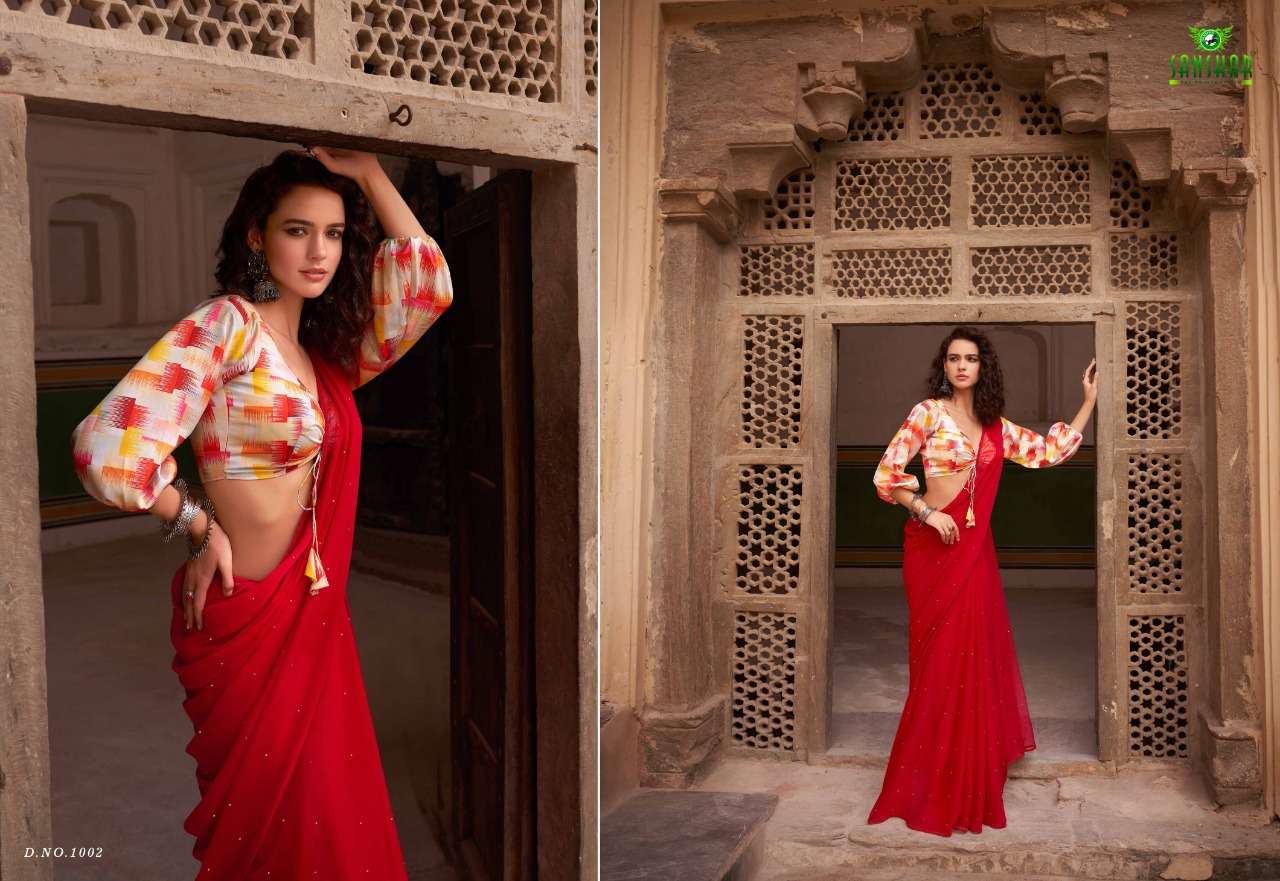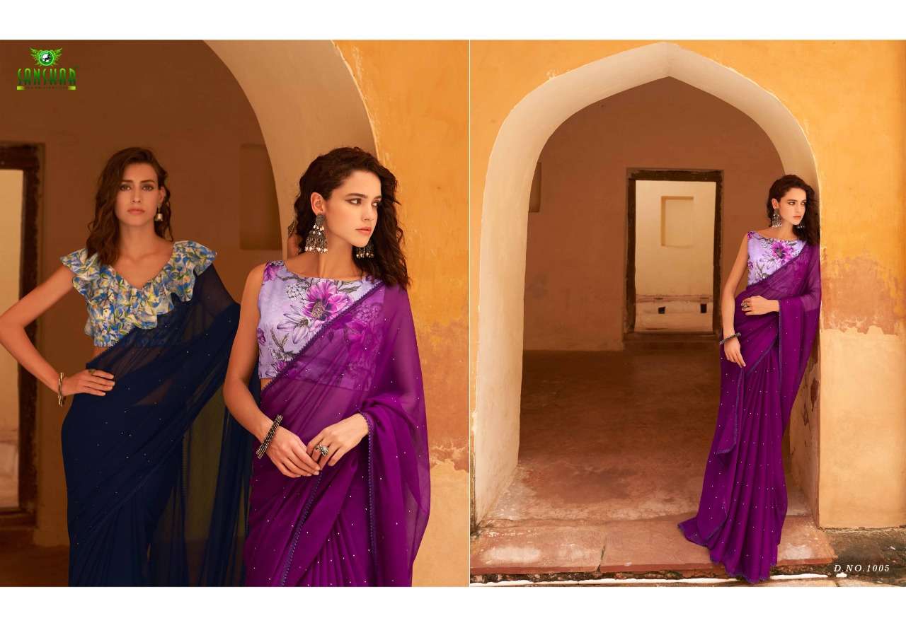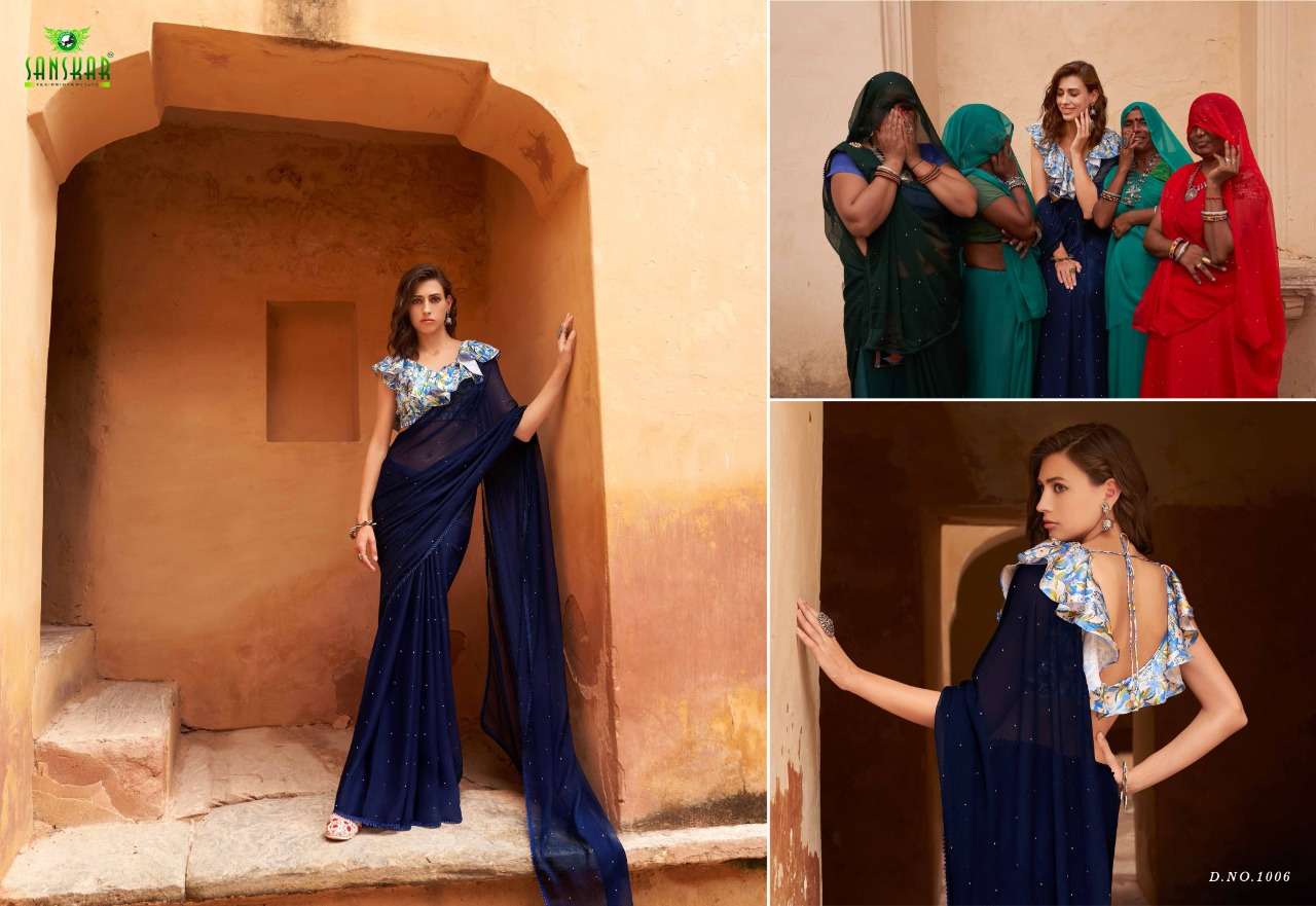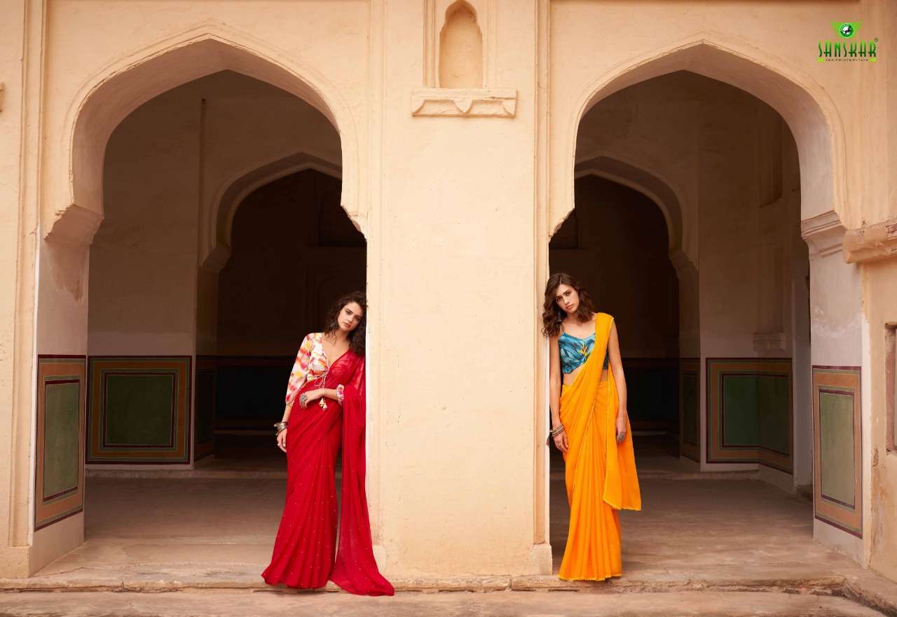 New launching Sanskar tex prints pvt. ltd. Catalouge-manchali Fabric—40 gram bember chiffon with hand work embroidered border & digtal blouse Qty—8 dig— Rate—645₹ special fany edition work catlouge |
