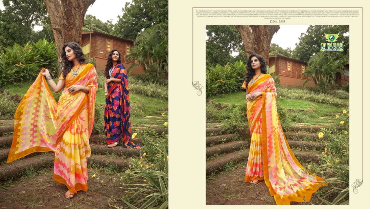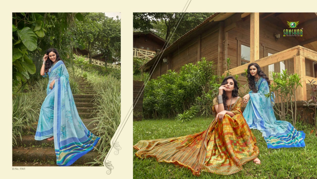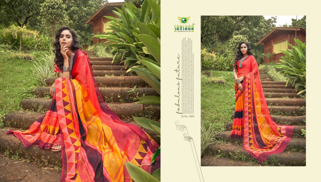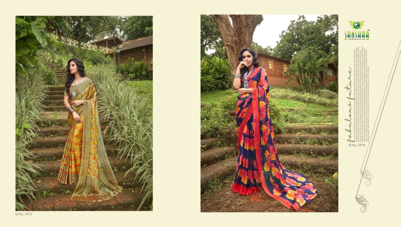 Sanskar Tex Prints Presents Fly Chiffon Synthetic Casual Wear Saree Collections