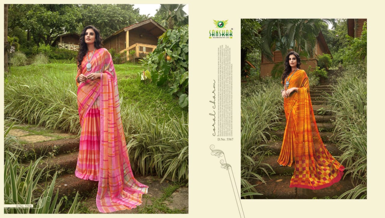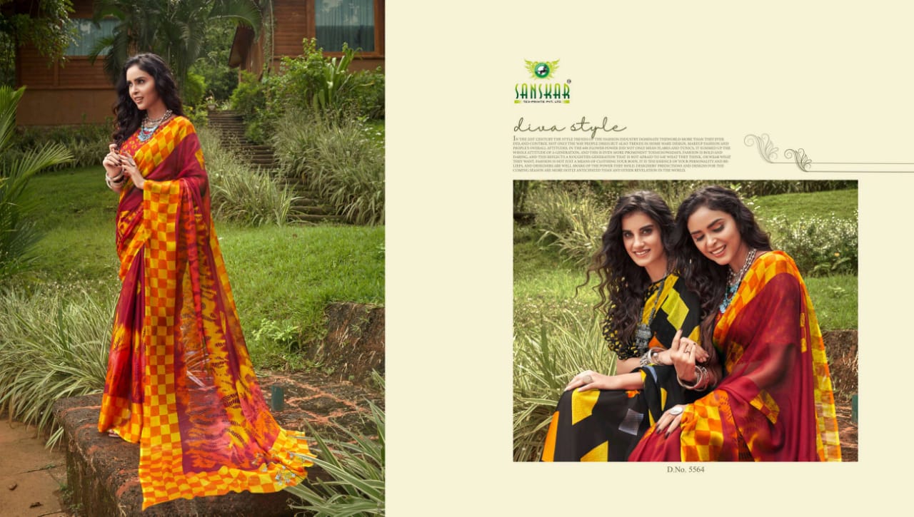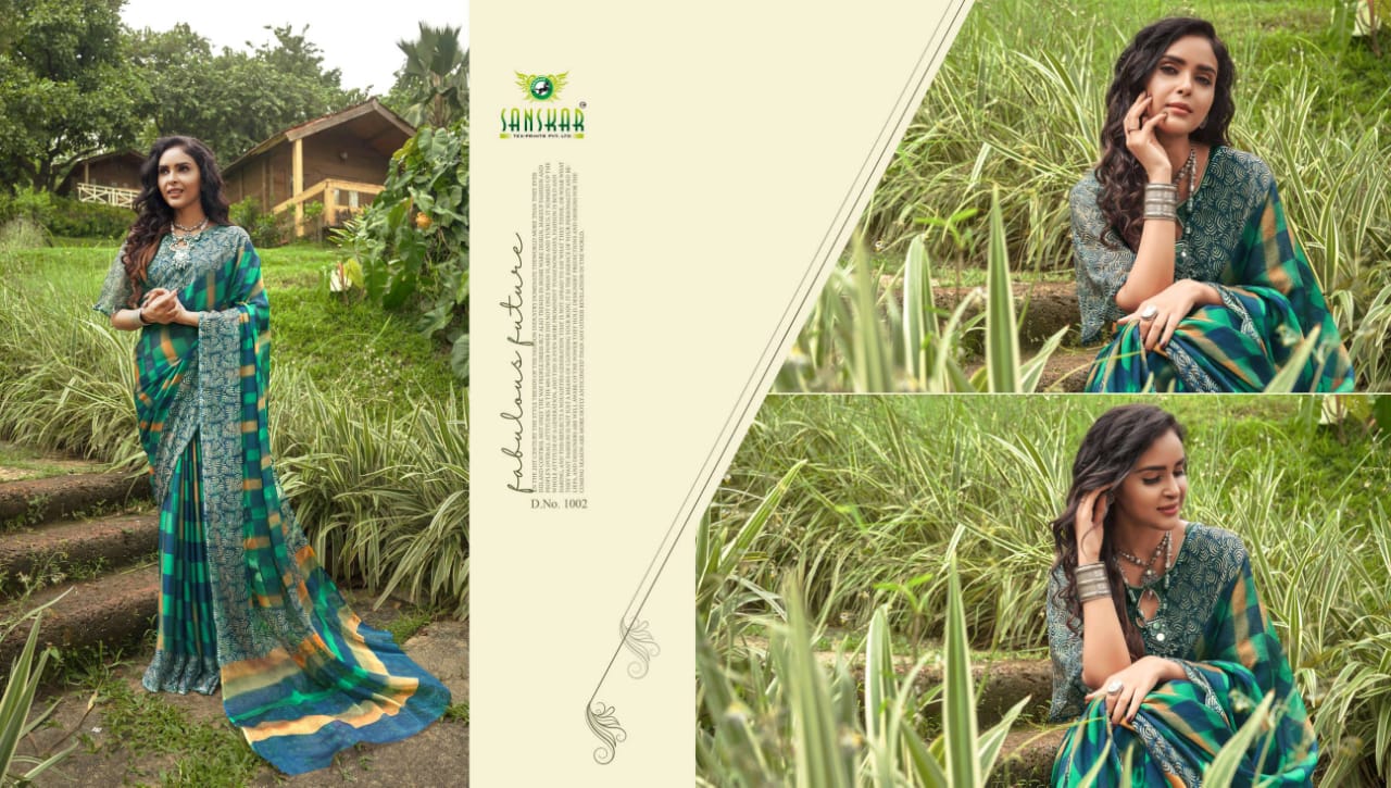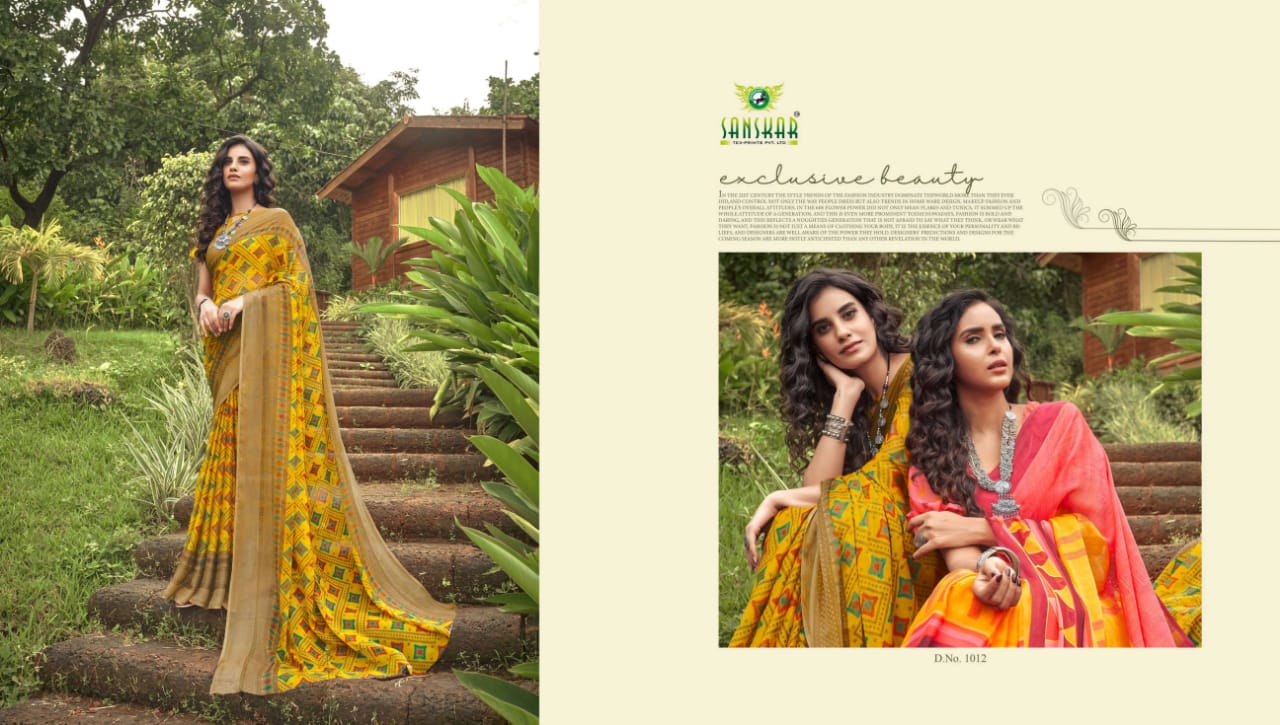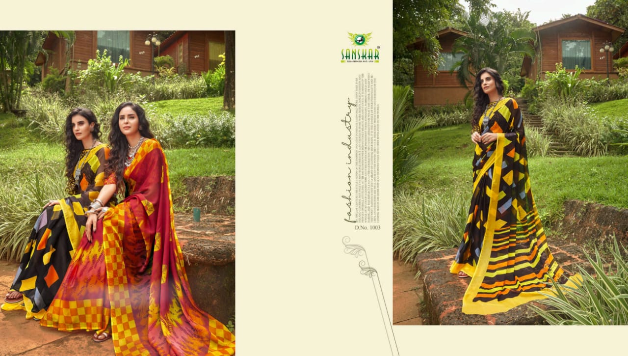 Sanskar Tex Prints Presents Fly Chiffon Synthetic Casual Wear Saree Collections