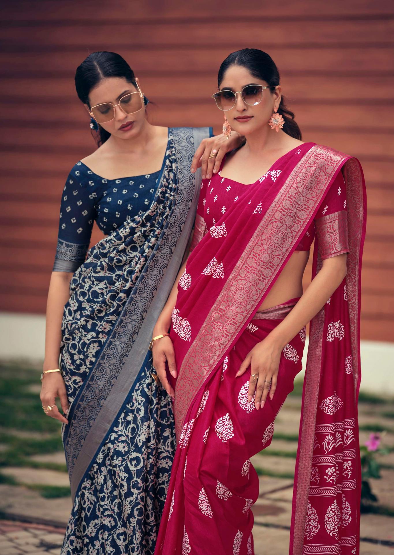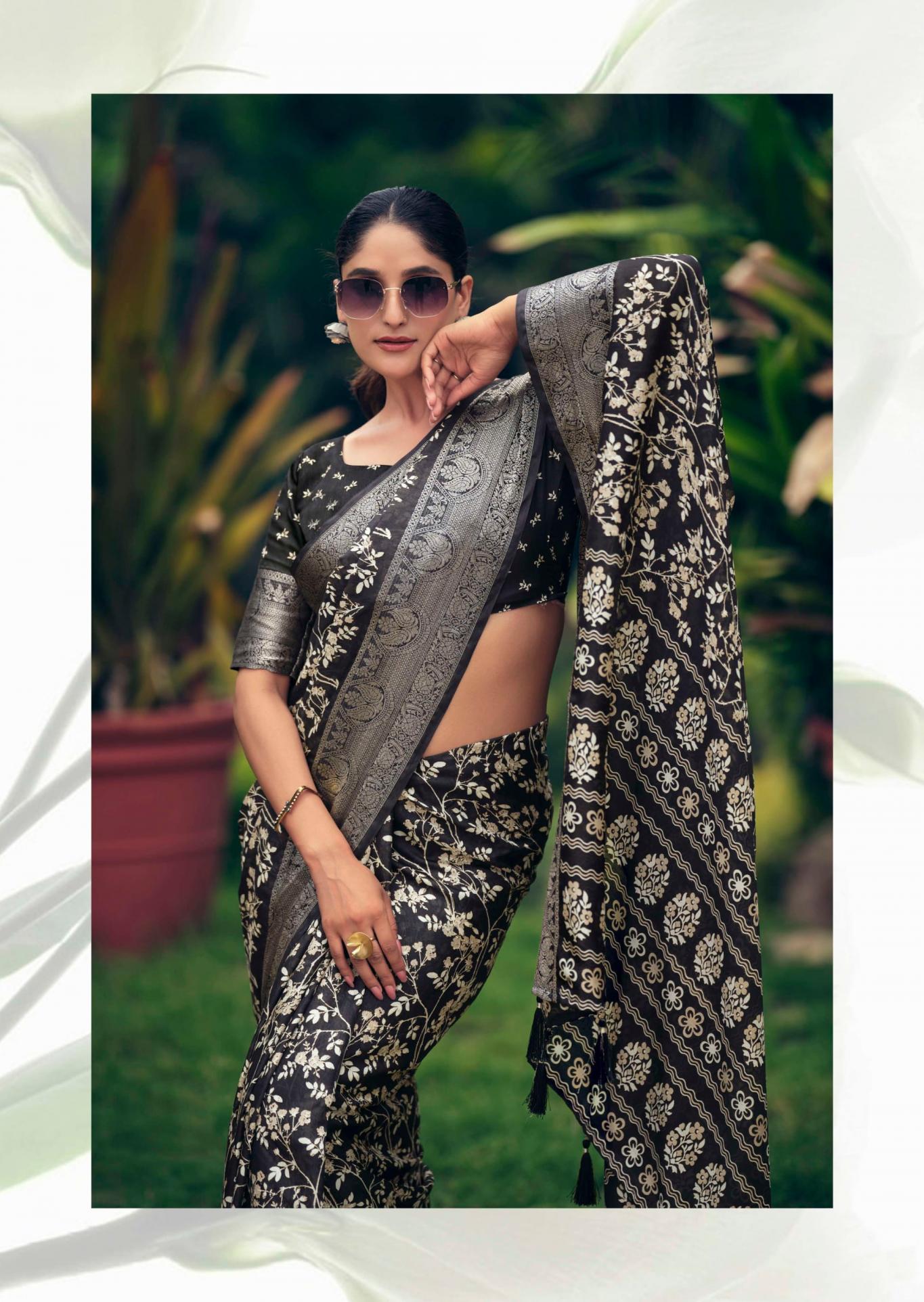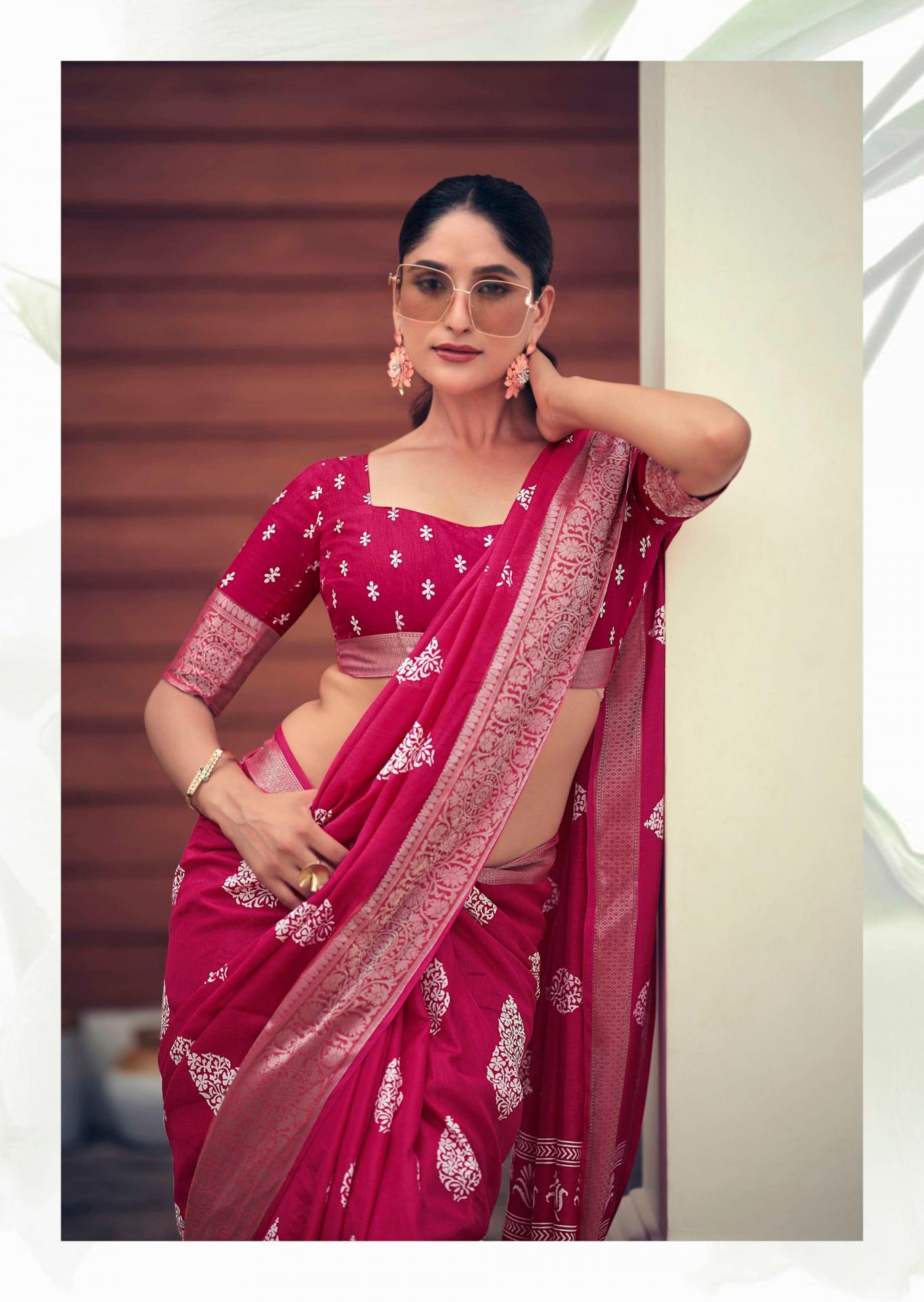 SANSKAR TEX PRINTS PVT LTD CATLOUGE= SAJAWAT Fabric- pure Dola 💯 silk with viscose border blouse & latkan Qty- 8 Designs RATE - 670₹ |