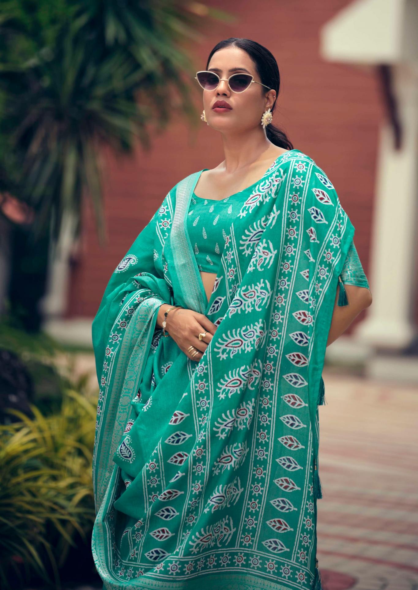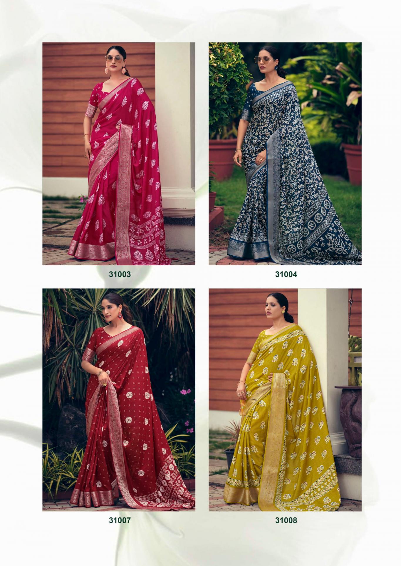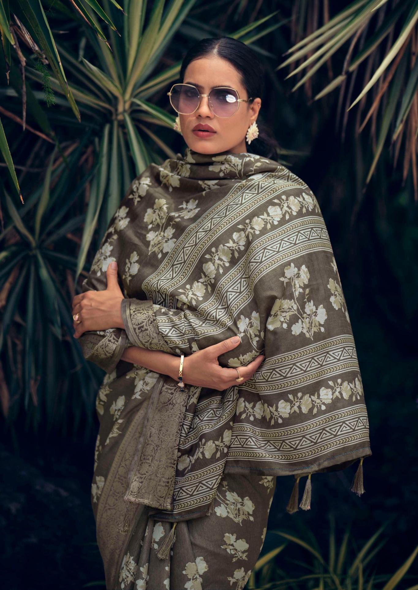 SANSKAR TEX PRINTS PVT LTD CATLOUGE= SAJAWAT Fabric- pure Dola 💯 silk with viscose border blouse & latkan Qty- 8 Designs RATE - 670₹ |