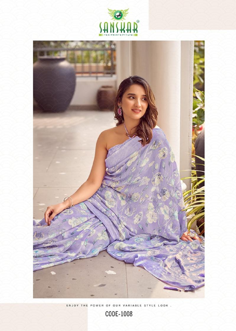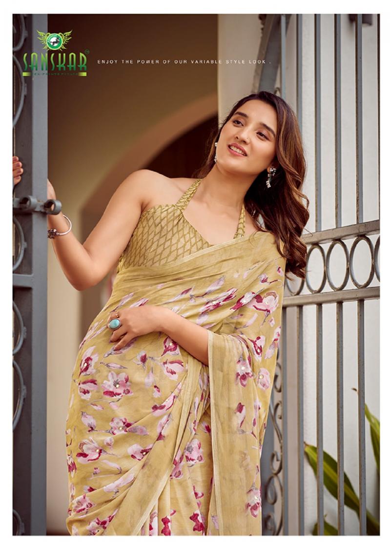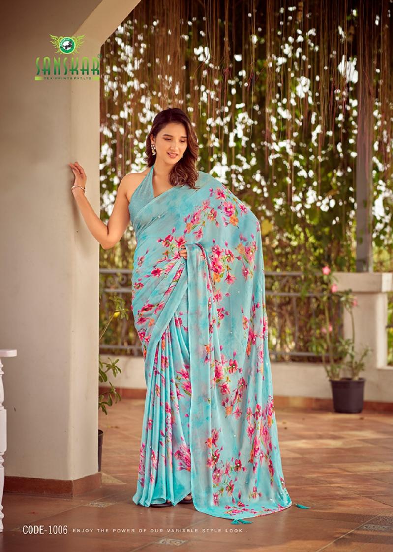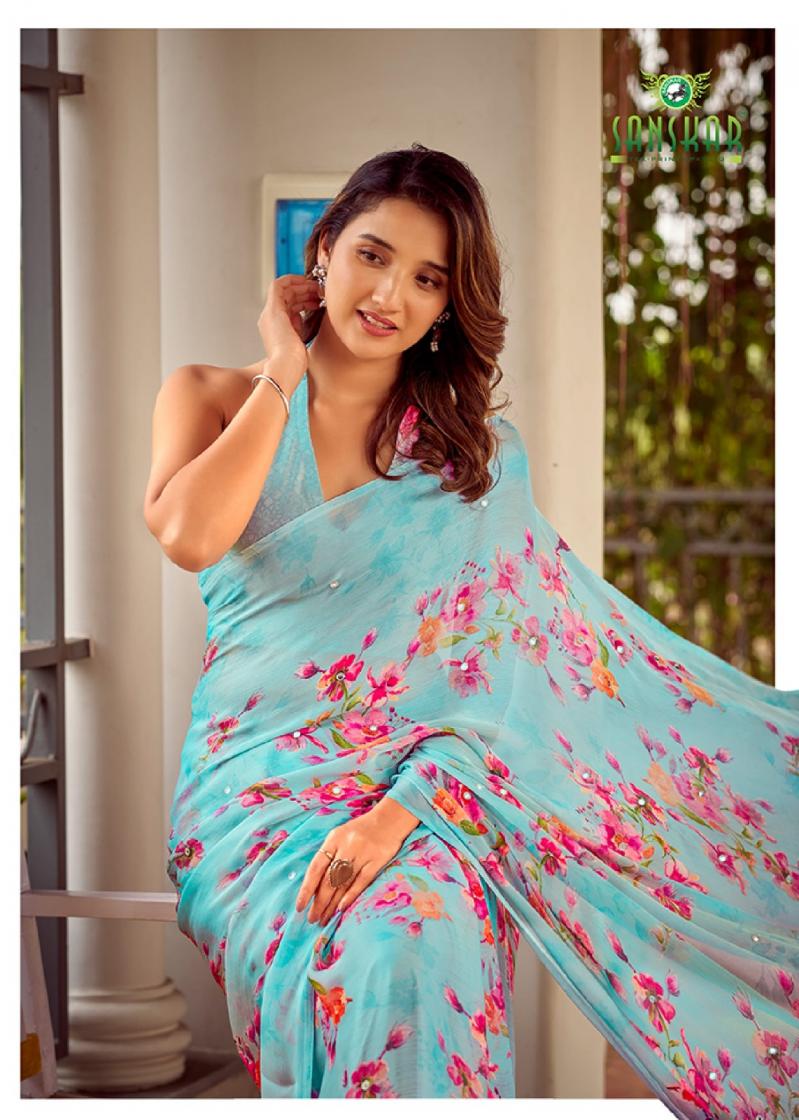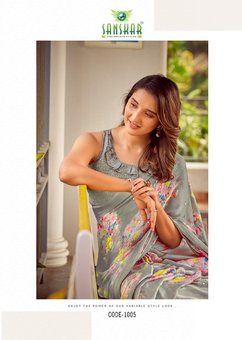 sanskar tex prints taranika sartin chiffon casual saree wholesaler