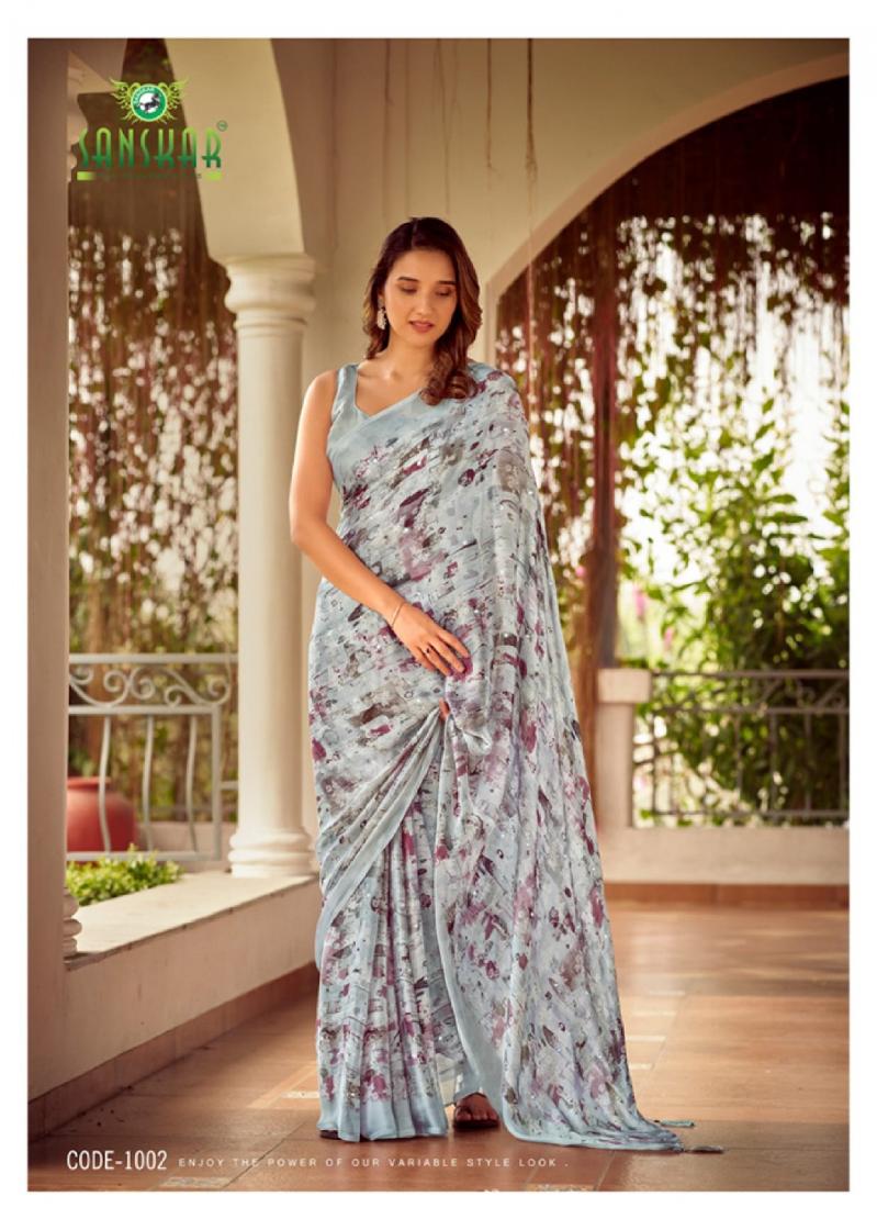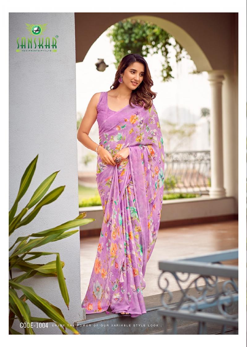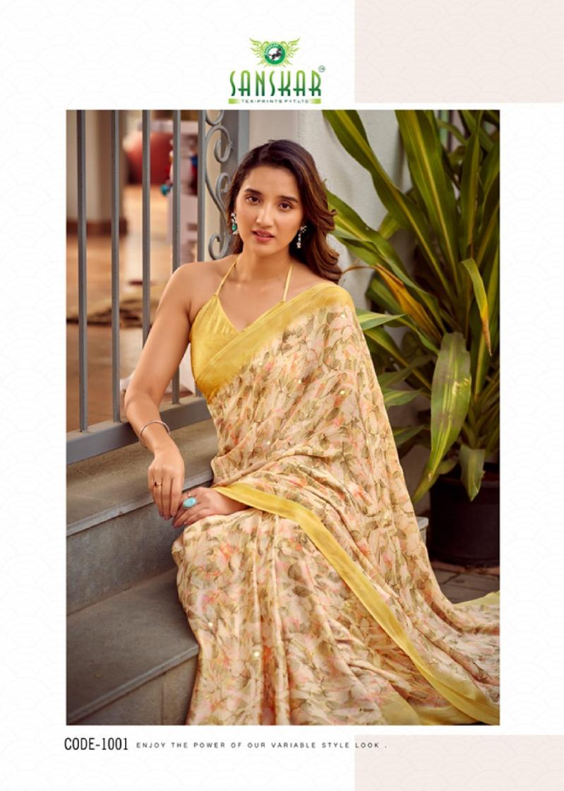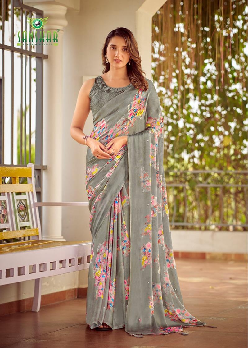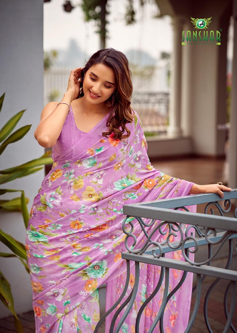 sanskar tex prints taranika sartin chiffon casual saree wholesaler