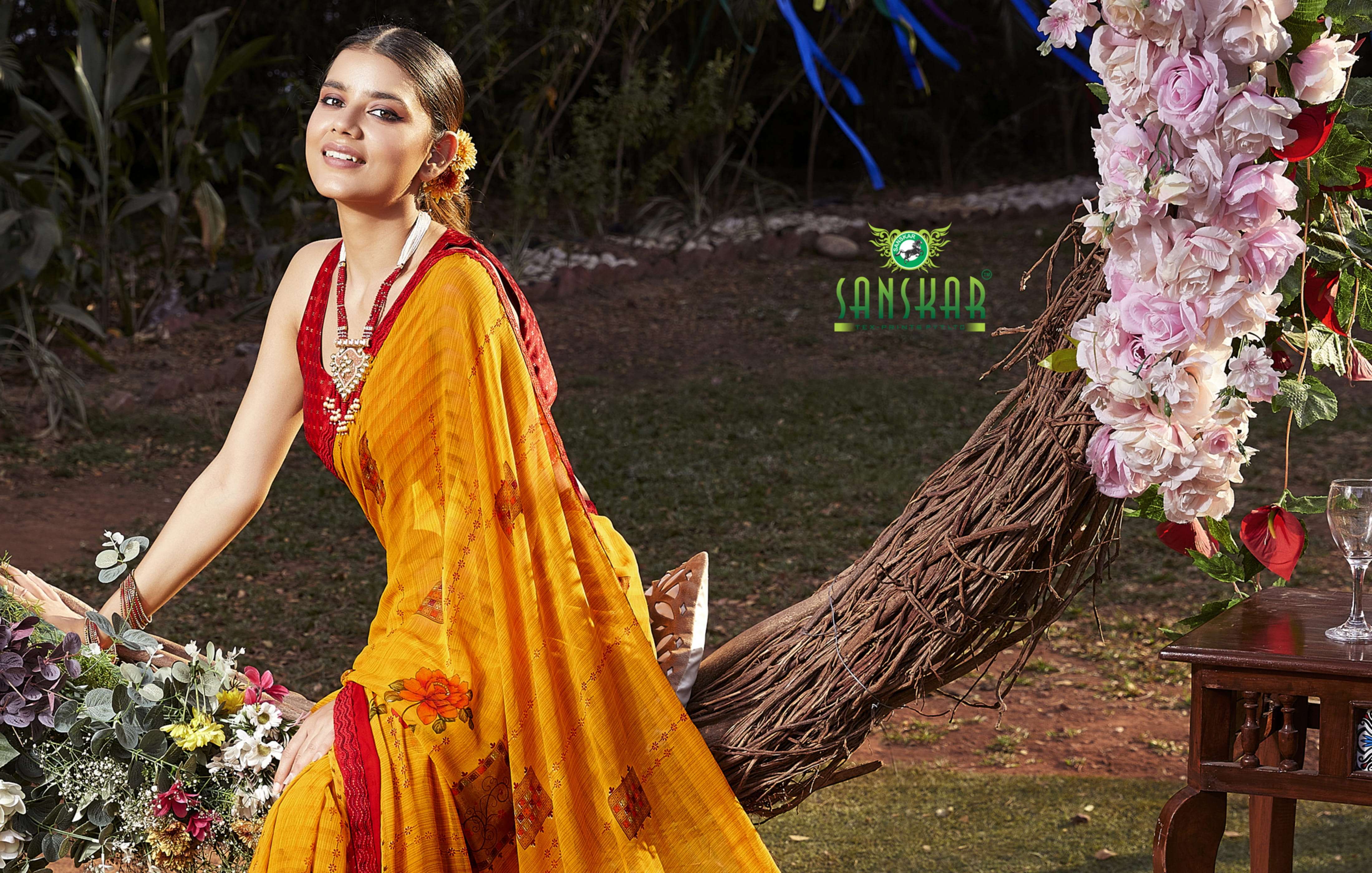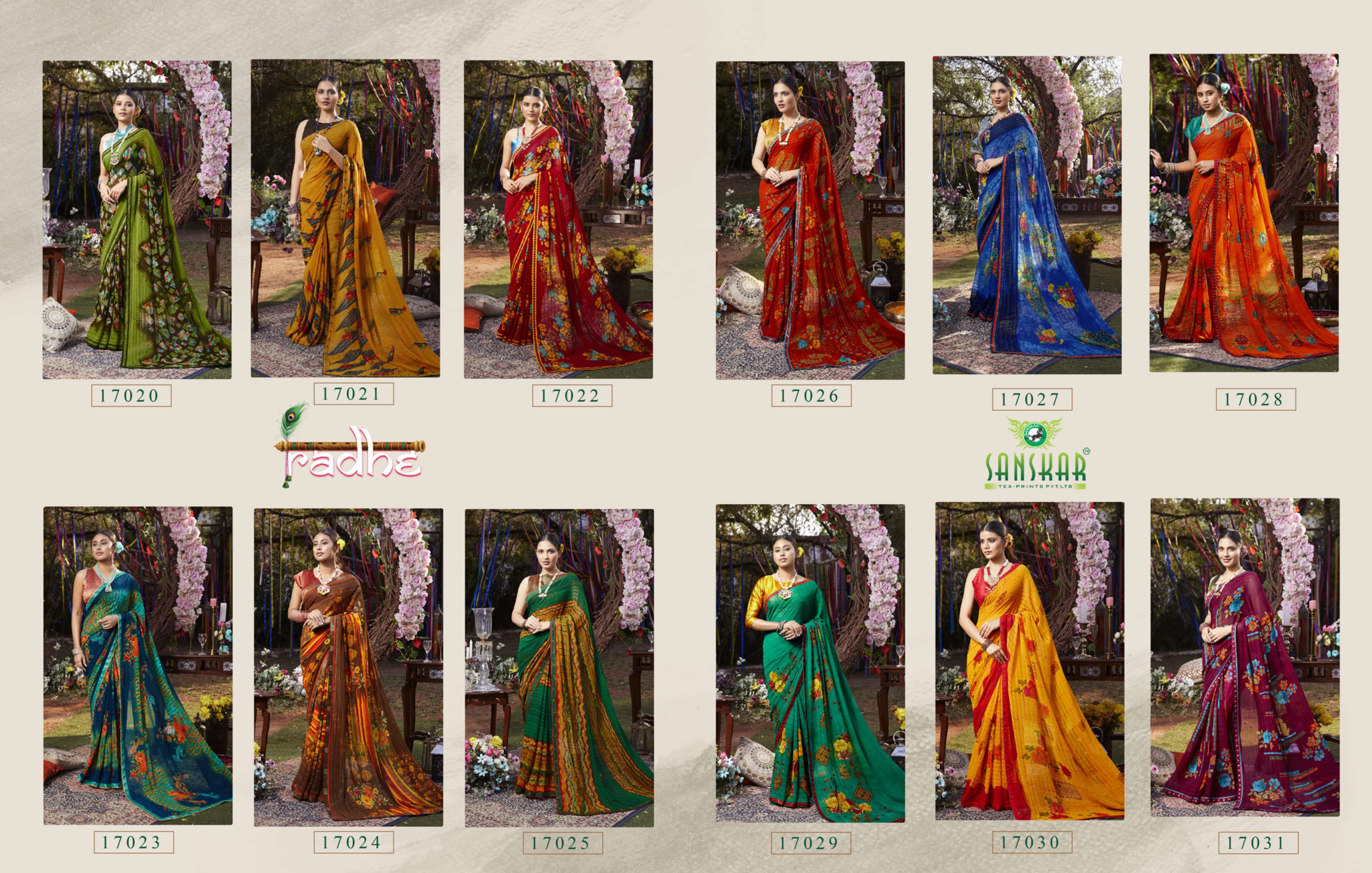 sanskar tex radhe georgette print saree wholesale at kc surat