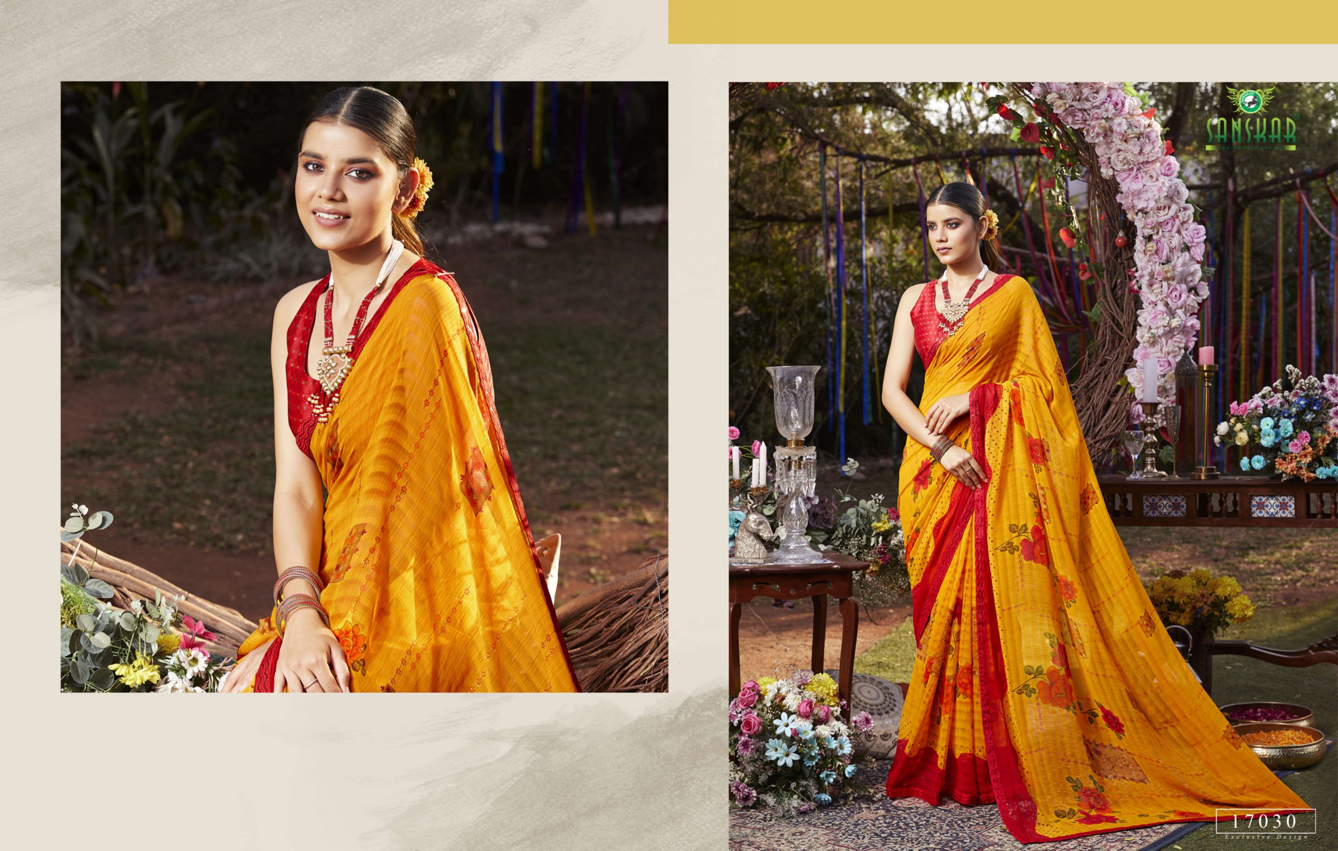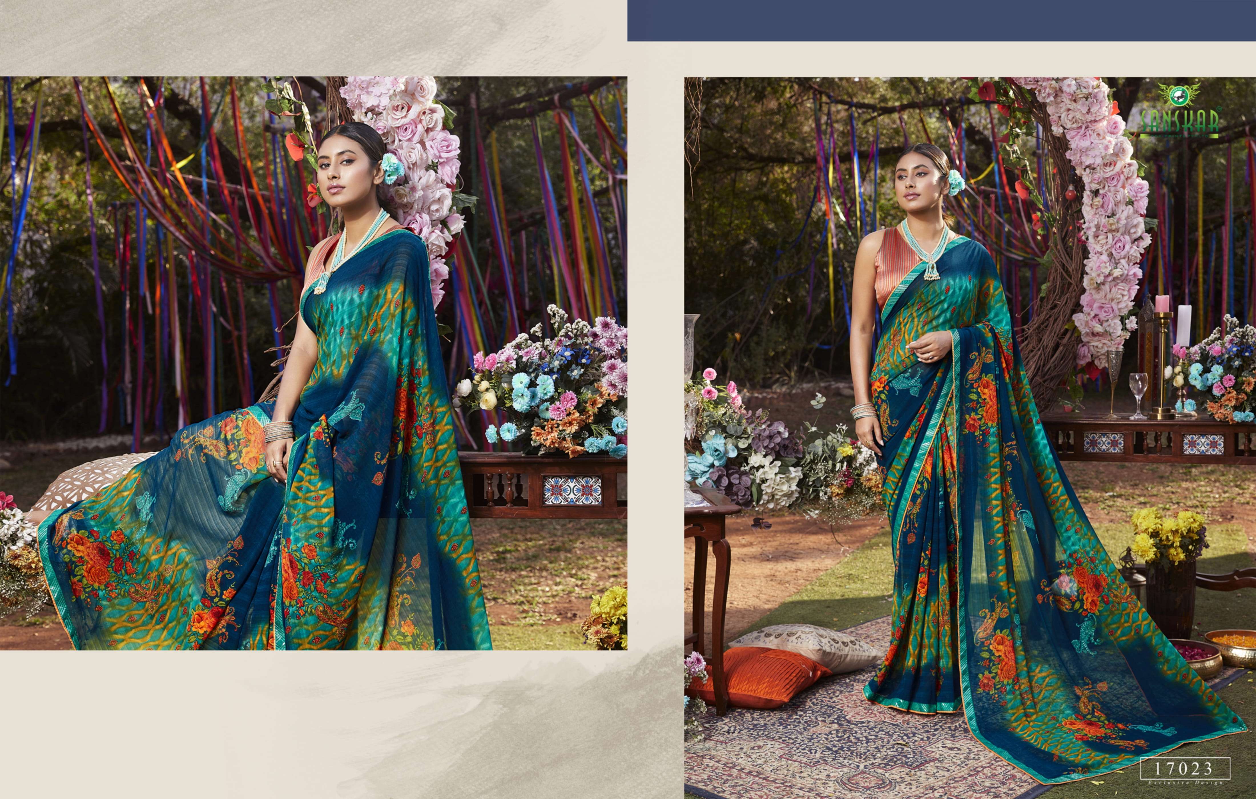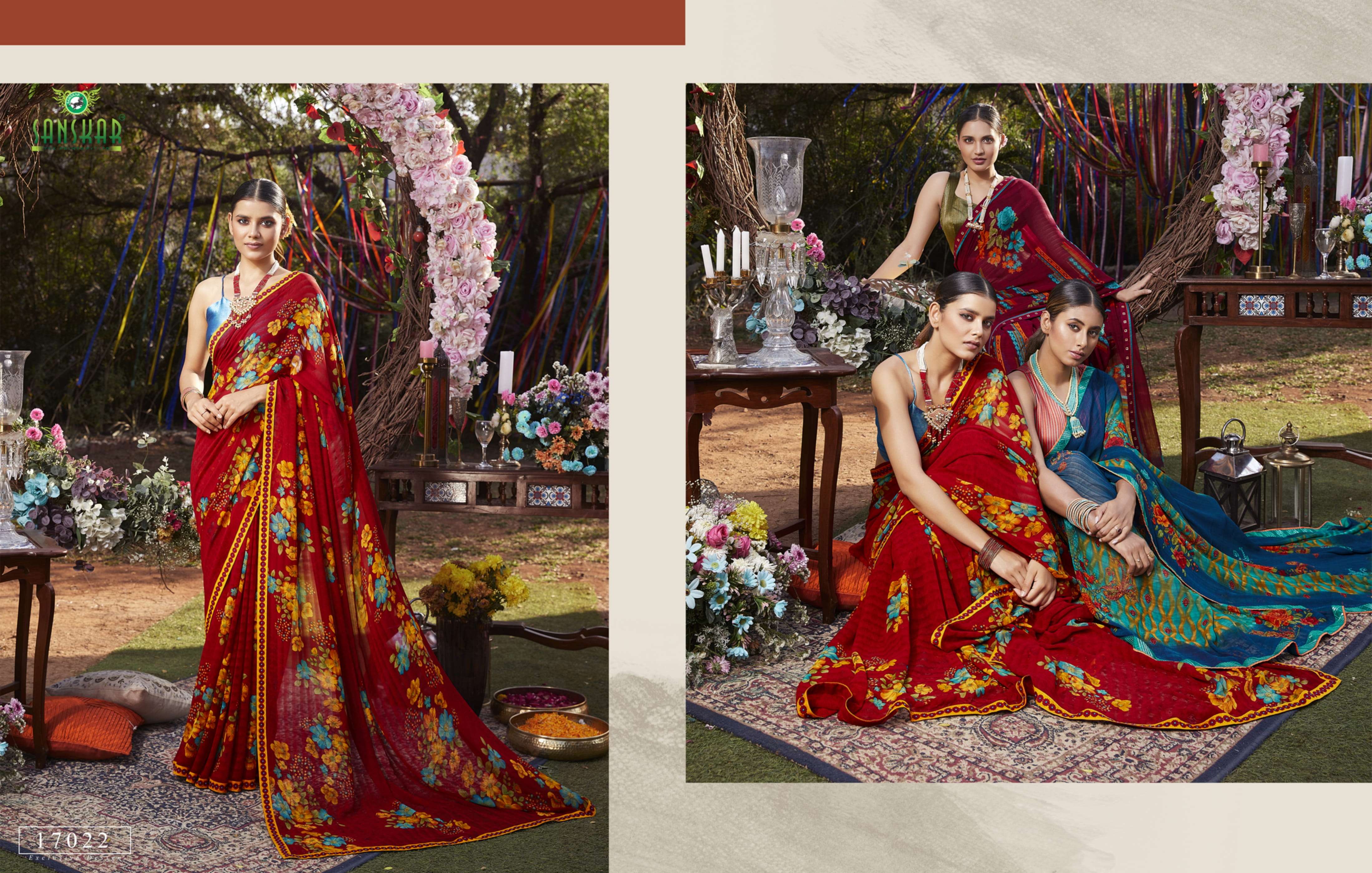 New launching CATLOUGE- radhe Fabric- Georgette shedo print with value addition blouse Qty- 12 dis RATE - 660/- |