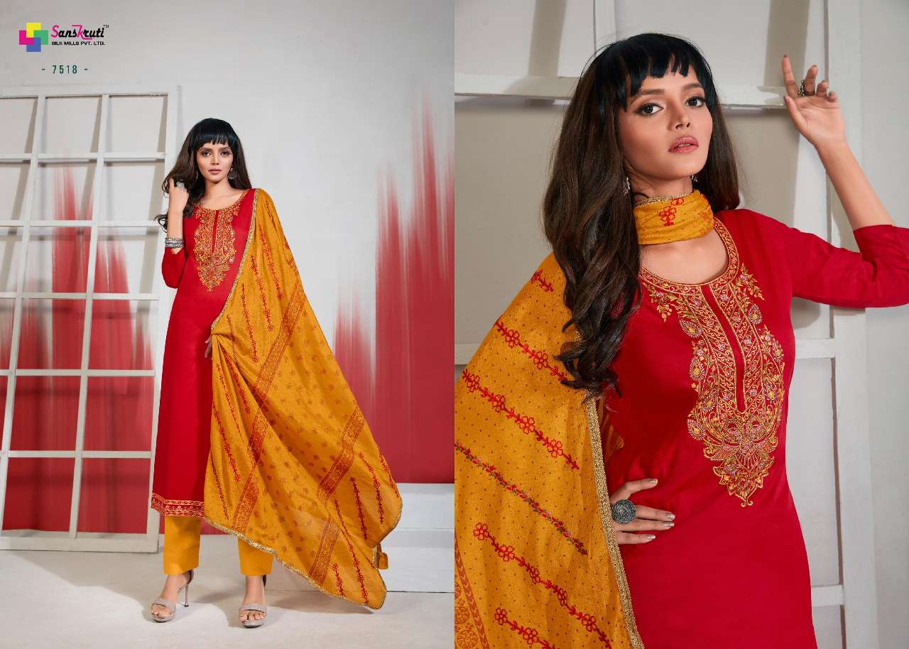 Sanskruti Presents Latest Collection Launched on 18-08-2021. Presenting Beautiful collection of 6 PCS with Unstitched .